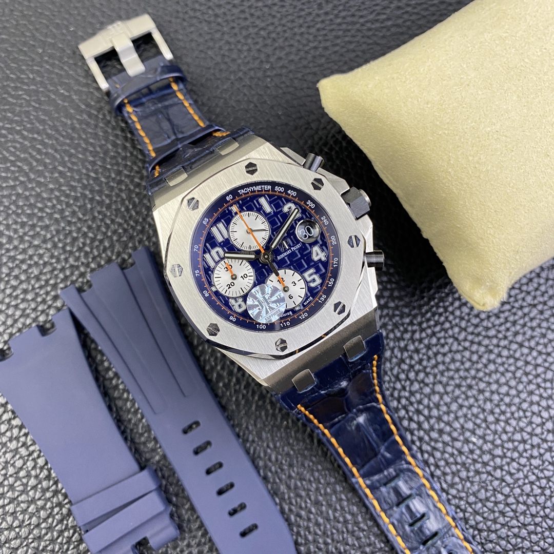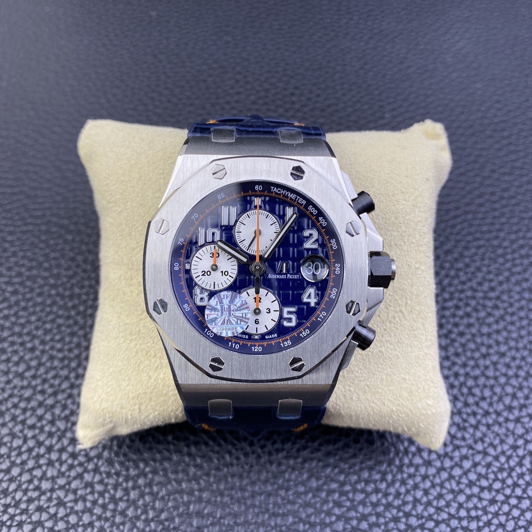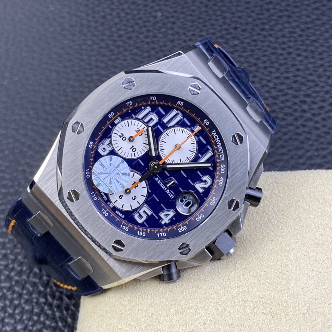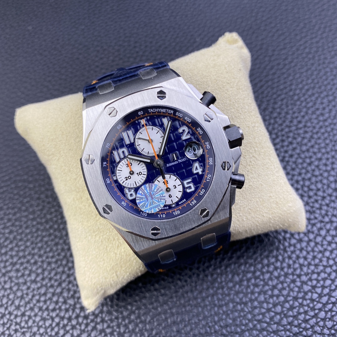 JF精品A P26470st藍天白雲V2版經典a p計時款式之一搭載複刻原版3126機芯直徑42mm厚度15.6mm注:JF的所有3126機芯系列是現時市面上殼身最薄和複刻程度最强的版本