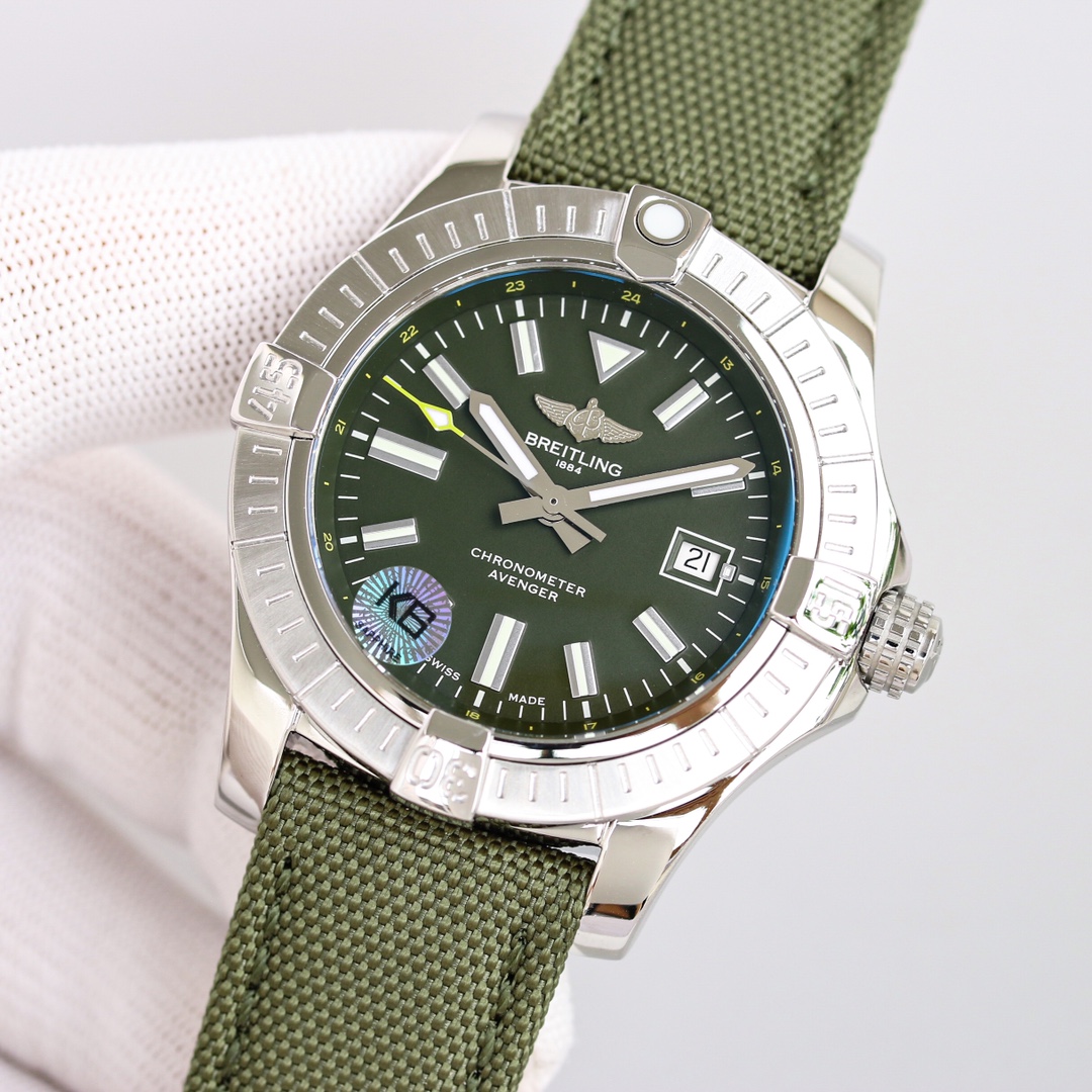 2022百年靈BREITLING橄欖綠復仇者系列新款到貨!!! 一枚更簡潔更經典的腕表由此誕生! 新款百年靈復仇者包含了四大要素:堅固可靠、功能卓越、精密準確和美學觀感。 它,是專為挑戰最極端環境而設計的專業腕表,是陪伴勇者感受高空深海極致魅力的最佳夥伴。 1:(直徑)經典三針43MM,2:(機芯)三針搭載海鷗2824機芯,穩定效能超强3:(錶帶)採用進口尼龍帆布帶,耐磨耐髒,同正品一樣,佩戴極具舒適! 4:(鏡面)弧面藍寶石,雙面防眩處理5:(字面)字面顏色同正品一樣,完美還原每個細節! K6誠意出品,歡迎品鑒!
