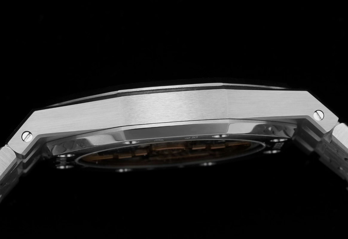 KM—超級力作皇家橡樹15202腕表尺寸39mm超級兩針機械機芯藍寶石水晶玻璃鏡面原版Cal. 2121自動機芯。 錶殼緞面和拋光潤飾完美相融錶帶側面的倒角一致性高,每一節錶帶都保持統一的角度。 防眩光處理藍寶石水晶玻璃鏡面原版Cal. 2121自動機芯夾板倒角,螺絲頭拋光,日內瓦條紋-提供動力儲備長達40小時。
