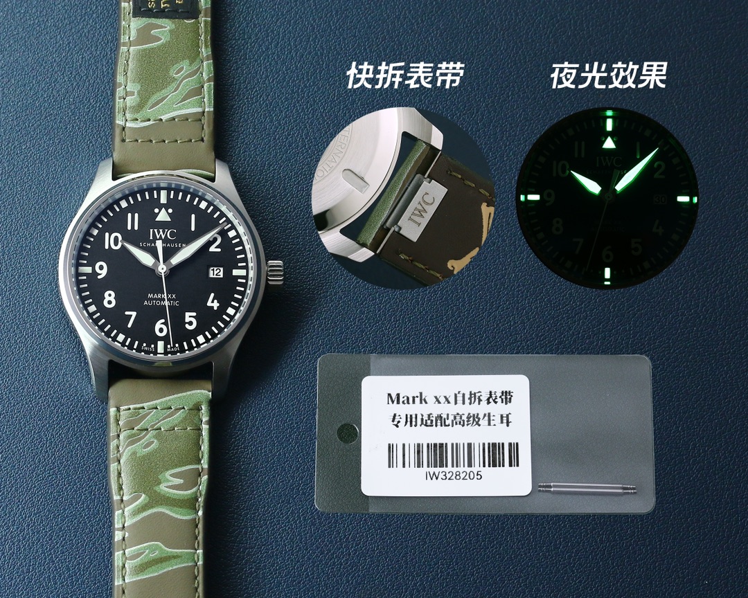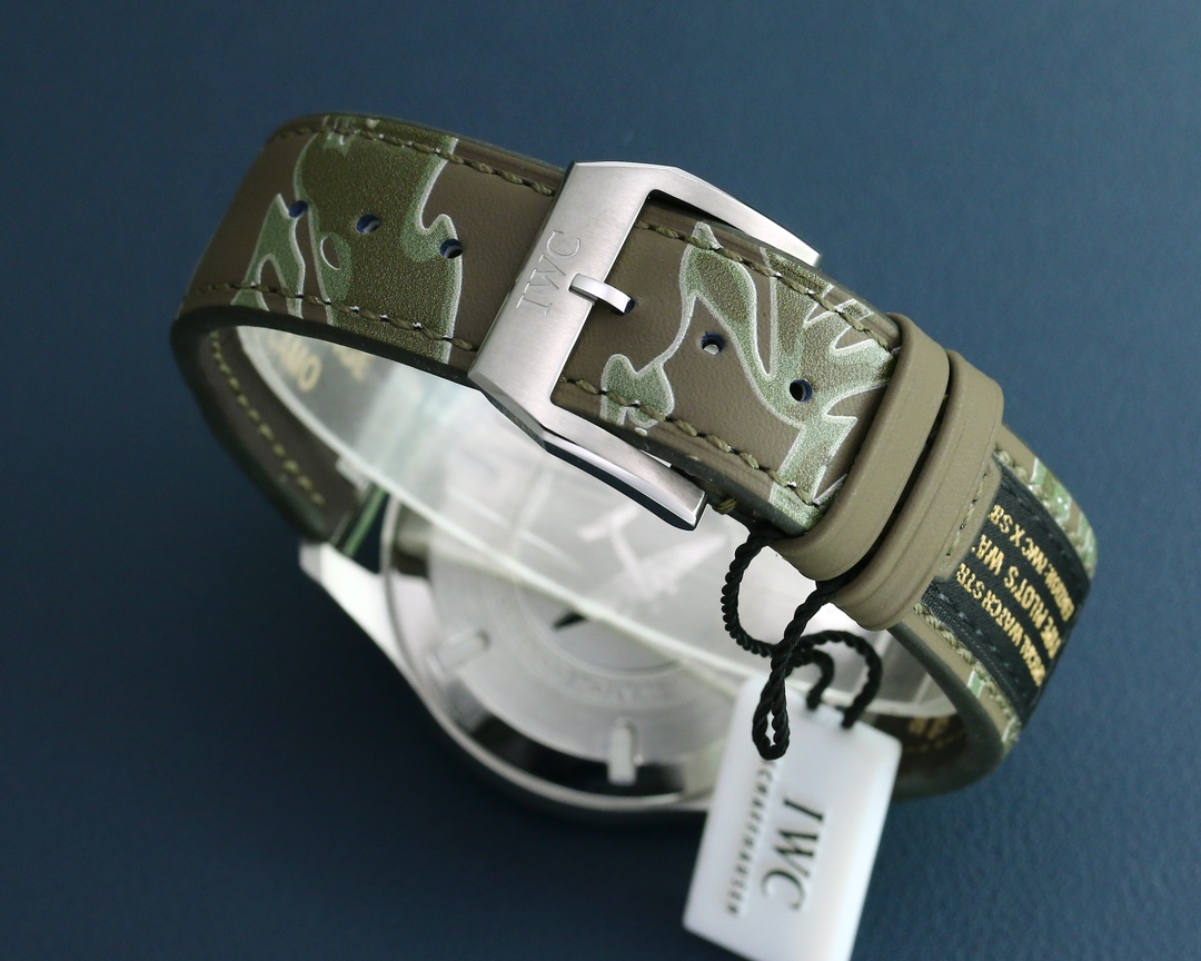 市場獨家 利用最新Ai高精噴色系統 (法拉利使用嘅控色機啱) 終於真正展現咗市場獨一無二嘅萬國「幽綠色」同埋最難實現嘅「無紫藍」! 高昂成本嘅頂級萬國自拆氟膠帶; 完全手工縫製嘅刺繡,產量有限嘅聯名迷彩IWC帶。 真正正確嘅日曆調整方向, 重新修正咗日曆字體纖細。