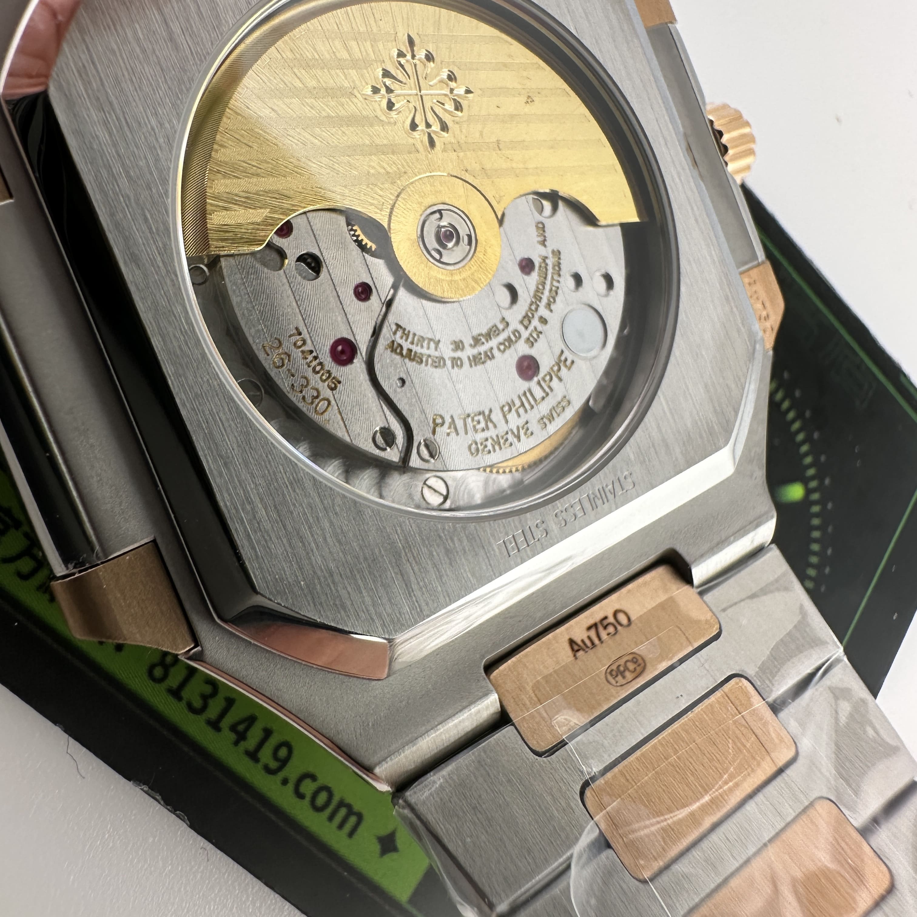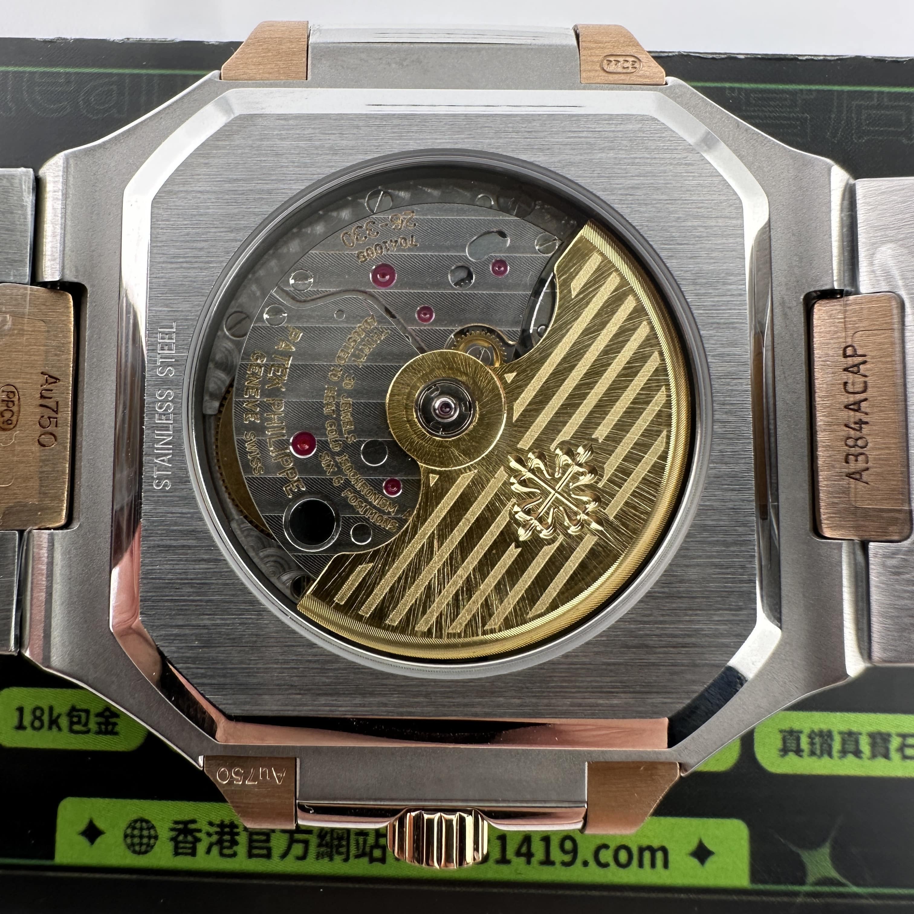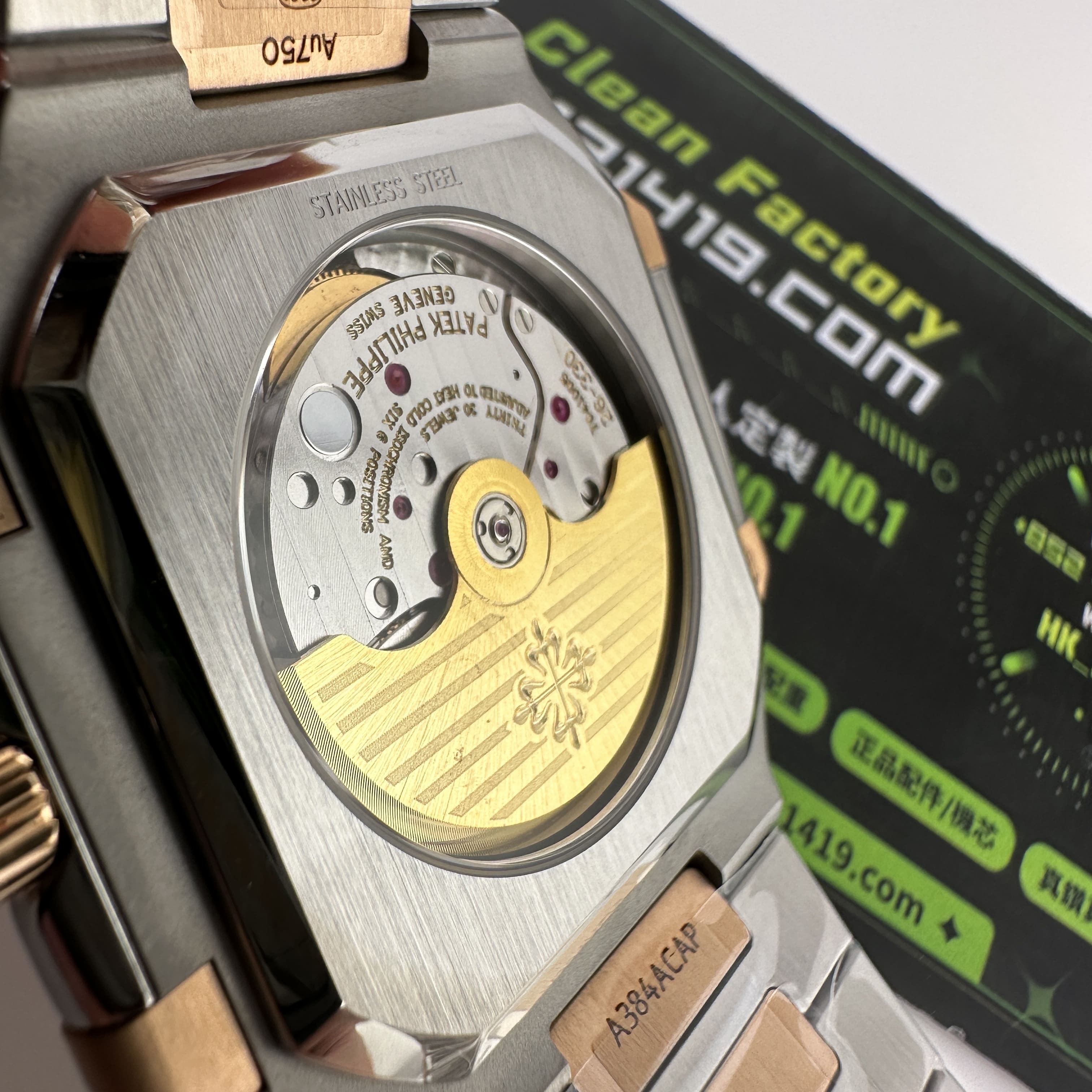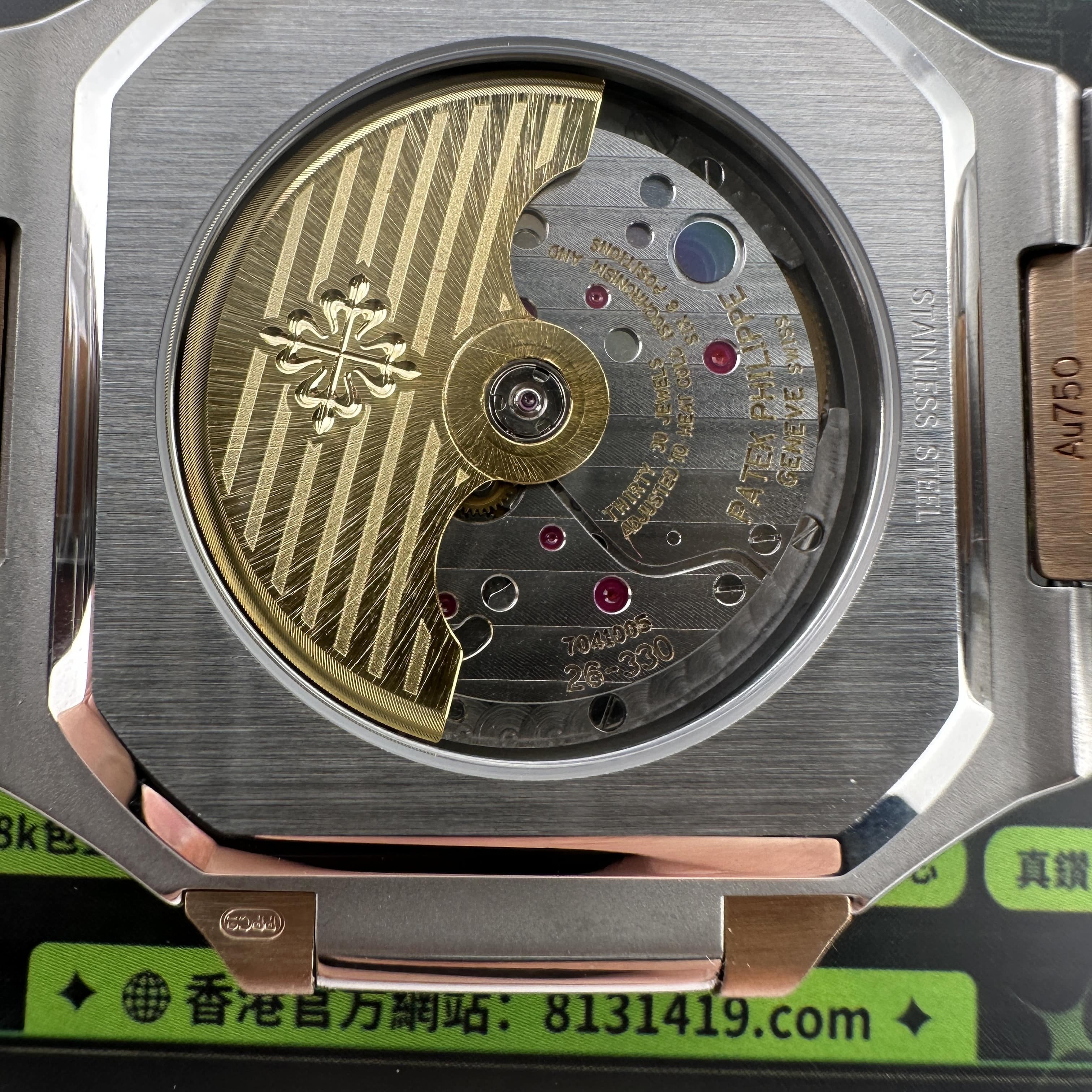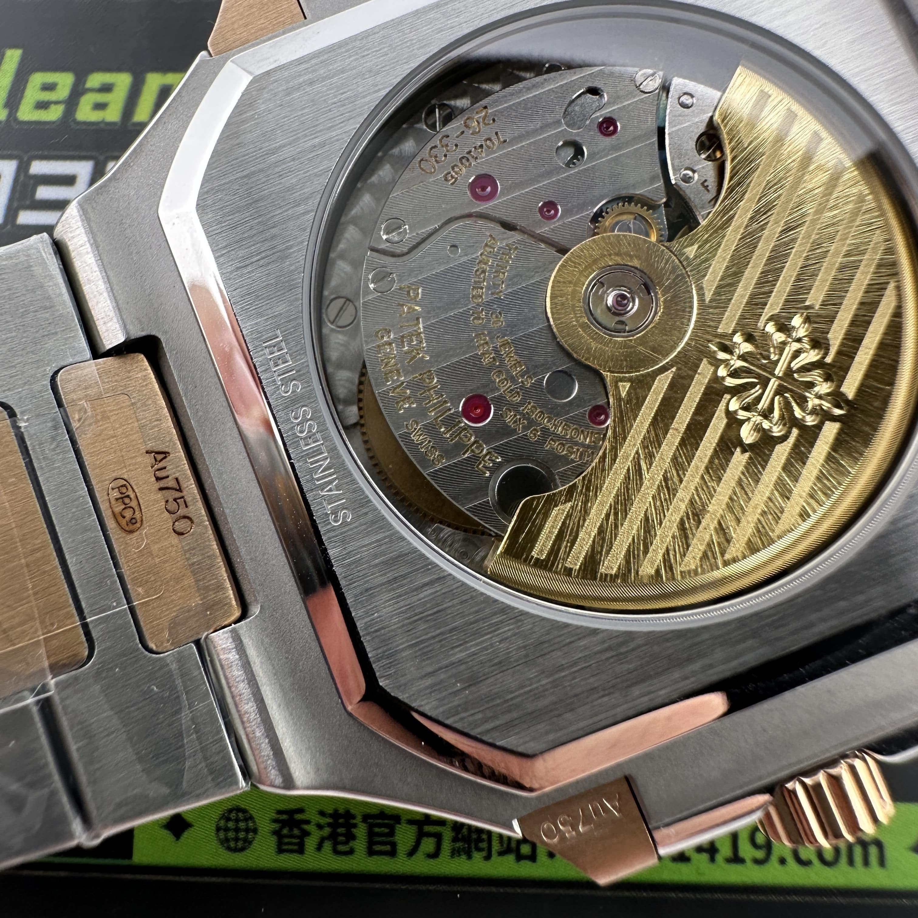 此次搭載的機芯是一體Cal.26-330SC機芯,與原版機芯是同一隻機芯構造,1:1復刻而成.PPF廠PP和3K廠出品的高仿百達翡麗一直受歡迎以及成為高仿手錶改裝基礎的首選主要原因就是匹配一體機芯.對於其他廠家出品的同款高仿百達翡麗5821錶款機芯都是使用進口9015改正品Cal.26-330SC機芯,也就是甲板機芯.對比PPF廠一體機芯肯定是1:1復刻機芯穩定性更高.高仿版本百達翡麗以大廠工藝為主,購買PPF廠是前提選擇之一.