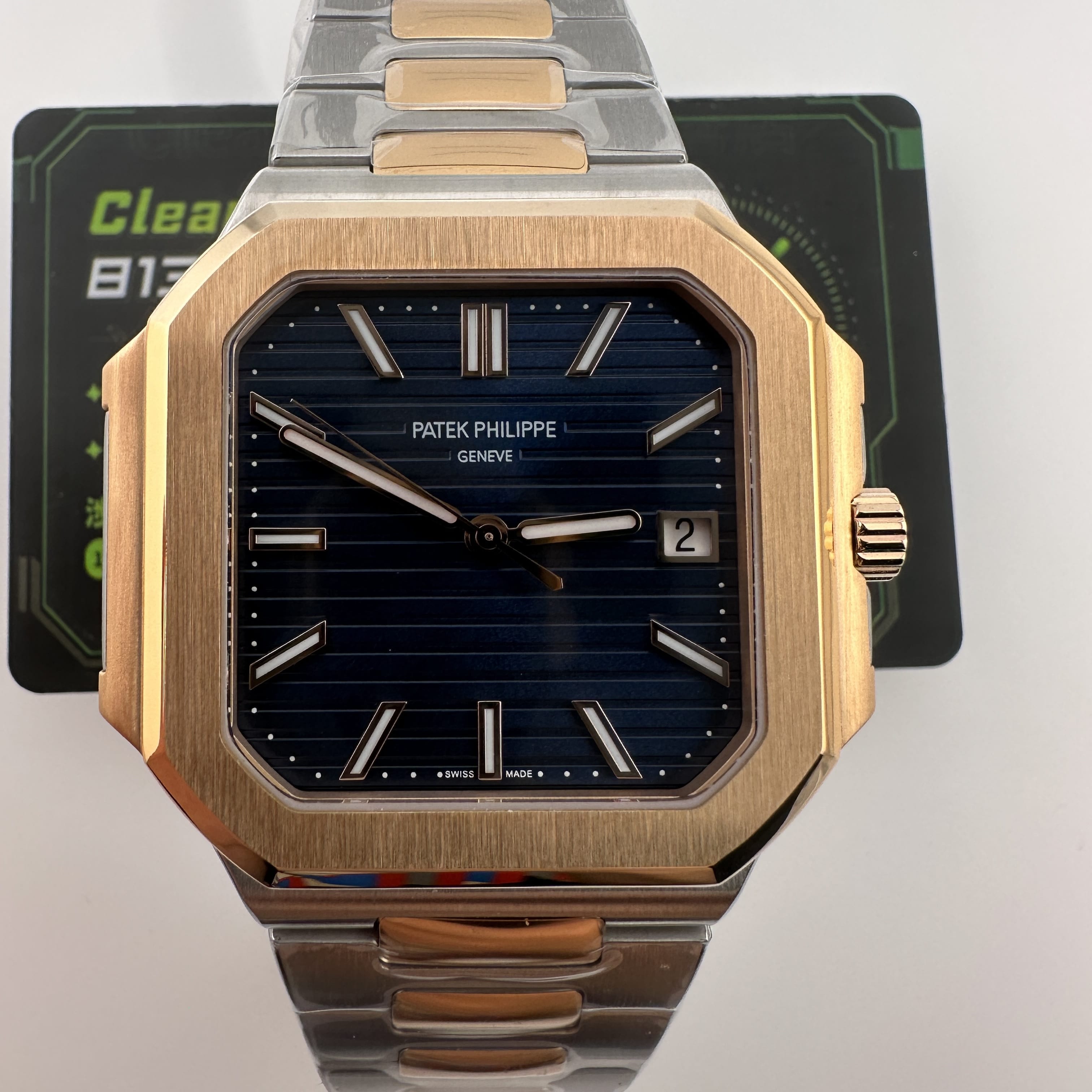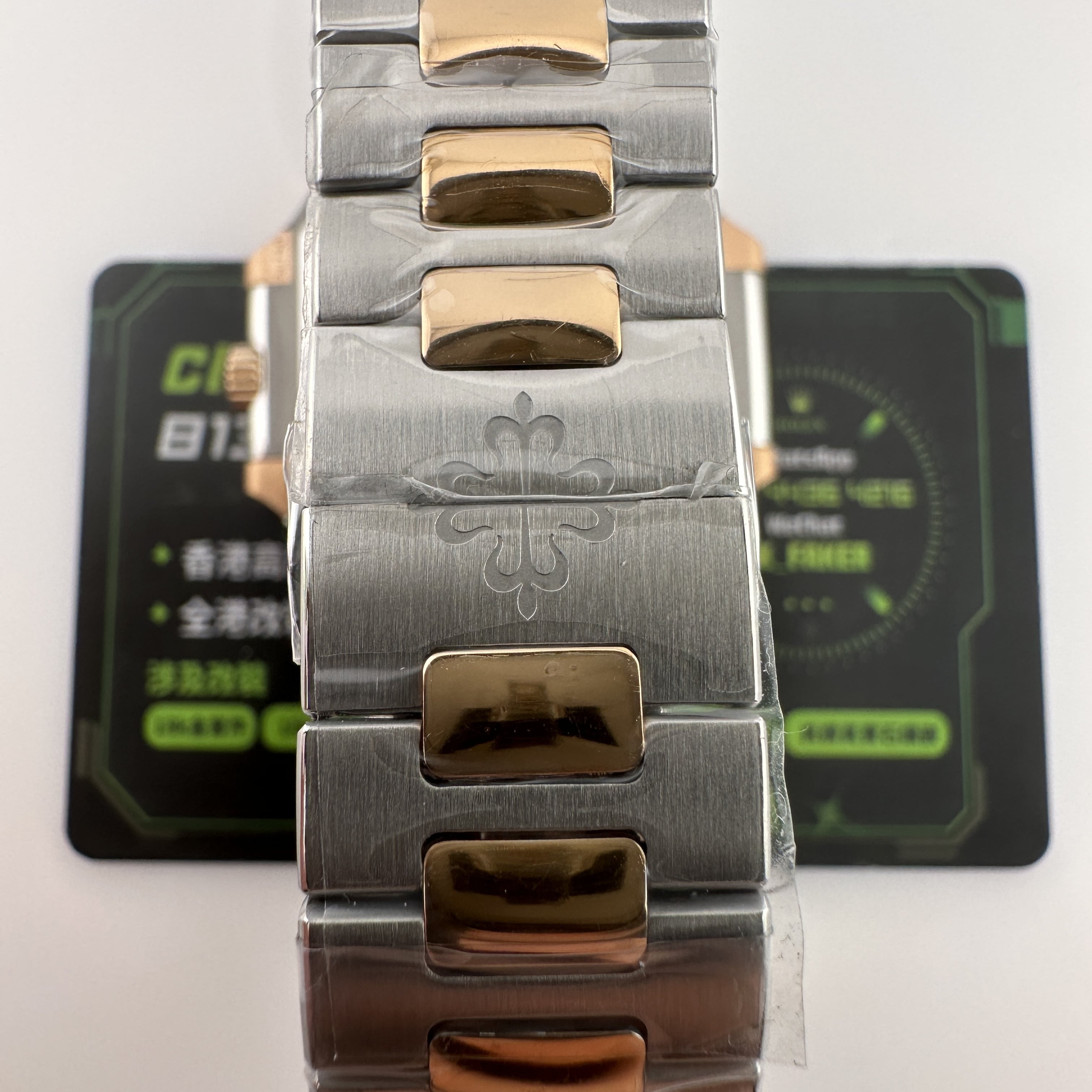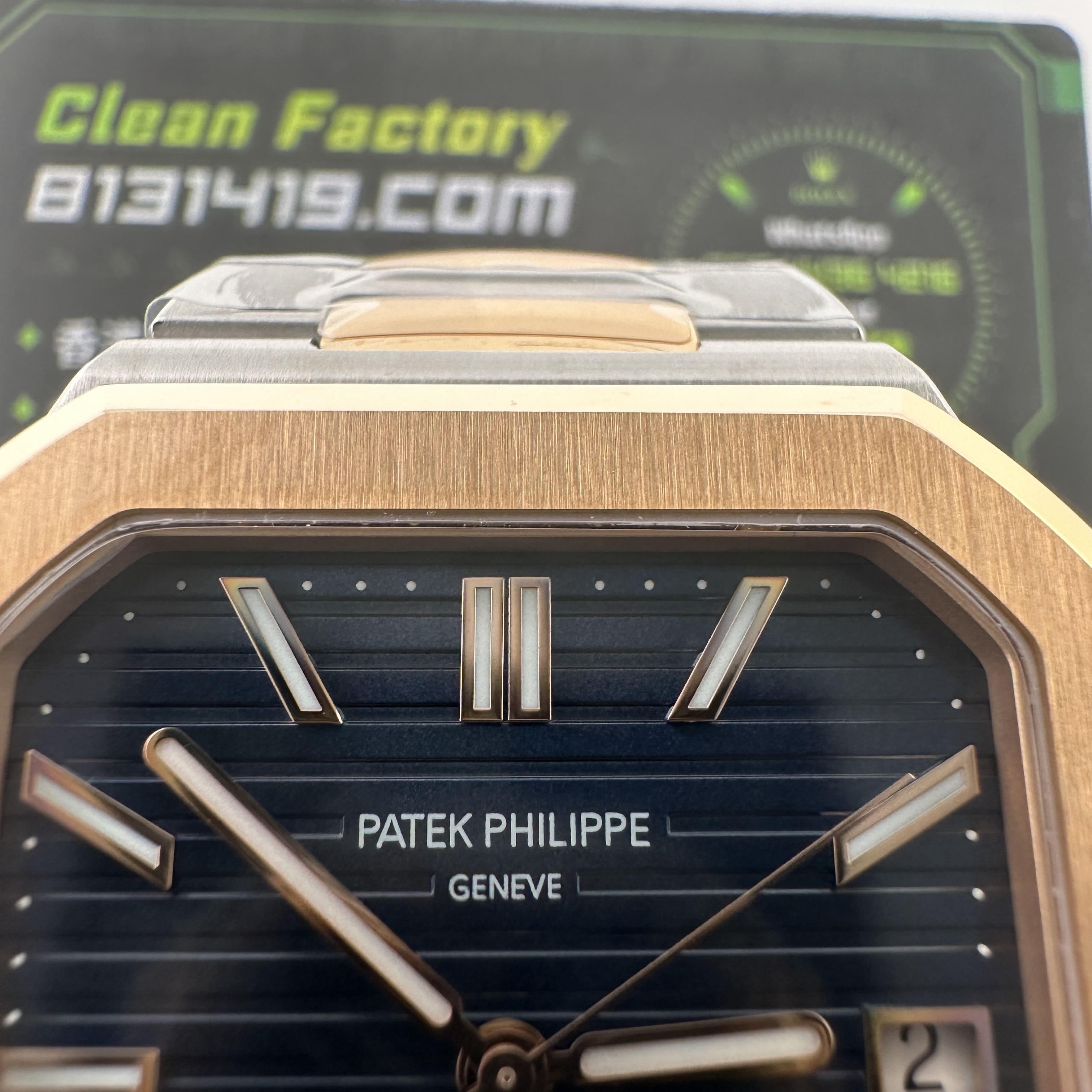 PPF廠官網全新推出的百達翡麗CUBITUS系列5821/1AR-001玫瑰金半金款.整錶尺寸45mm,規格比例還是比較大.CUBITUS系列依舊是繼承了百達翡麗鸚鵡螺家族面貌,方正得體,大氣顯秀.用於商務形式還是能夠Hold氣場.錶盤內依舊是PP家族的橫紋架構,三大指針(時針,分針,秒針)加上日曆顯示.盤面的整潔度除了條丁,印刷塗層字面之外,並沒有涉及到其他設計.原裝正品採用精鋼材質與18K玫瑰金打造,而PPF廠則是使用精鋼外加PVD電鍍工藝完成復刻.
