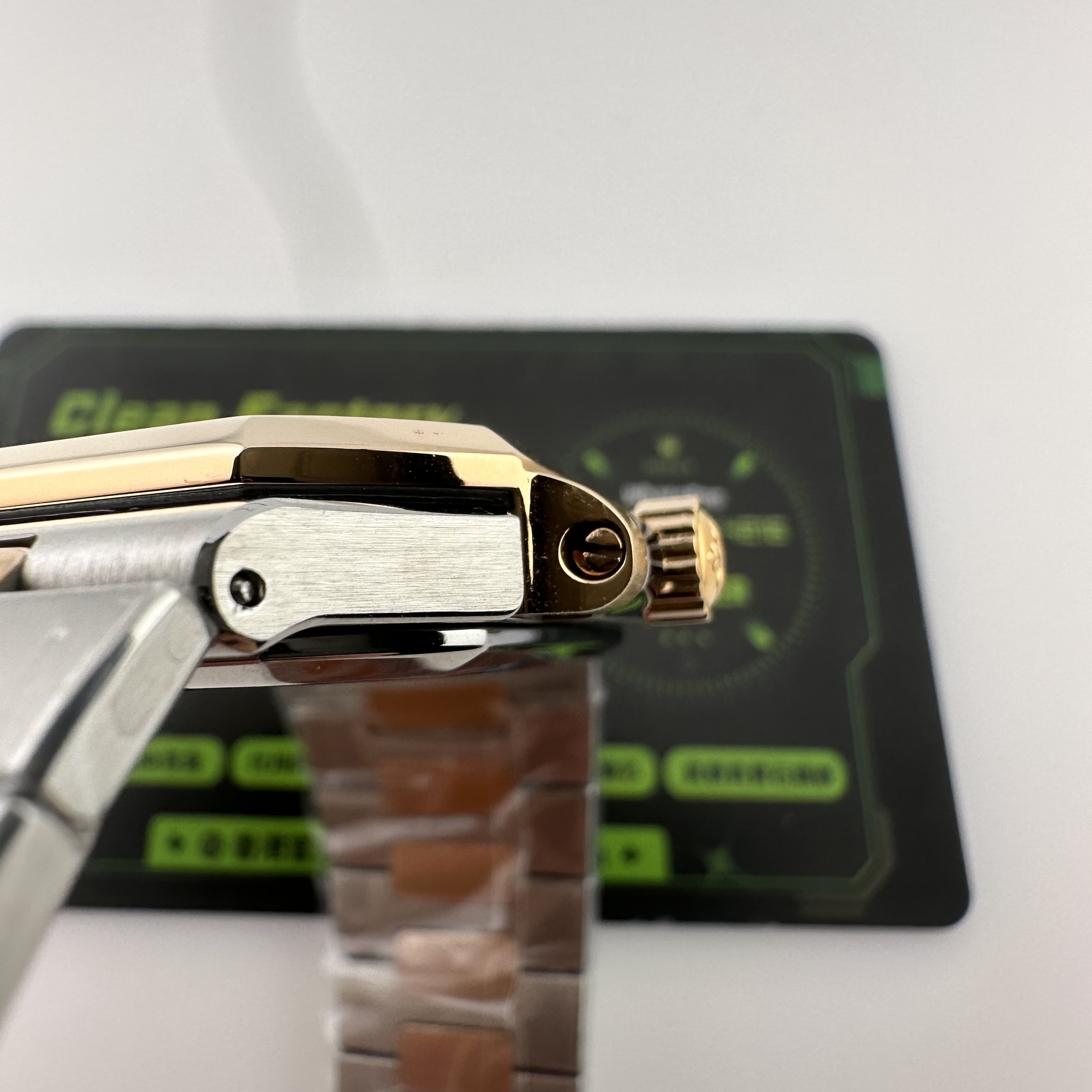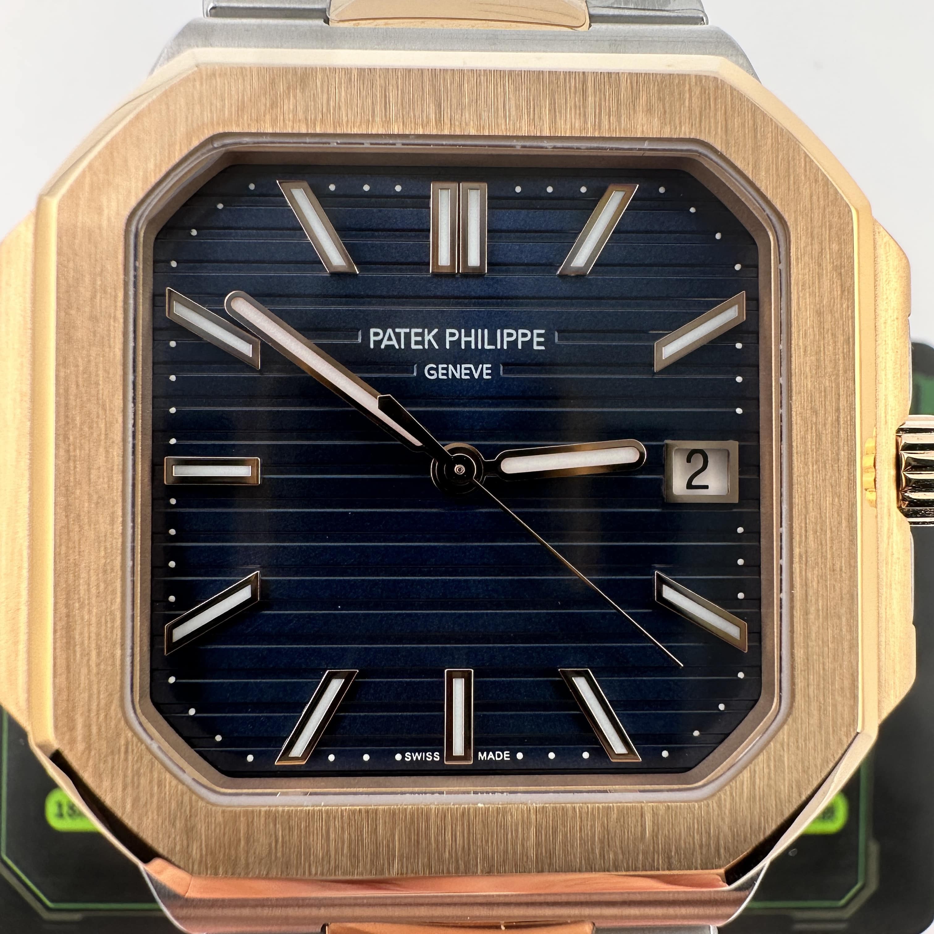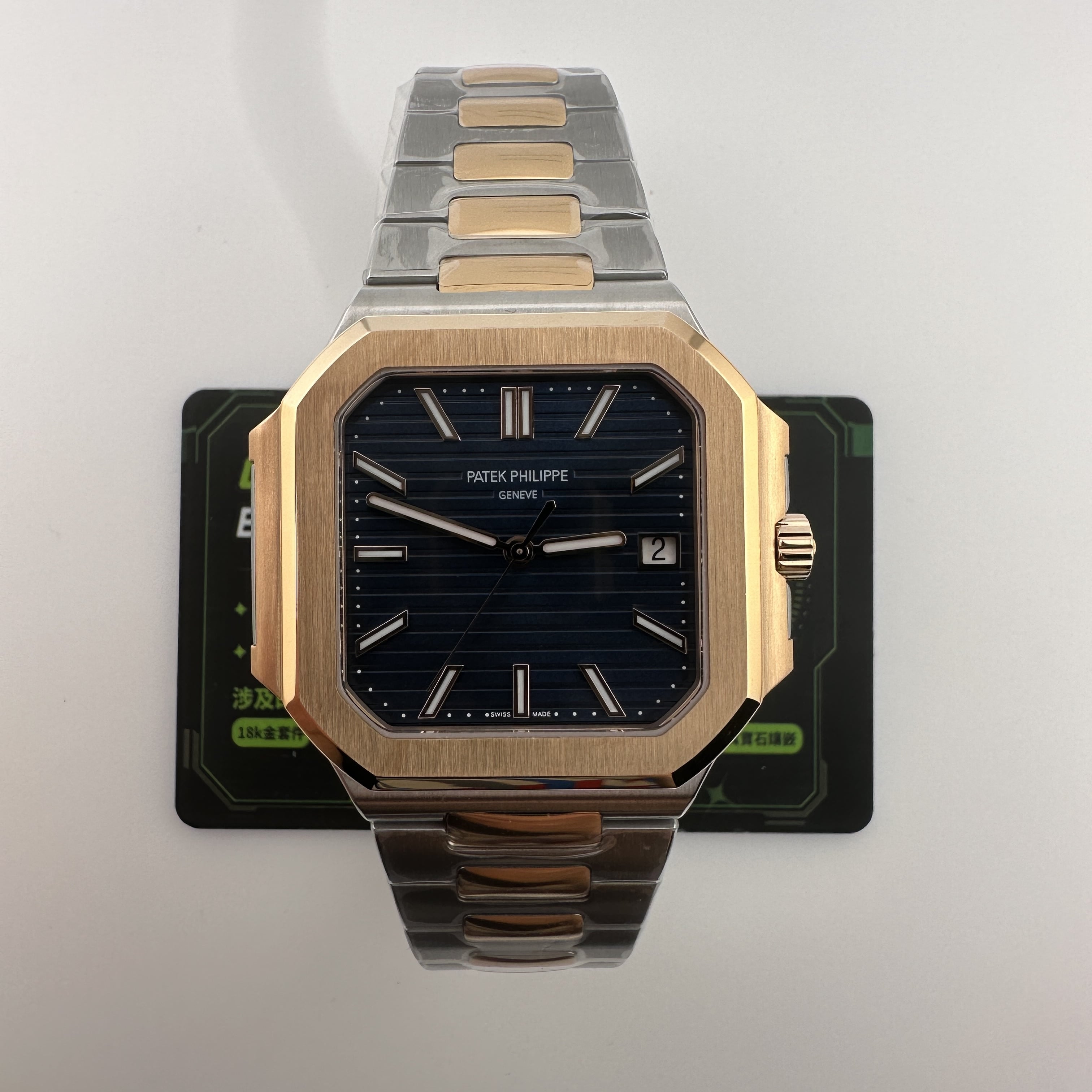 PPF廠官網全新推出的百達翡麗CUBITUS系列5821/1AR-001玫瑰金半金款.整錶尺寸45mm,規格比例還是比較大.CUBITUS系列依舊是繼承了百達翡麗鸚鵡螺家族面貌,方正得體,大氣顯秀.用於商務形式還是能夠Hold氣場.錶盤內依舊是PP家族的橫紋架構,三大指針(時針,分針,秒針)加上日曆顯示.盤面的整潔度除了條丁,印刷塗層字面之外,並沒有涉及到其他設計.原裝正品採用精鋼材質與18K玫瑰金打造,而PPF廠則是使用精鋼外加PVD電鍍工藝完成復刻.