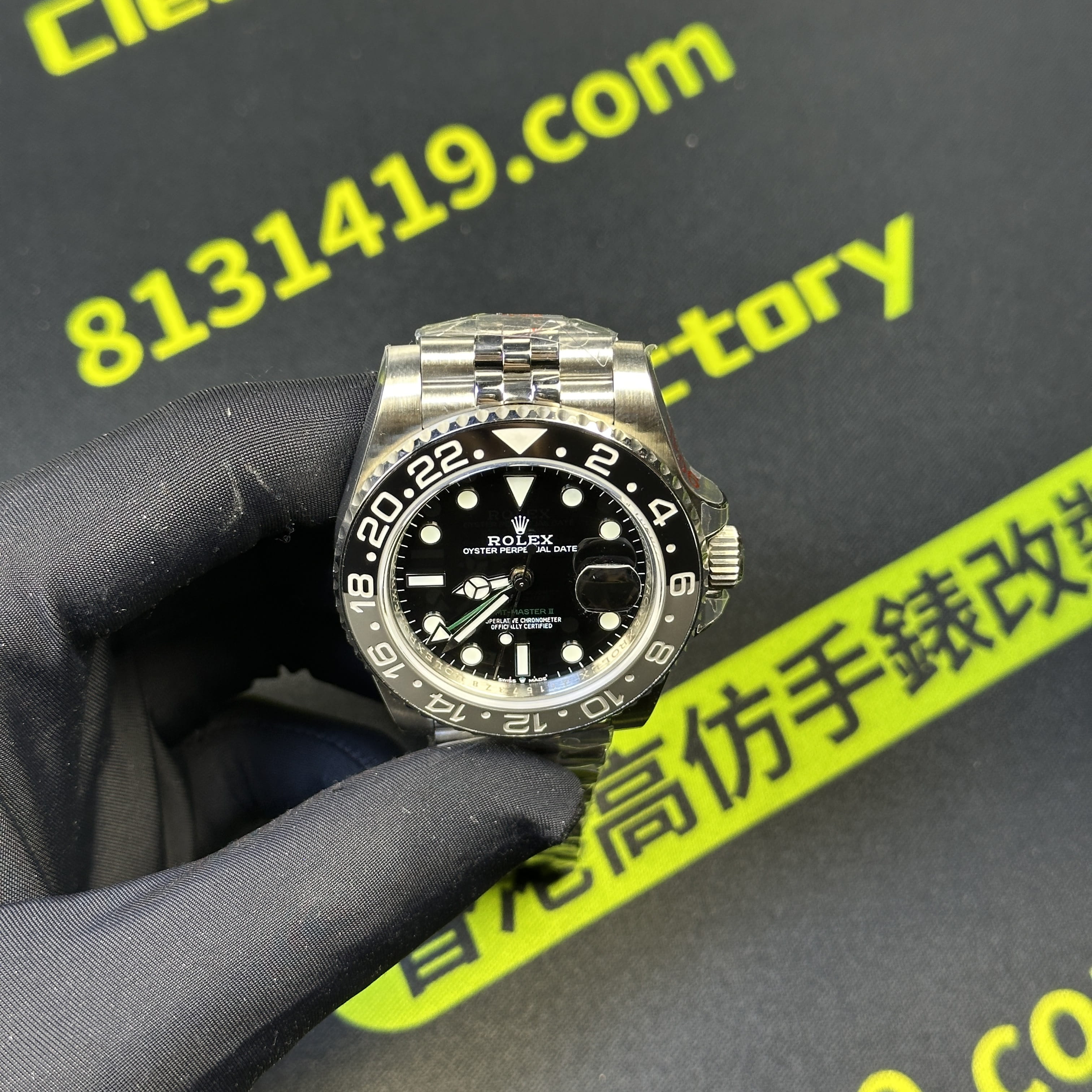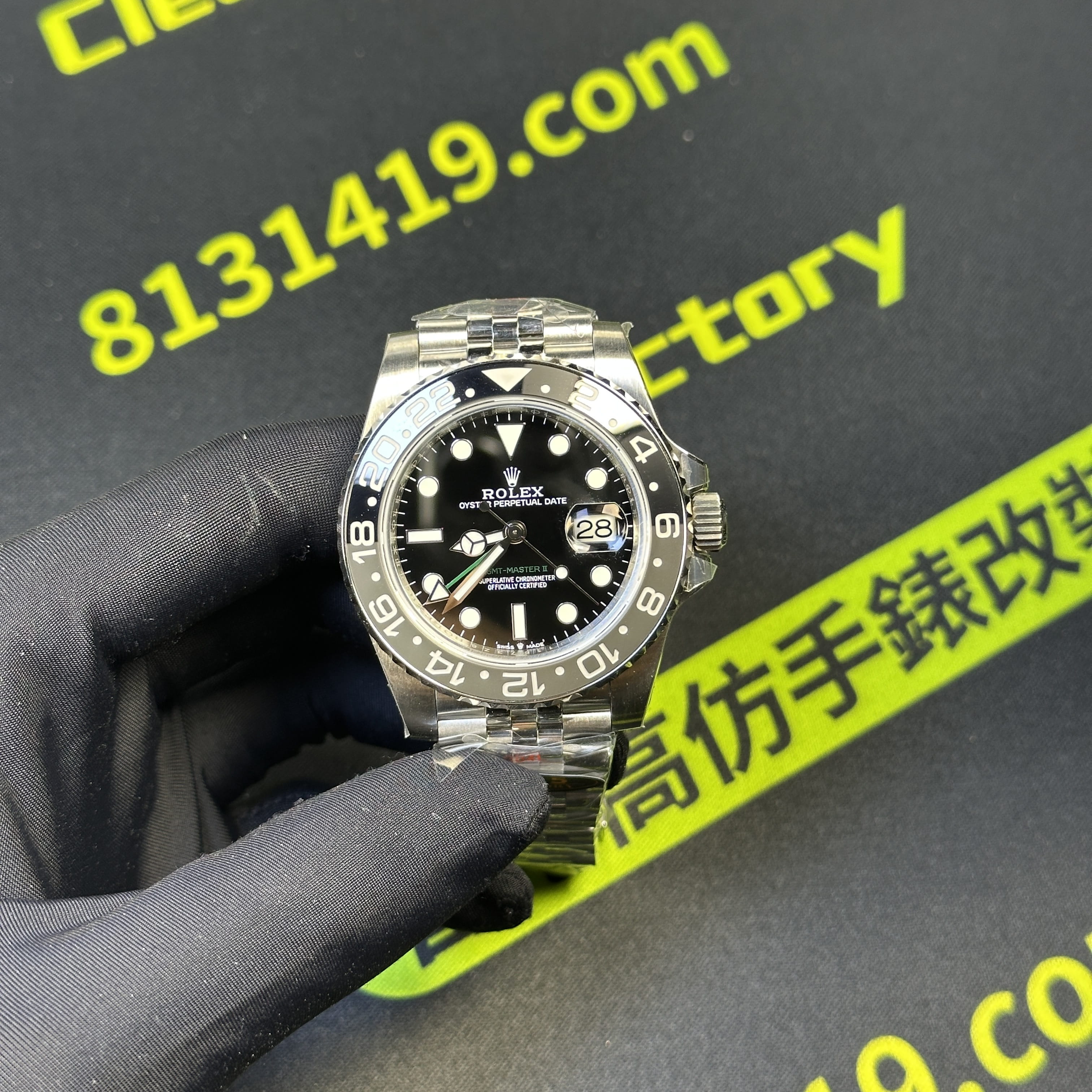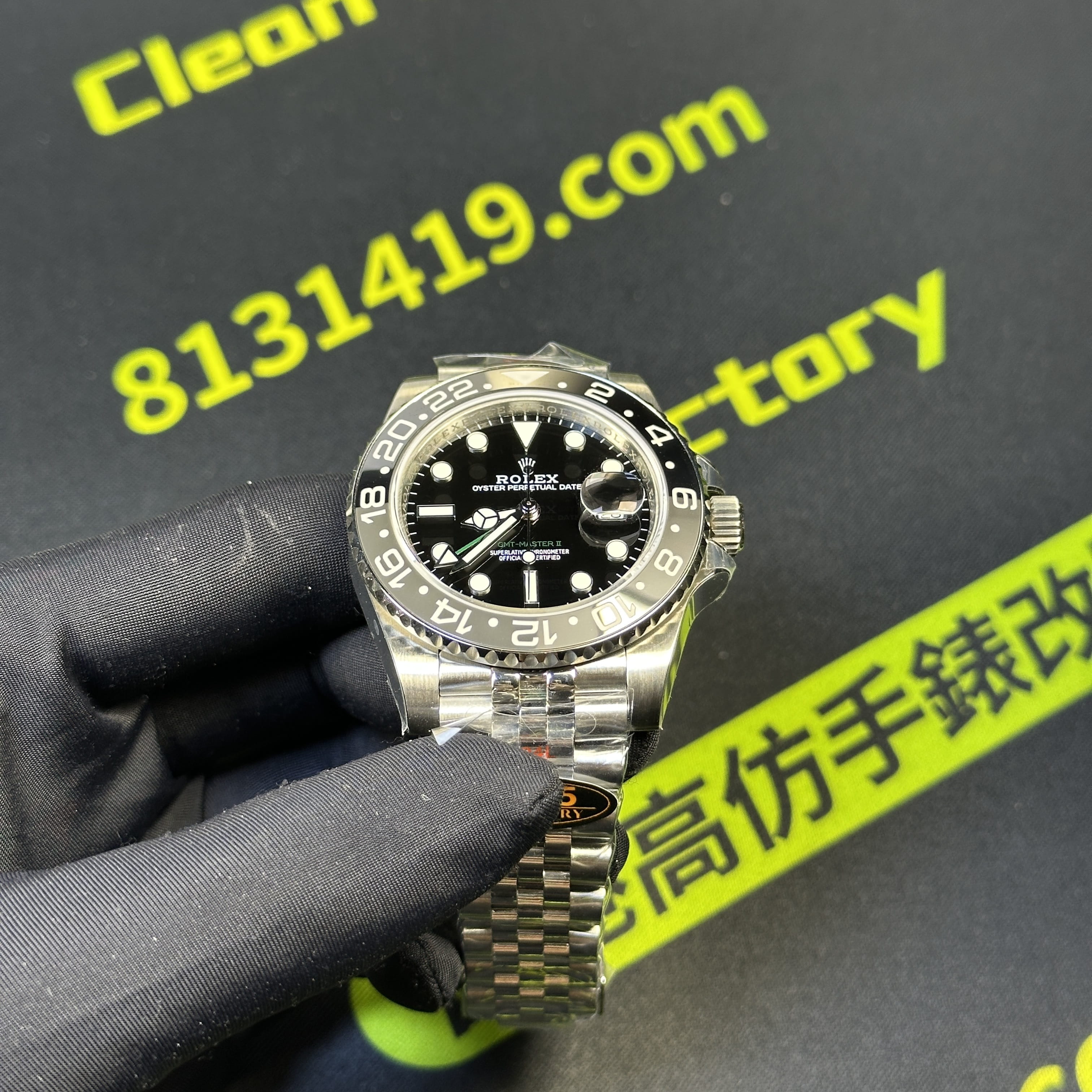 QF廠官網全新推出勞力士格林尼治GMT系列m126710grnr-0003黑灰圈,涉及的錶帶友五銖鏈以及三板帶,這兩種錶帶對於GMT系列錶款而言都是非常經典的款式.在品質方面QF廠GMT全系列都是使用Clean廠C廠V3版本的陶瓷圈口,一體式構造而成,黑灰色之間的融合在圈口上沒有縫隙,間隔距離同步原裝正品,一體式燒製而成.是目前眾多廠家都會沿用的格里尼治陶瓷圈口.也可以理解為QF廠黑灰圈配置比較高.