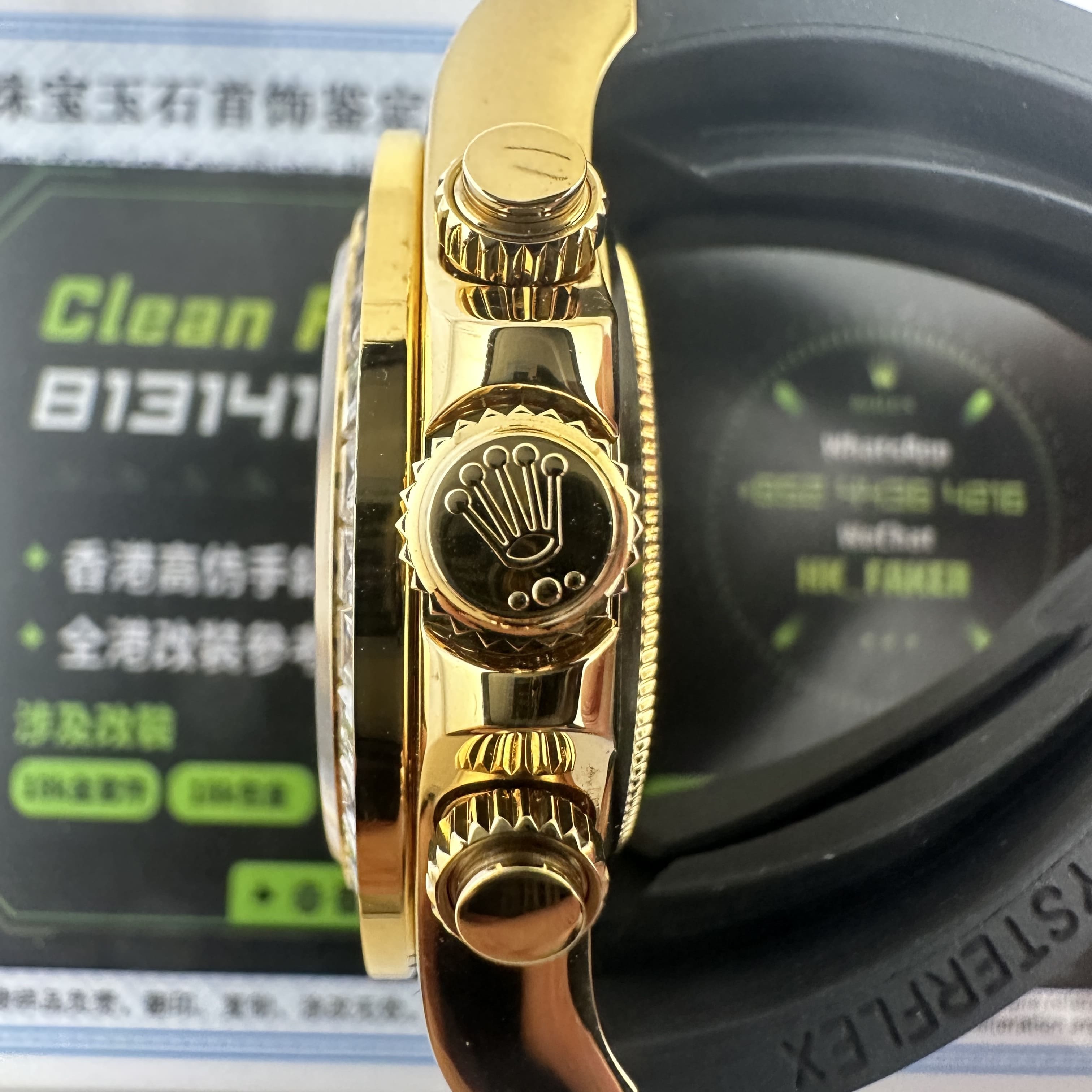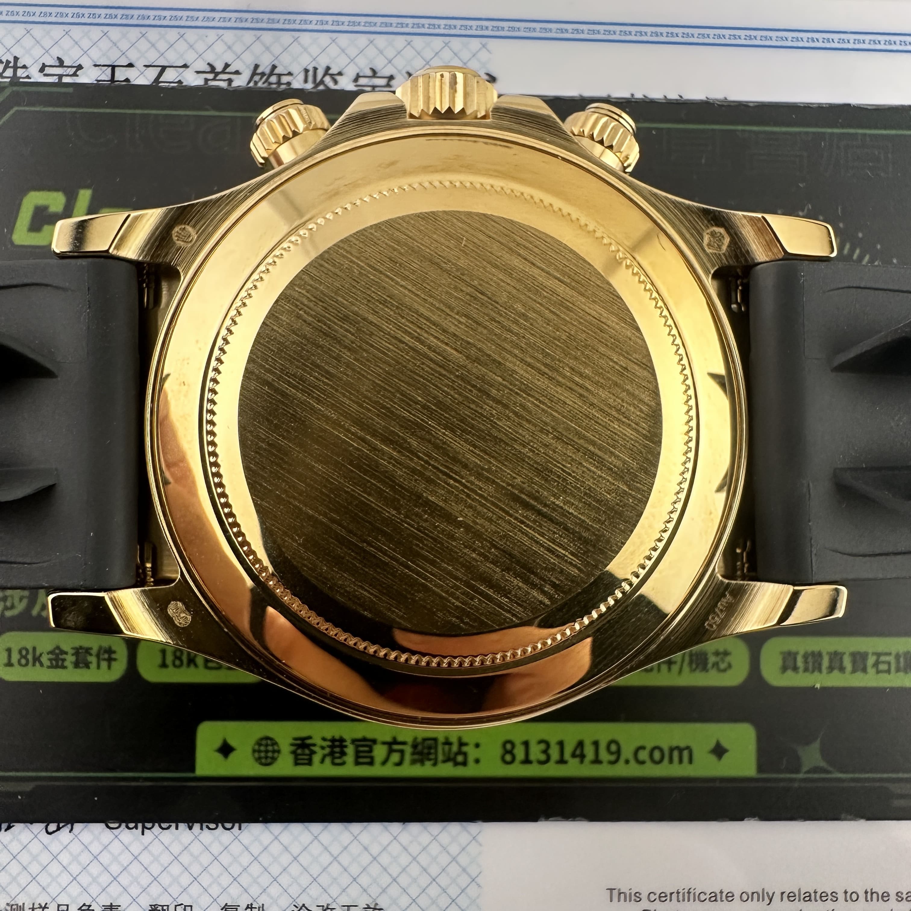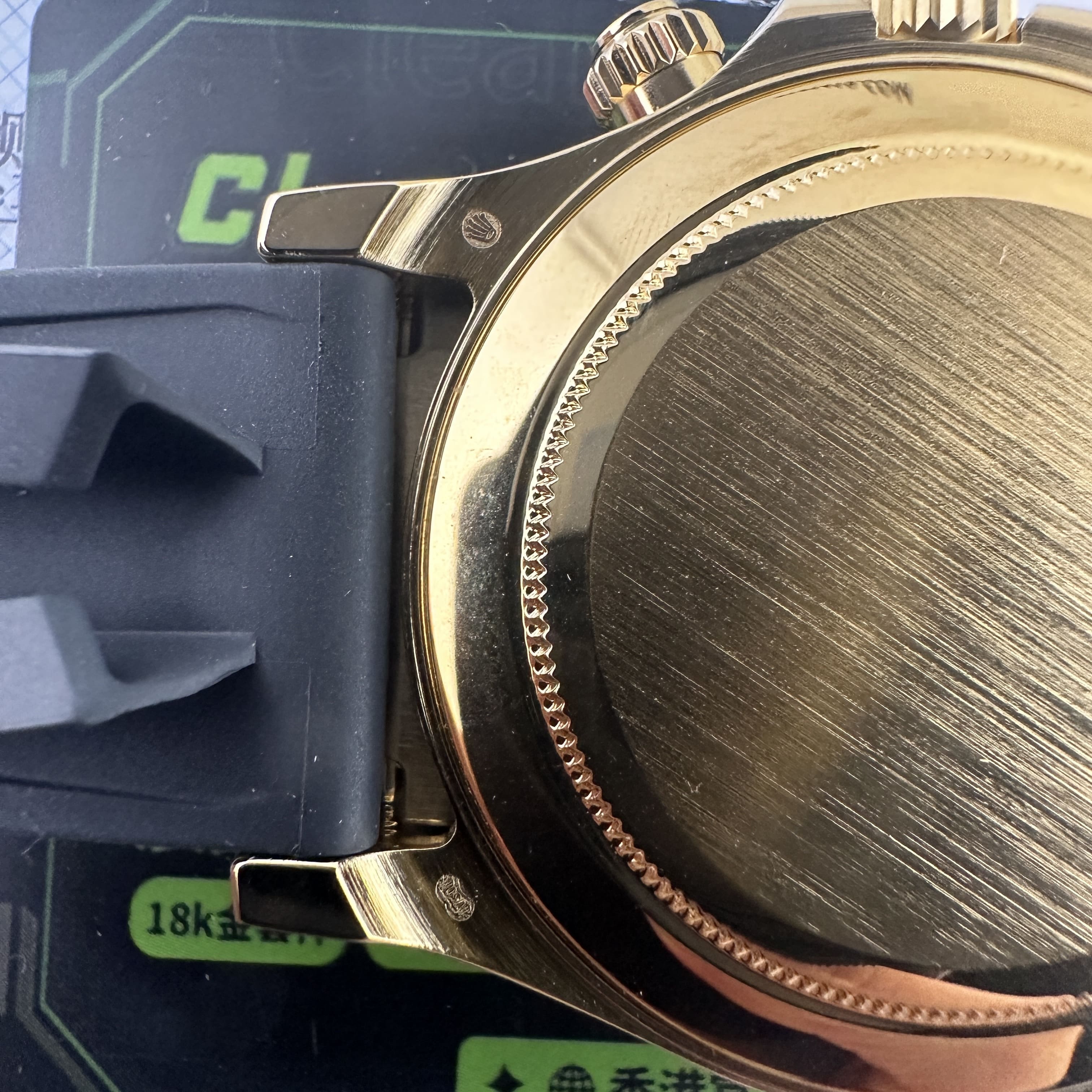 正品Rolex老虎地116588TBR是18K金材質打造,我們使用18K包金的用意是針對外觀還原正版K金色澤,色澤,亮度,部分是可以做到正版K金效果,而且基本上分別不出真假.同時18K包金不增加任何重量,只是改變外觀色澤.其餘的配置大家可以瀏覽相關配件單,使用DEEP高透玻璃,BUFF指針套件,OYS記憶鋼片橡膠錶帶,丹東4130降噪機芯等等.