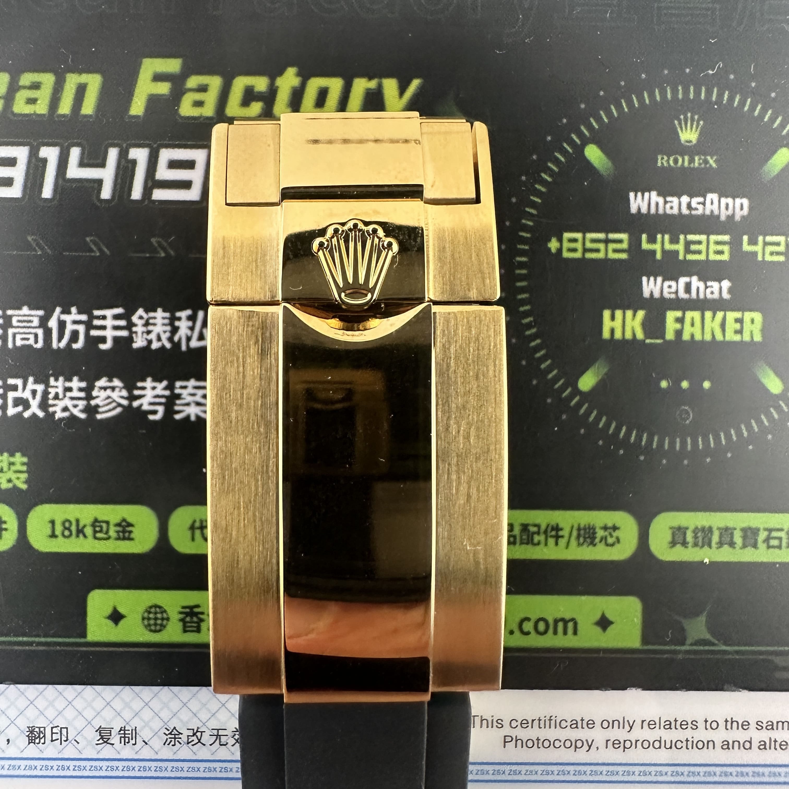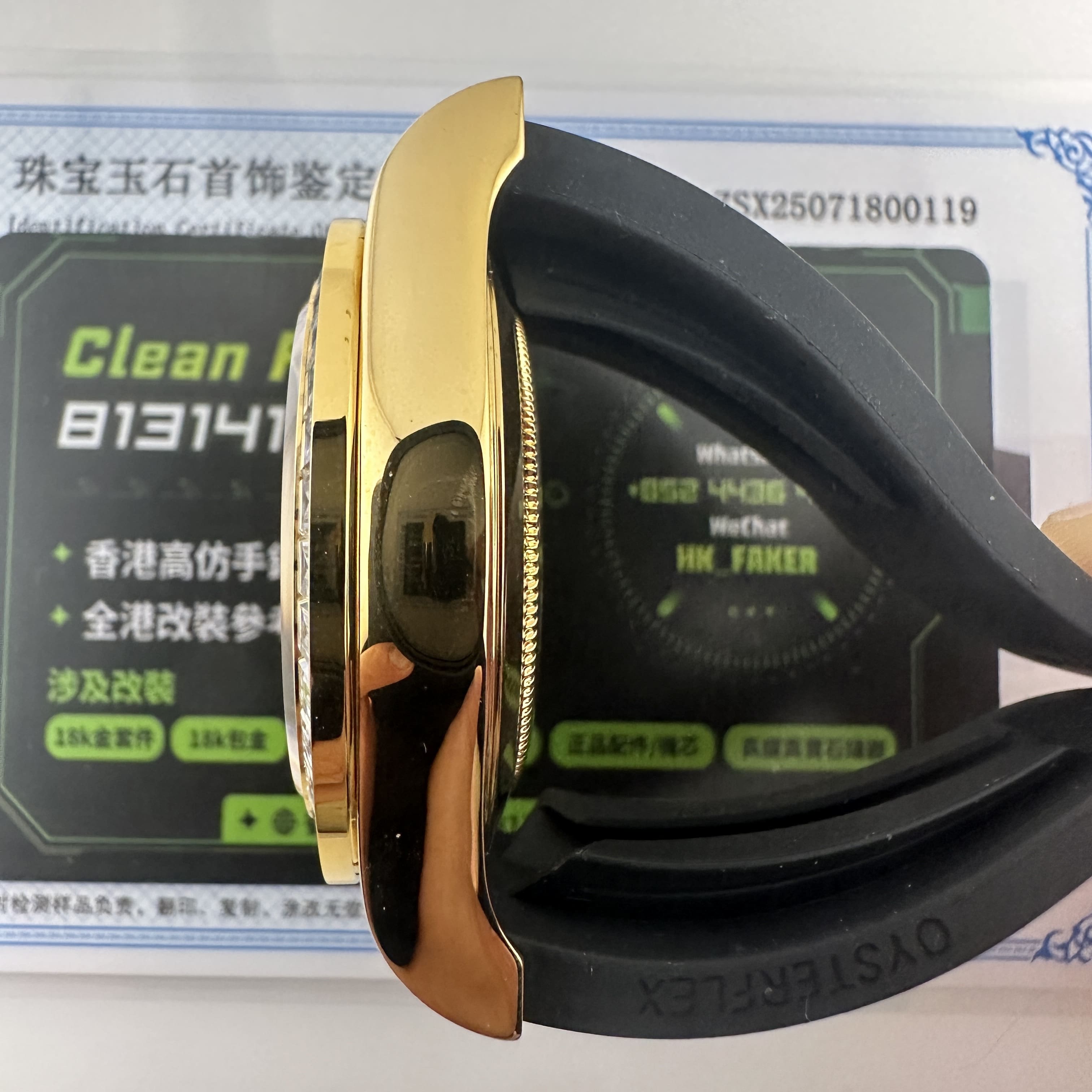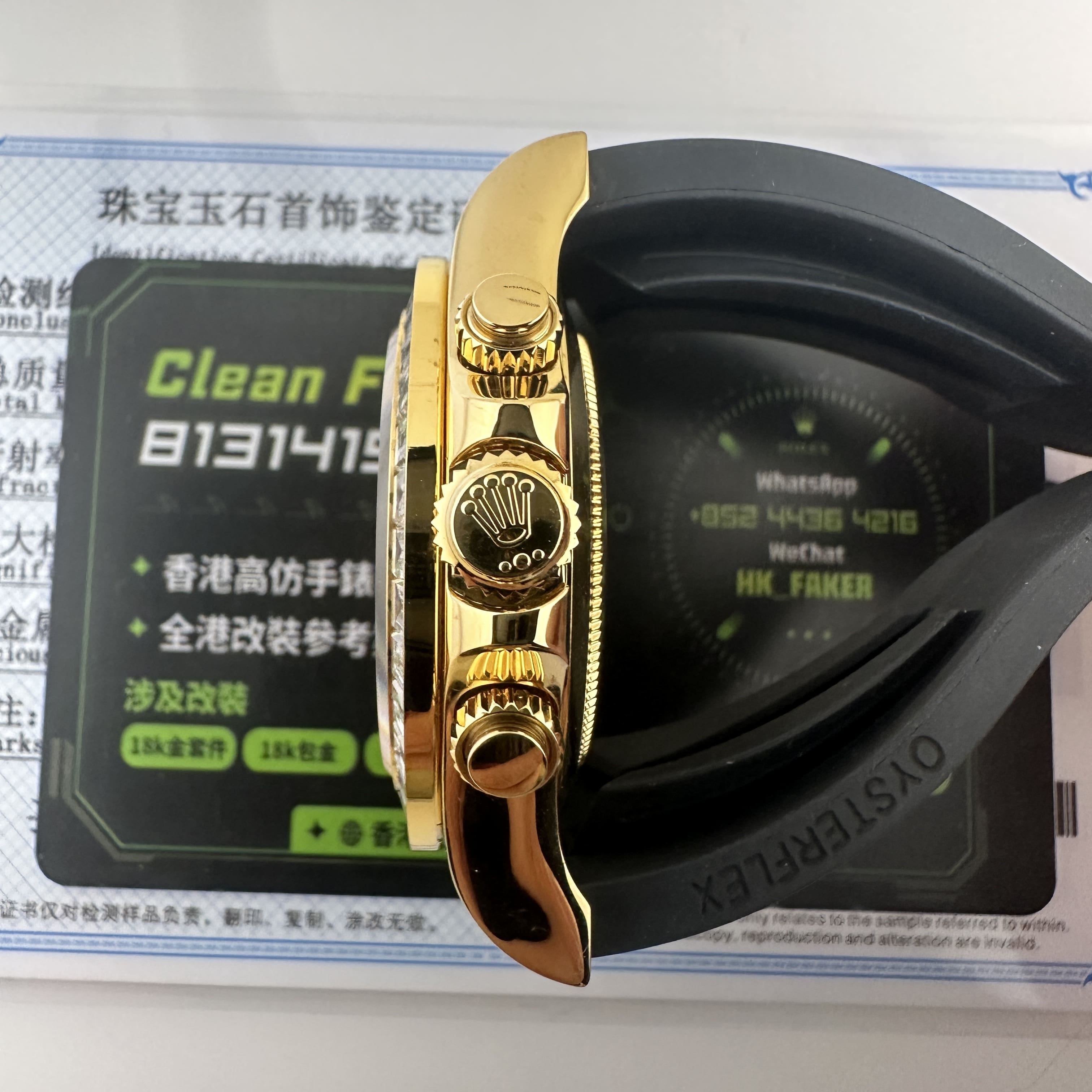 正品Rolex老虎地116588TBR是18K金材質打造,我們使用18K包金的用意是針對外觀還原正版K金色澤,色澤,亮度,部分是可以做到正版K金效果,而且基本上分別不出真假.同時18K包金不增加任何重量,只是改變外觀色澤.其餘的配置大家可以瀏覽相關配件單,使用DEEP高透玻璃,BUFF指針套件,OYS記憶鋼片橡膠錶帶,丹東4130降噪機芯等等.