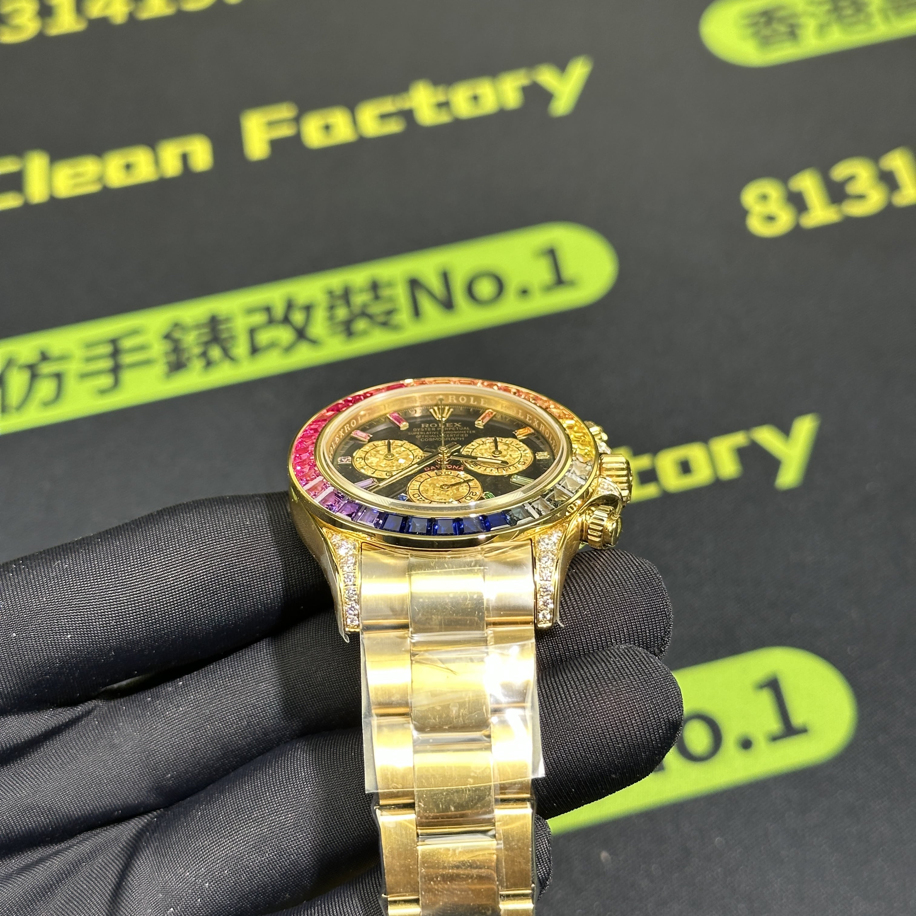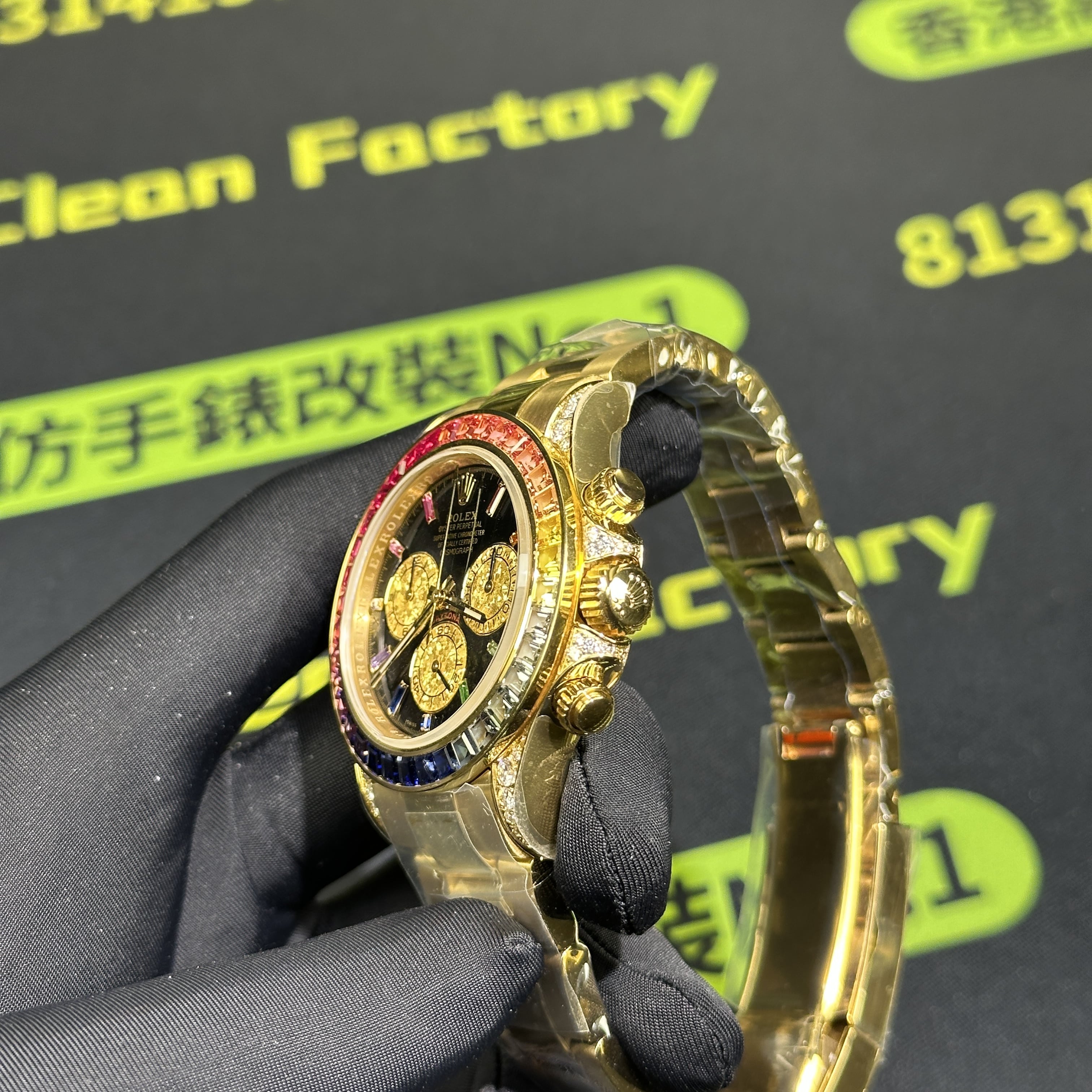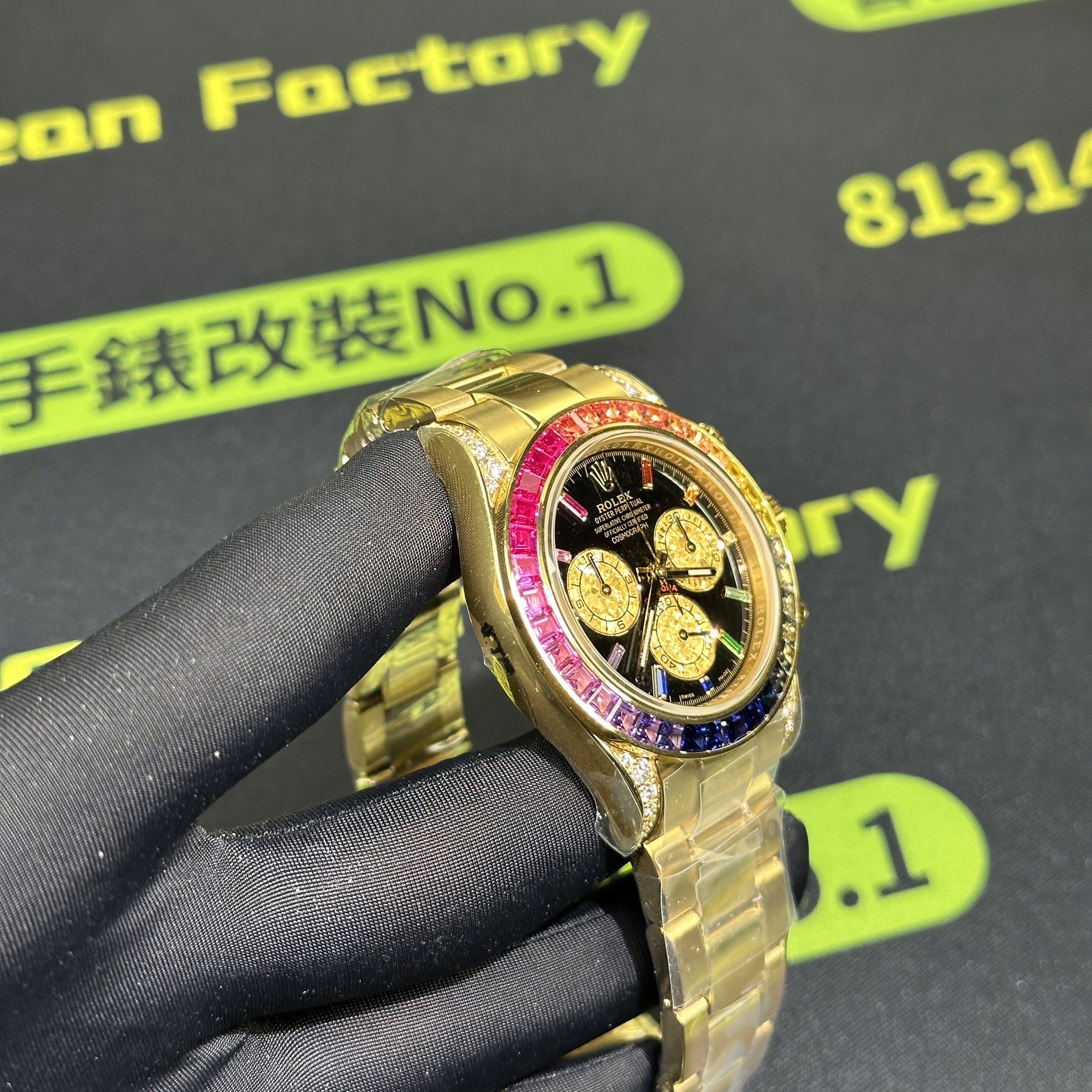 私人訂製高仿勞力士地通拿116598RBOW-0004黃金彩虹地206克