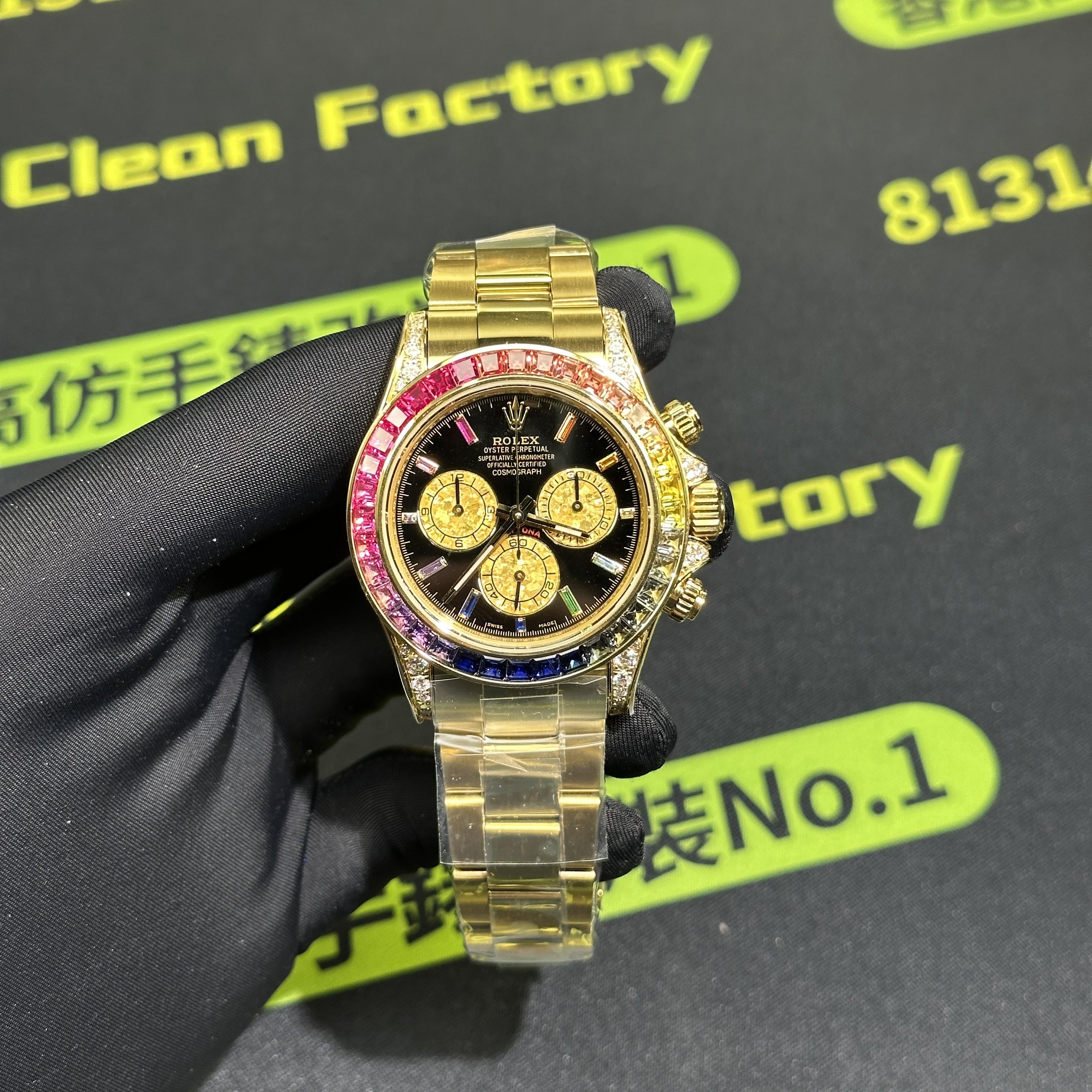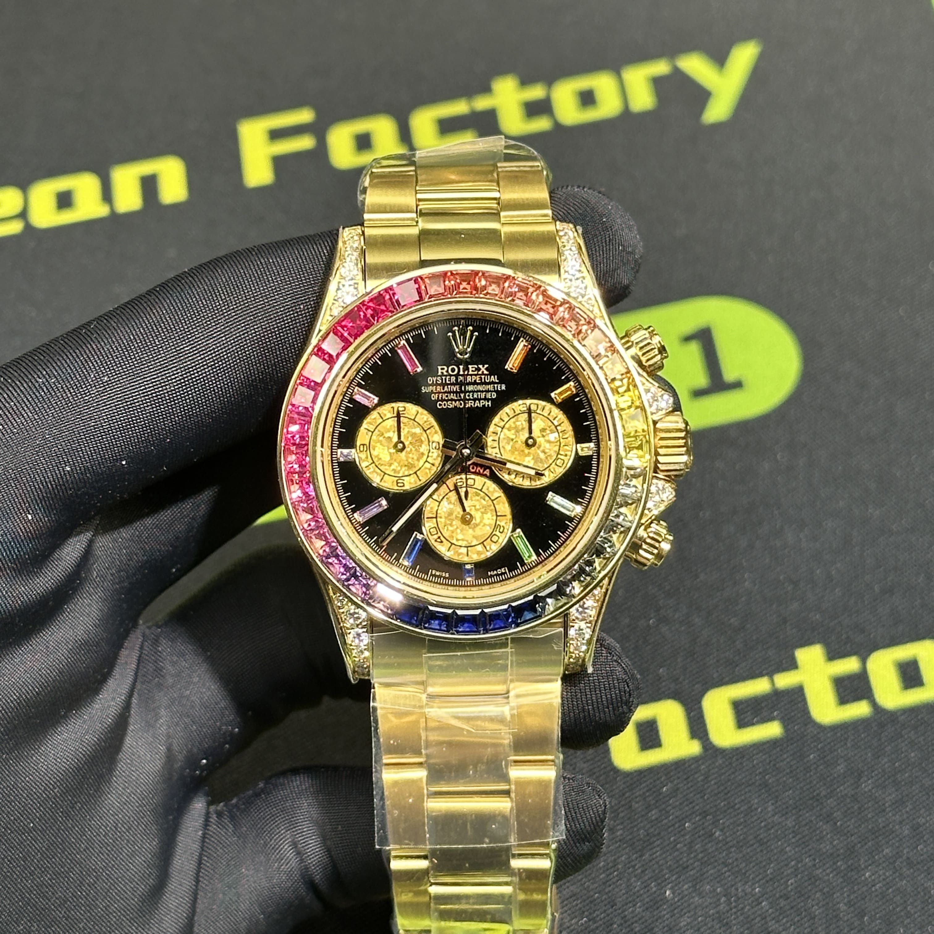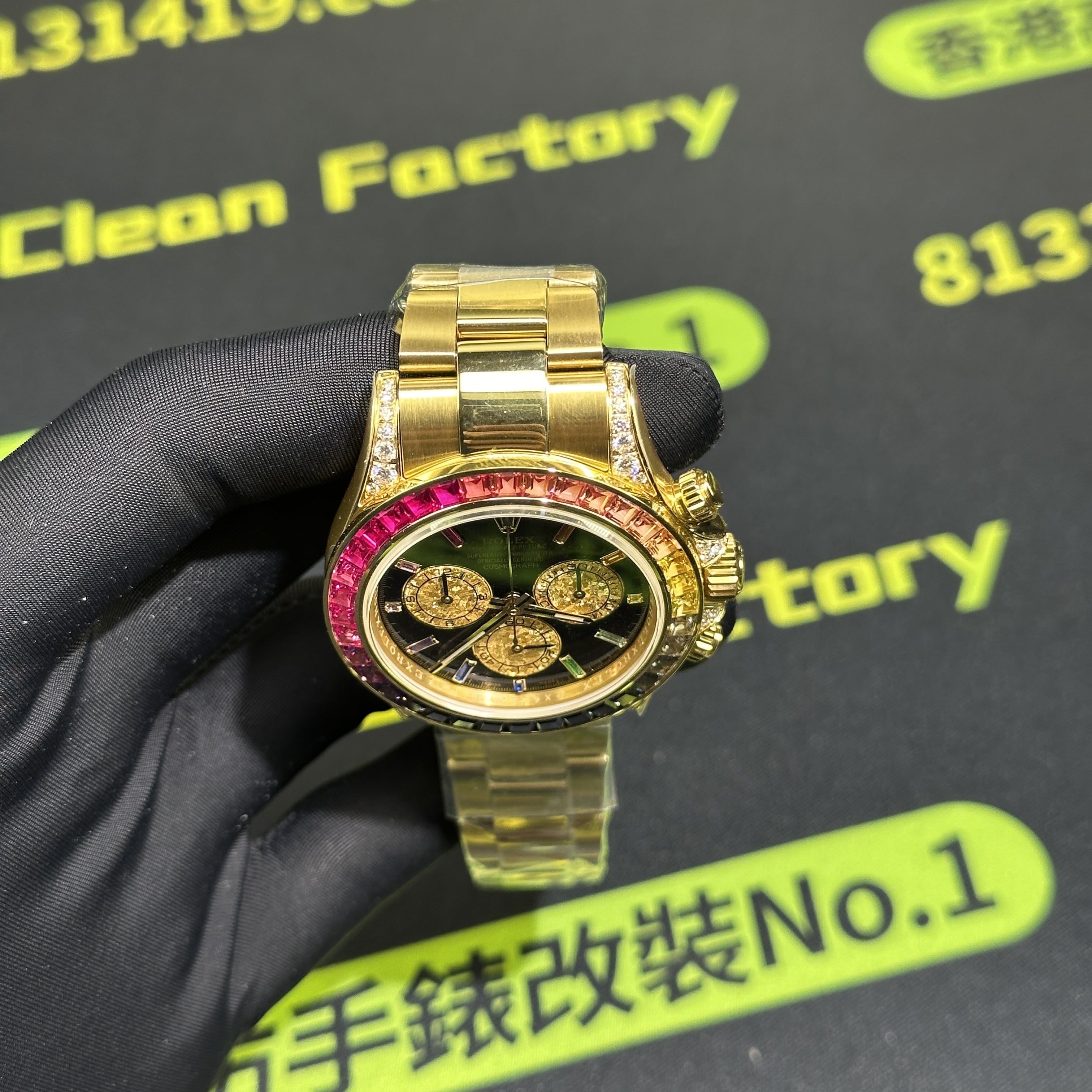 私人訂製高仿勞力士地通拿116598RBOW-0004黃金彩虹地206克