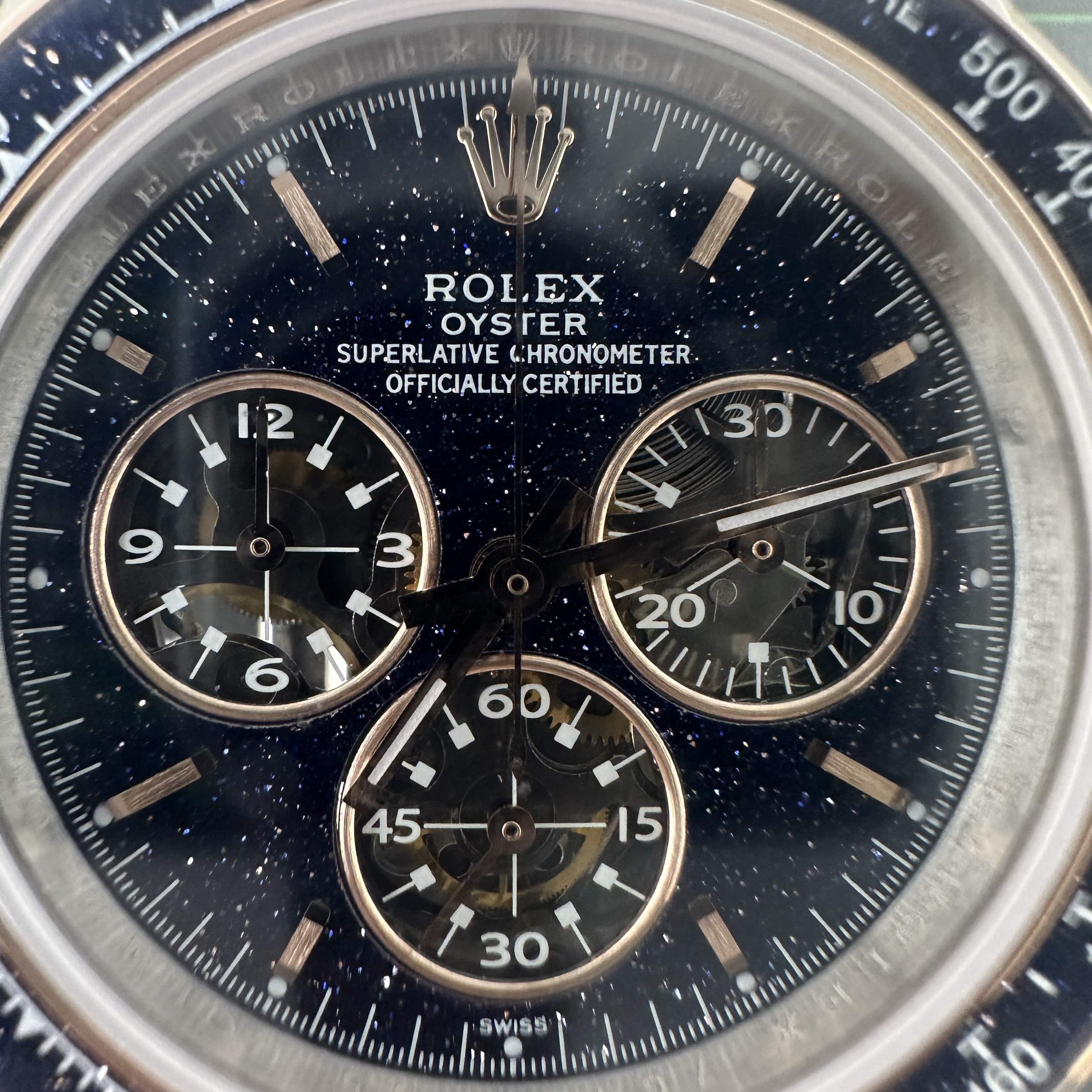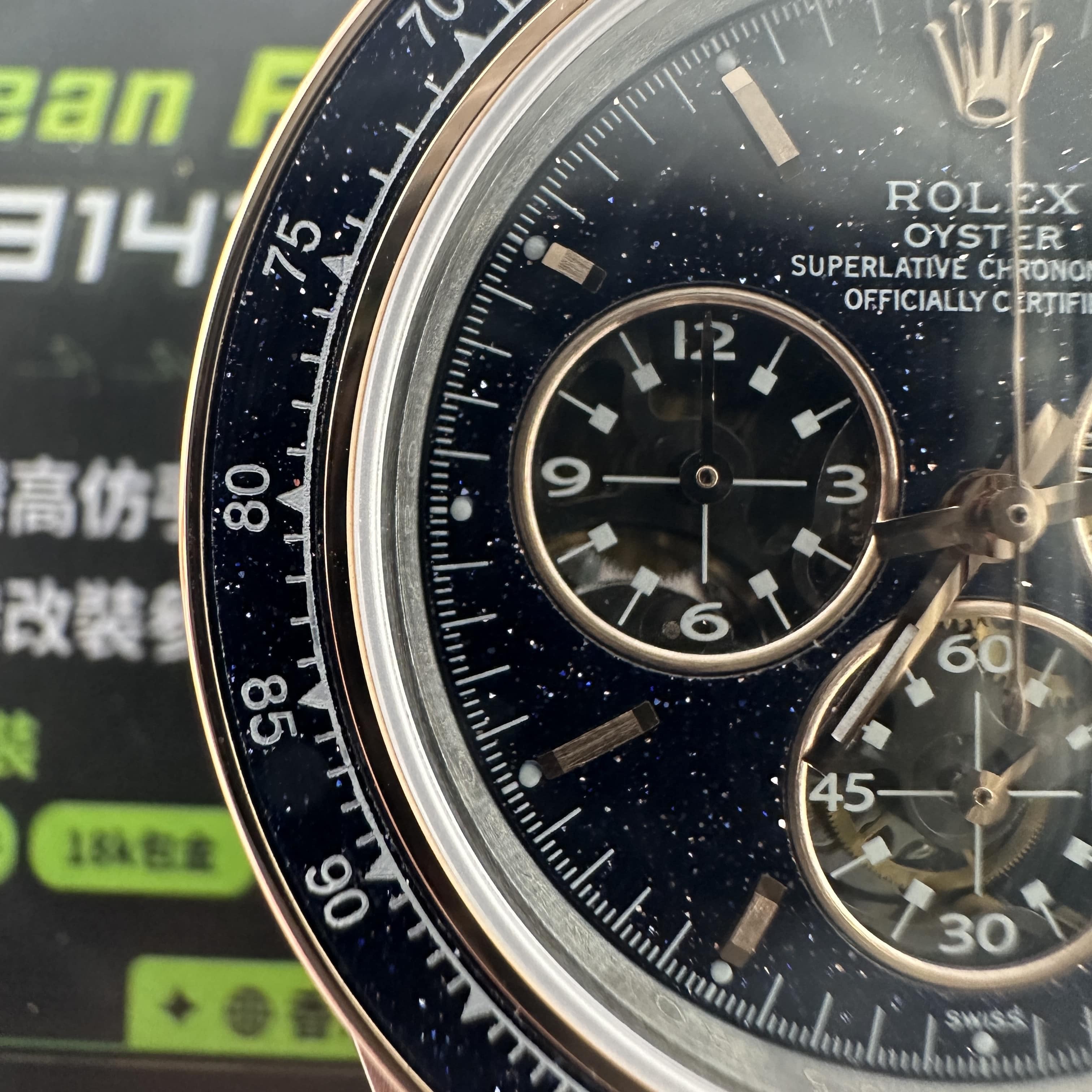 錶款是高仿版本日內瓦工匠表廠 (Artisans de Genève) 推出"Ventura"Daytona,將機遇與命運完美結合,打造出一款全新製表傑作.這一隻復刻勞力士錶詮釋了高仿復刻製作工藝的頂尖技術同時也反映了另外一種不好的景象,就是該錶款由於原裝正品價錢比較貴,加上了解的人數不多,特別是針對正版渠道.整錶尺寸依舊是圍繞老款地通拿40mm尺寸比例進行打造,並且還是配置了4130機芯板塊.高仿地通拿Ventura圈口以及錶盤內部是一種滿天星視覺感,類似浩瀚宇宙當中繁星點點中透露出的閃光.