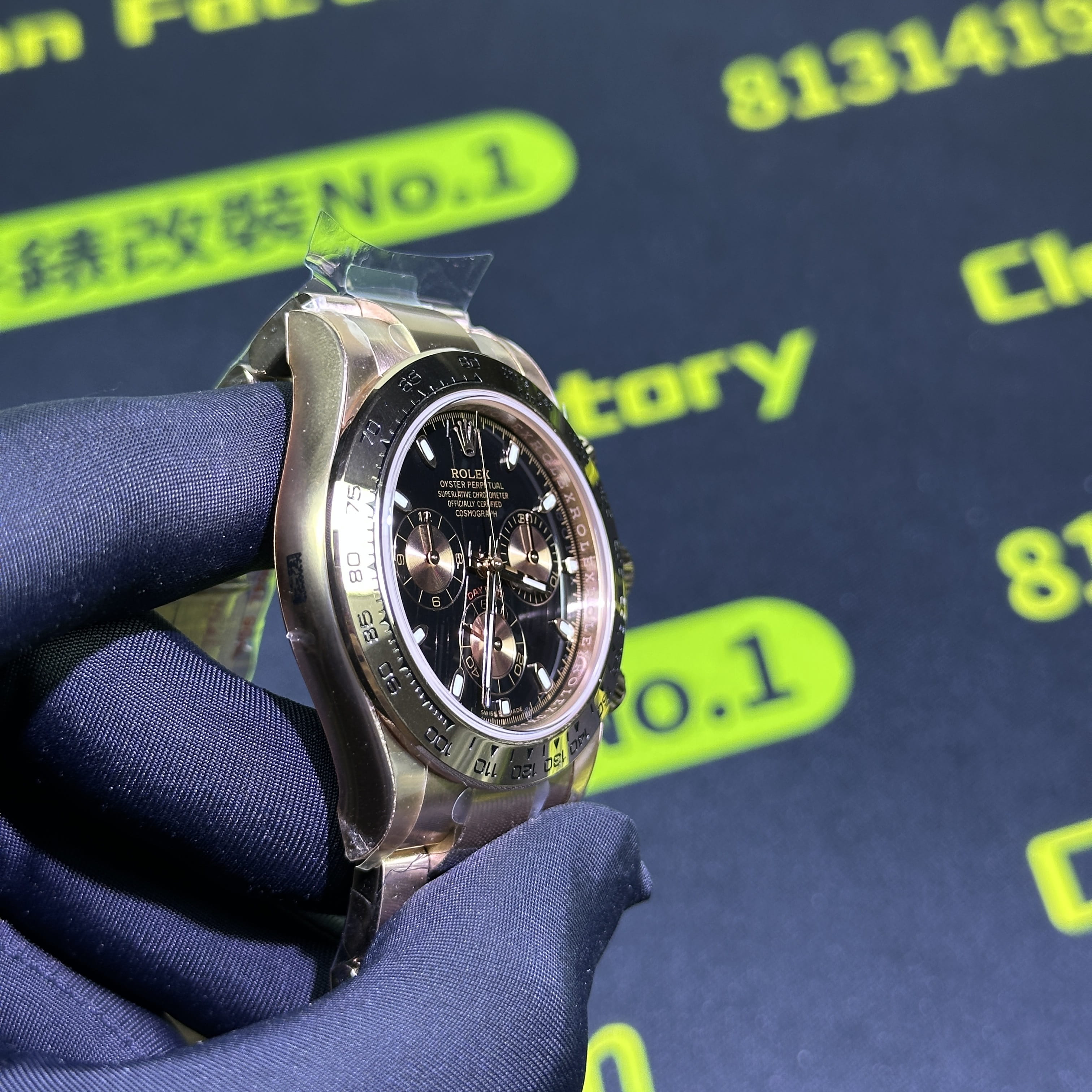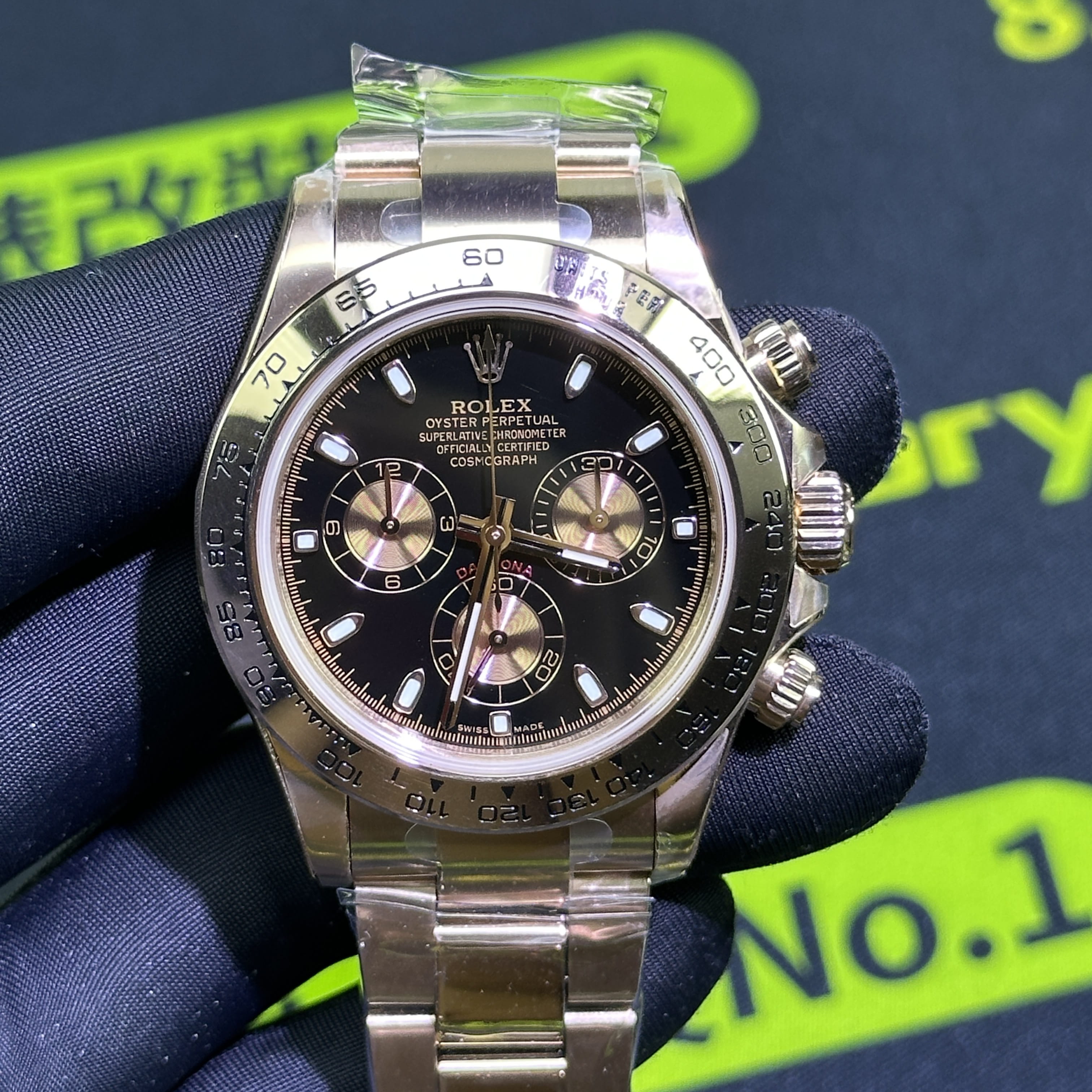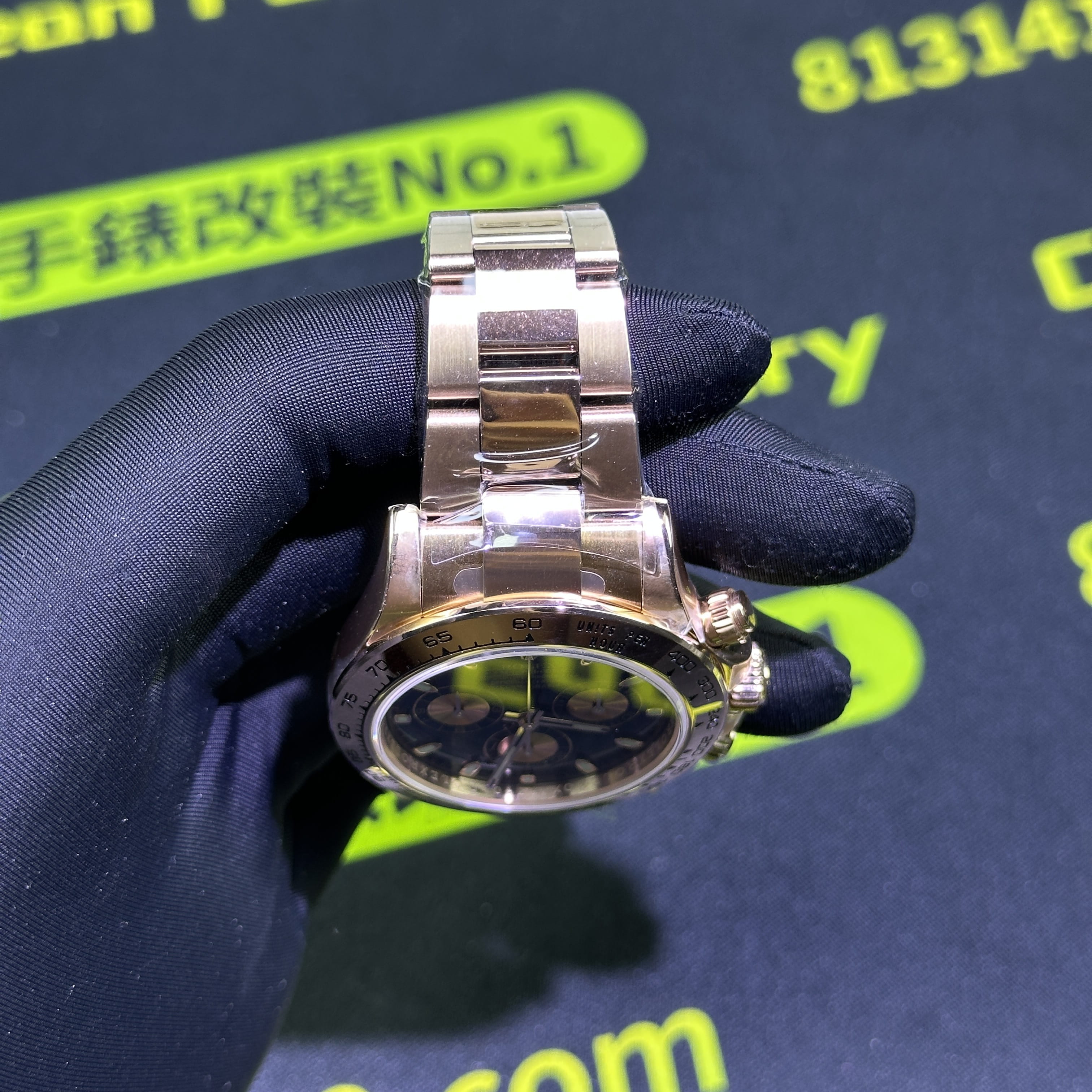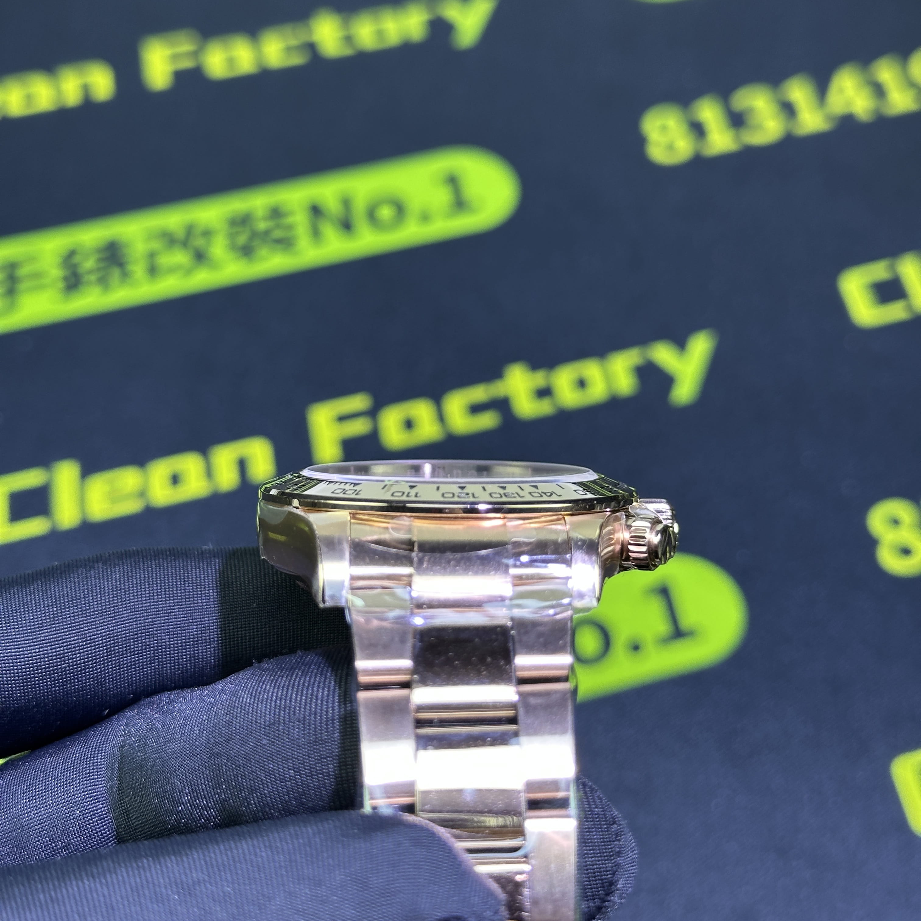 高仿地通拿116505金眼睛訂製版本BUFF指針中軸套件我們也是標配升級,其次是升級DEEP高透玻璃,對於防指紋效果,以及霧氣的效果,DEEP高透玻璃都可以做到同步原版有效防止錶盤玻璃出現模糊的缺陷.其次是機芯方面的升級,我們是可以選擇丹東4130機芯,也就是置換,目前高仿勞力士粉冰糖搭載的是一體4130機芯,而丹東4130機芯的穩定性也是高仿市面上最頂級的機芯,最後我們會升級降噪處理.後續外觀色澤可以升級18K包金效果,對版原裝正品色澤.