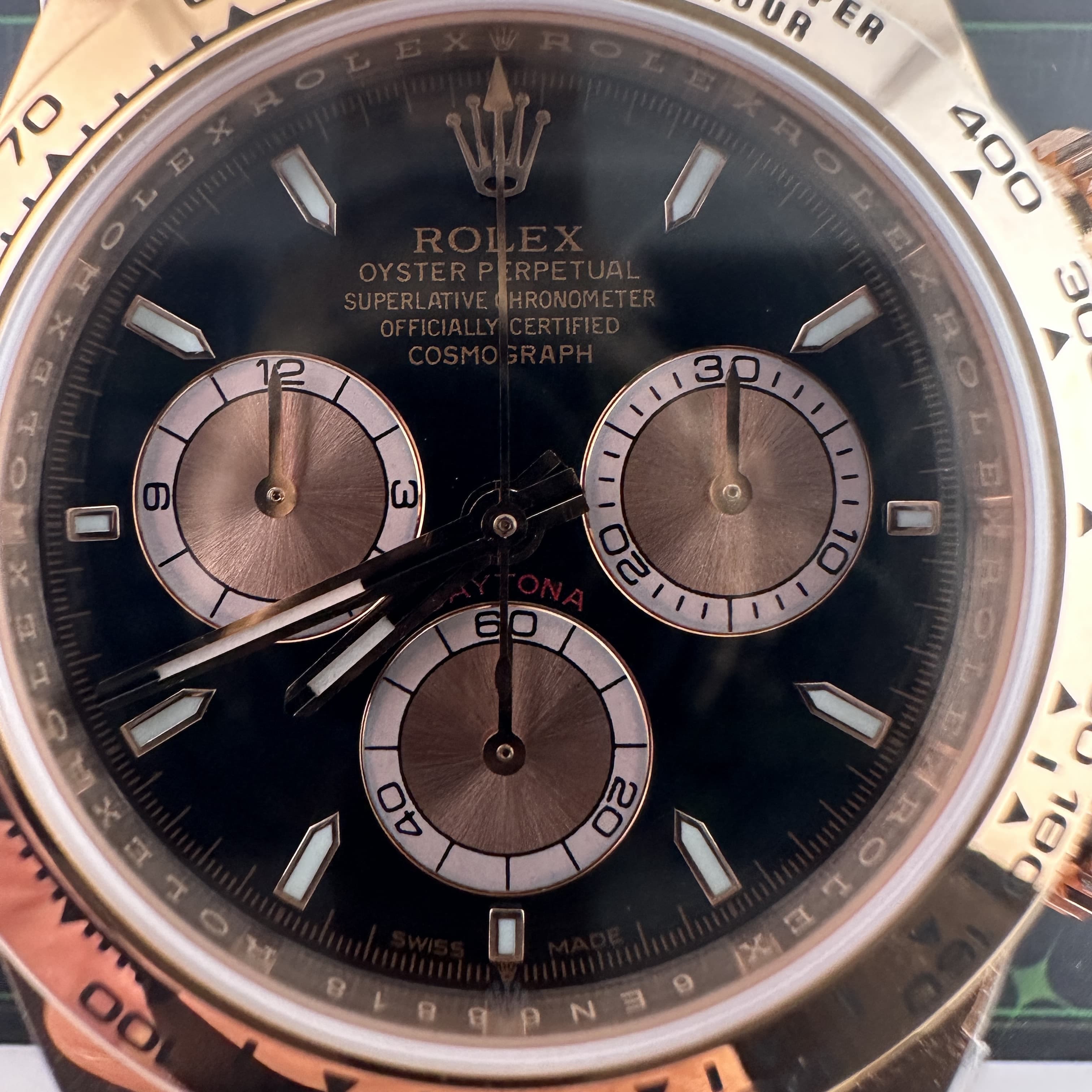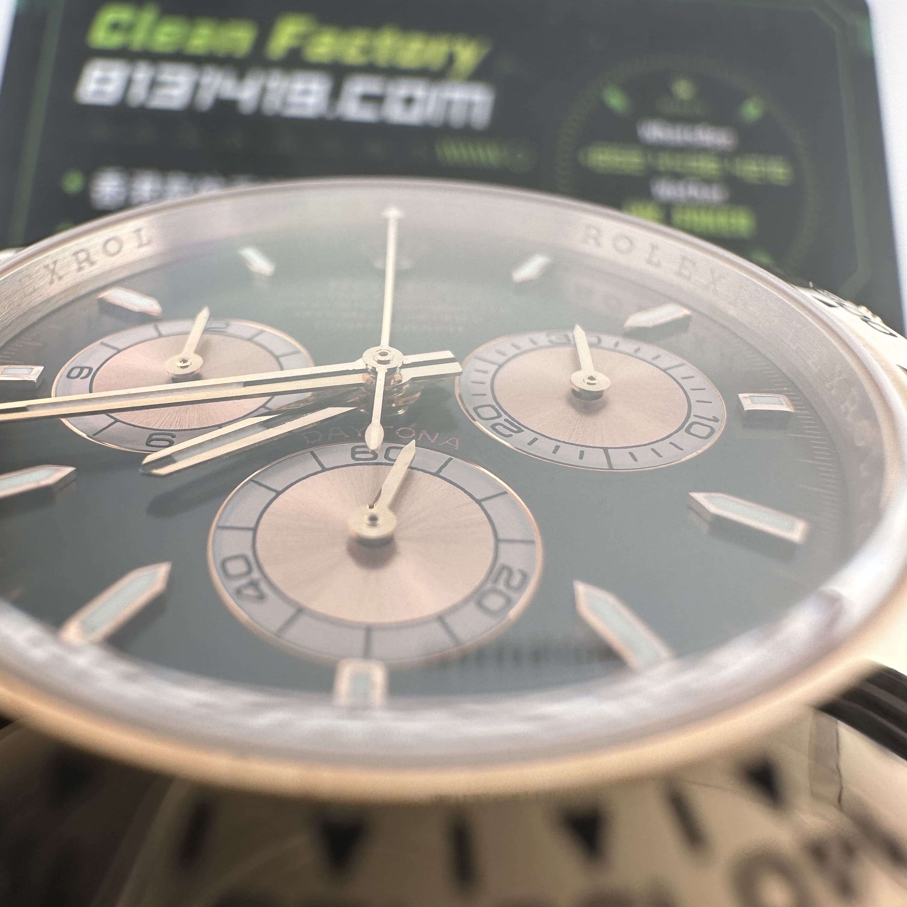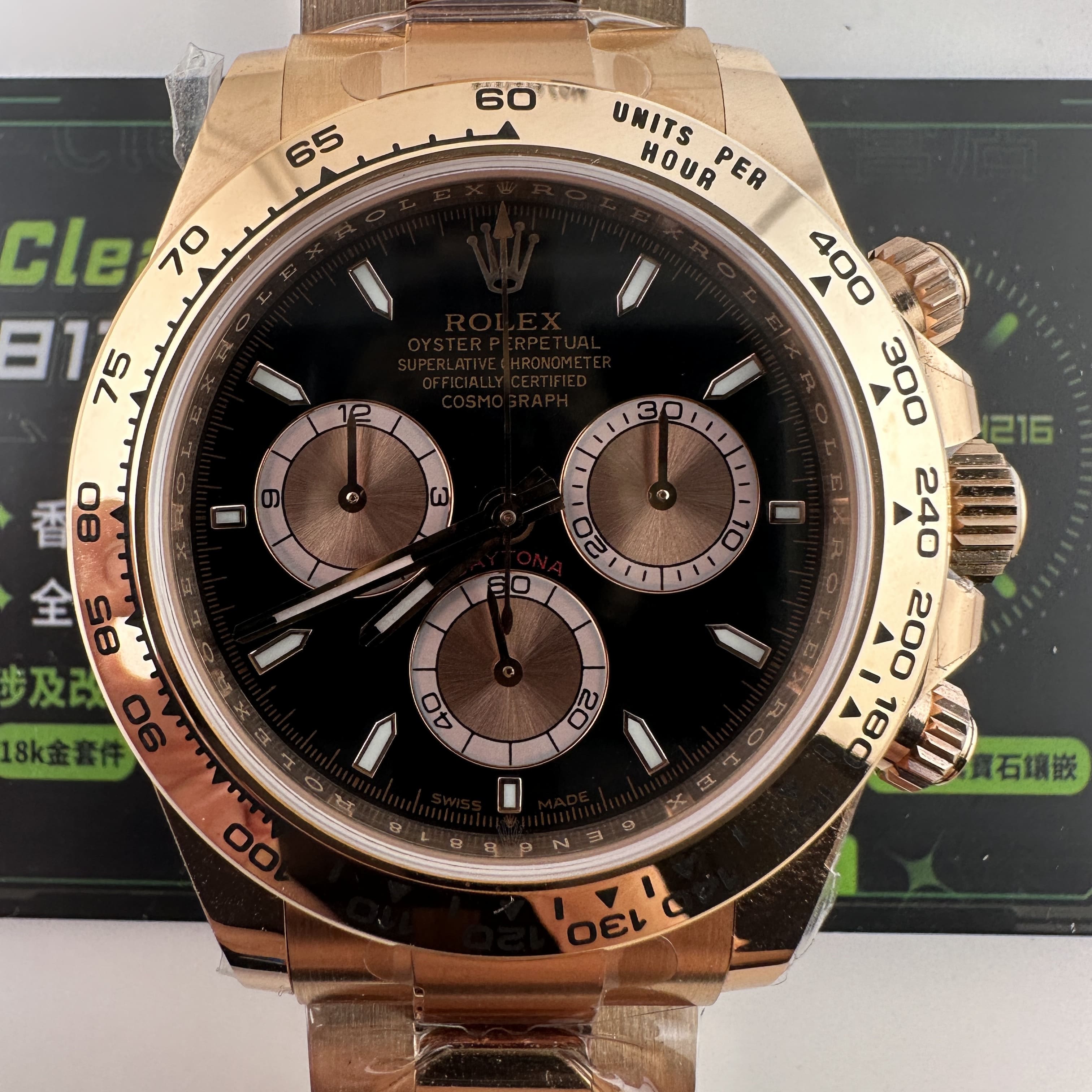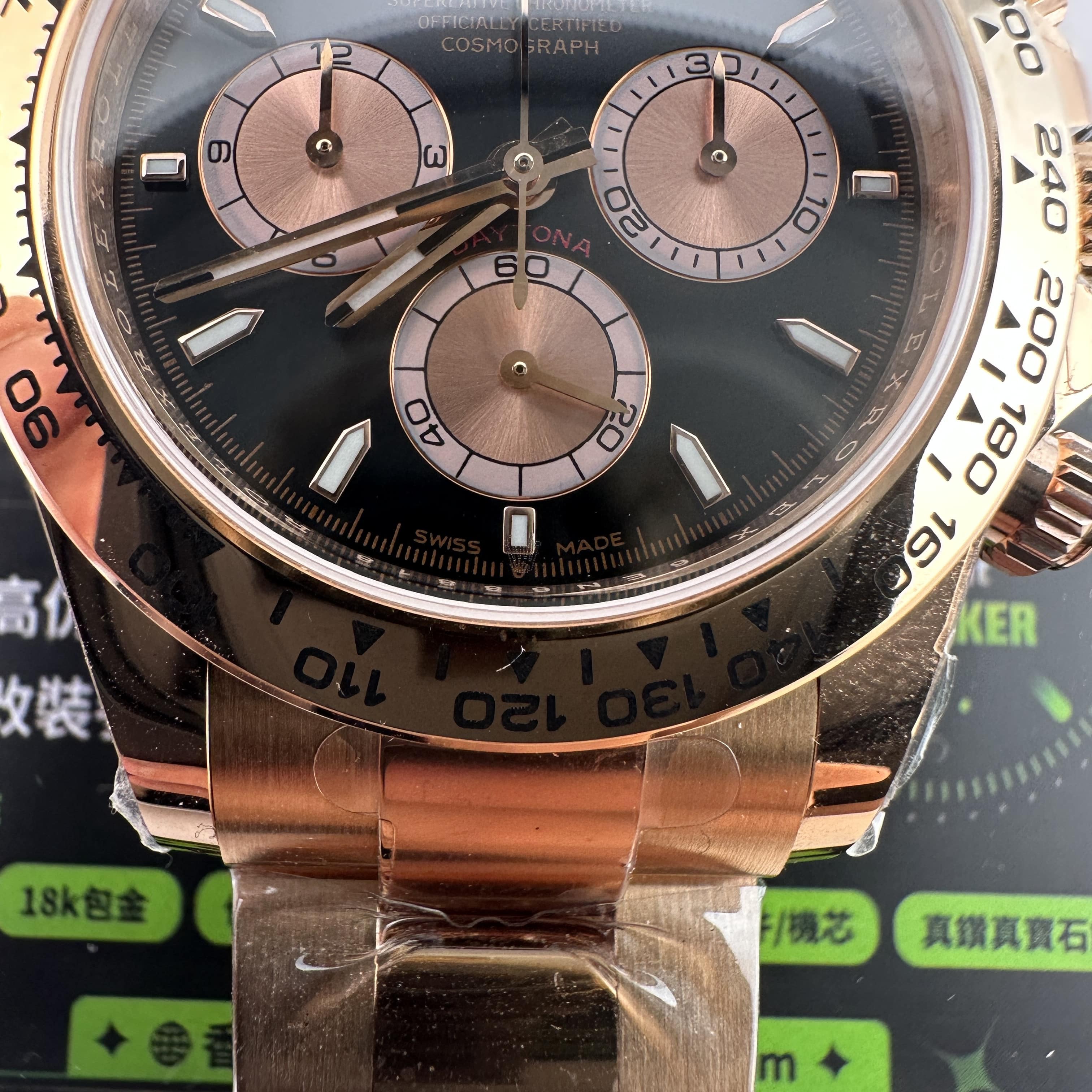 私人訂製足重地通拿m126505-0001玫瑰金版本全面推出,此次涉及的重量完全在預料之中,克重比例222可以說已經超越了專櫃版本的重量.原版玫瑰金地通拿4131機芯版本克重是210克左右,而高仿地通拿126505玫瑰金版本其重量數據不僅僅展示了克重達標的過程,更重要的是宣誓了高仿Daytona涉及的K金版本再也不必擔心存在重量誤差,這一點才是錶友們所關心的缺陷.