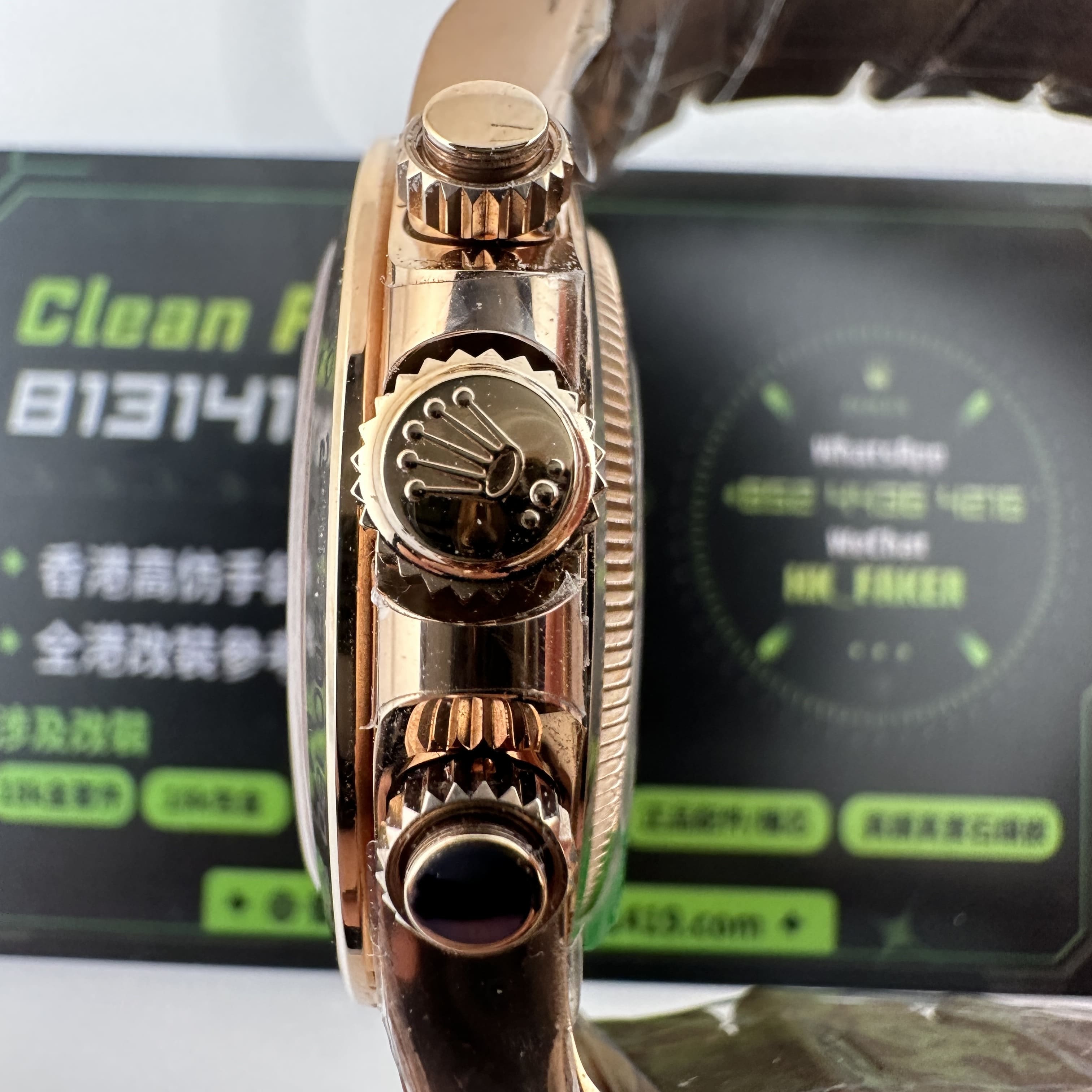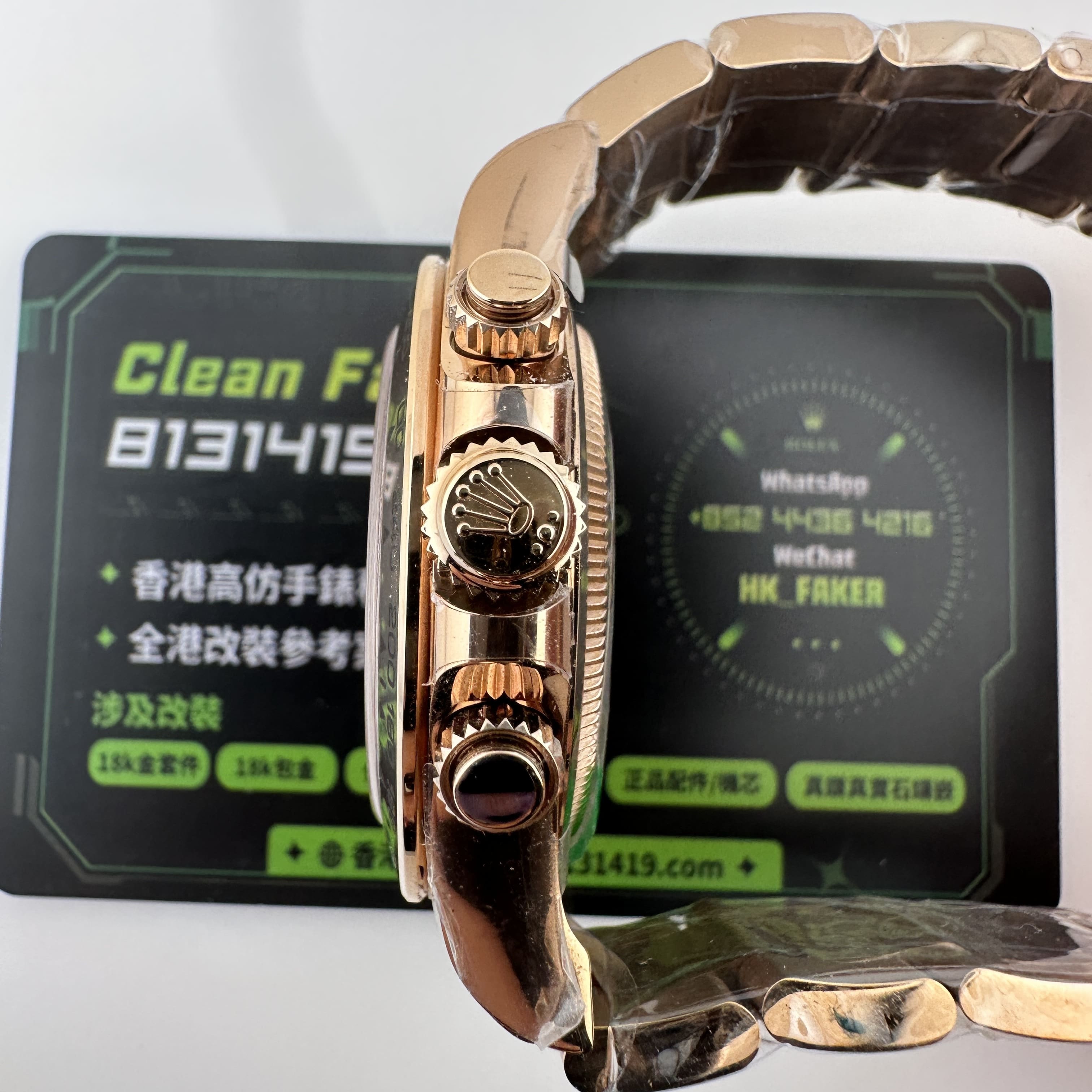 其次針對足重版本高仿地通拿我們提倡的建議就是升級18K包金,主要目的是高仿版本使用PVD電鍍金做相關的玫瑰金,白金,黃金色澤.擁有重量的前提下,外觀做對應的18K包金也是重中之重.大家也可以理解為這一隻高仿地通拿126505玫瑰金版本是基礎款式,可升級的案例有很多,例如玻璃,機芯降噪以及錶盤,指針等等,感興趣的錶友可以咨詢相關客服或者瀏覽高仿手錶改裝升級案例頁面.
