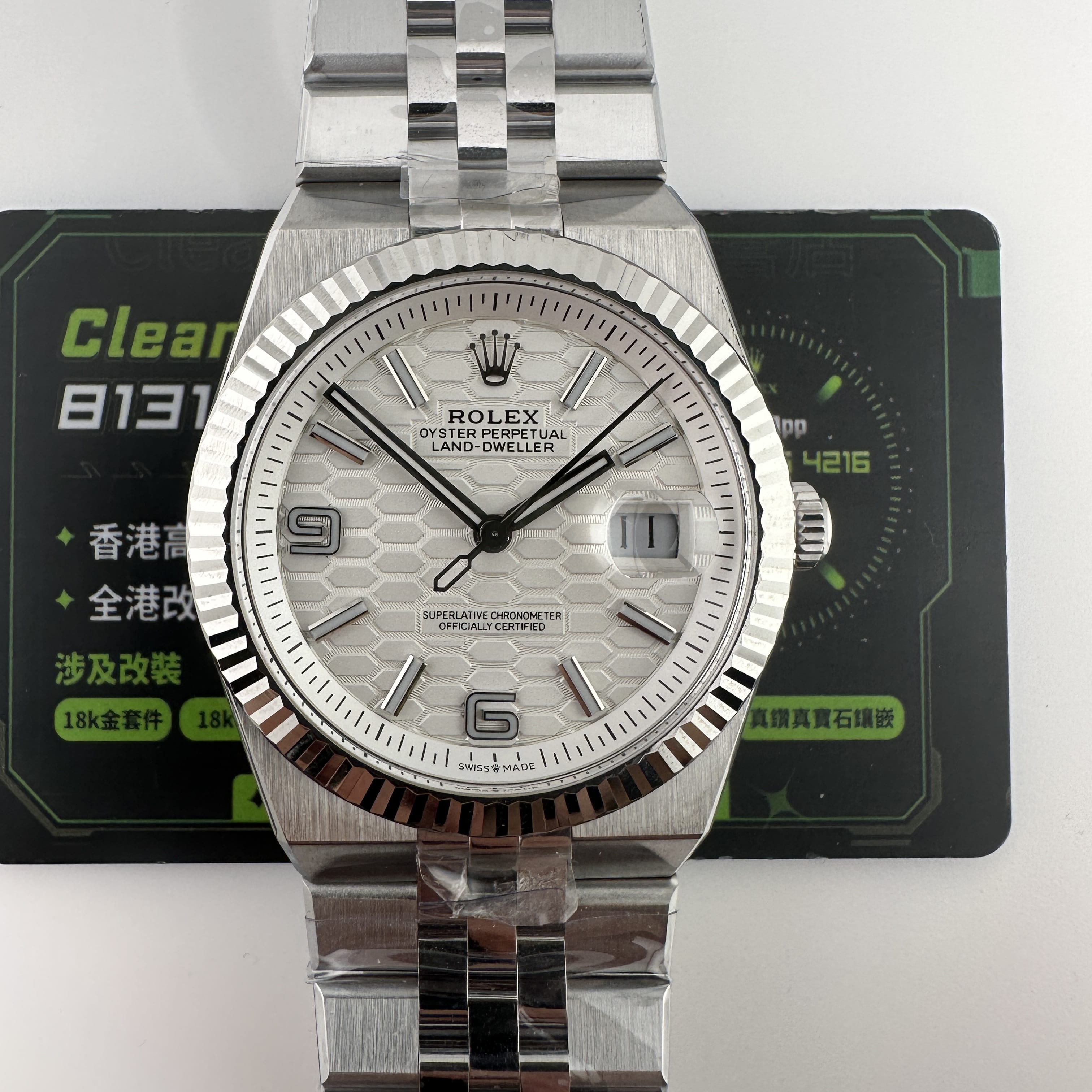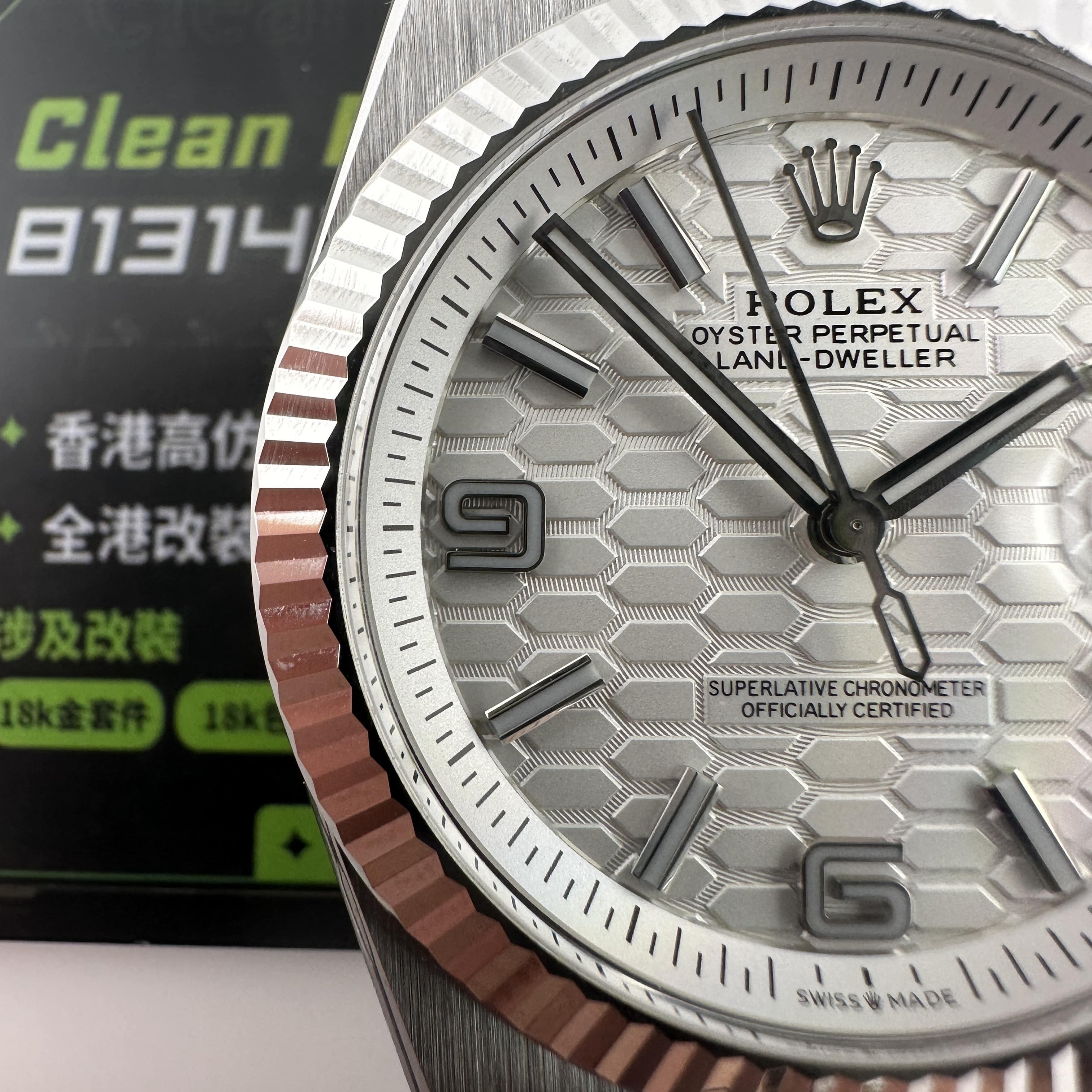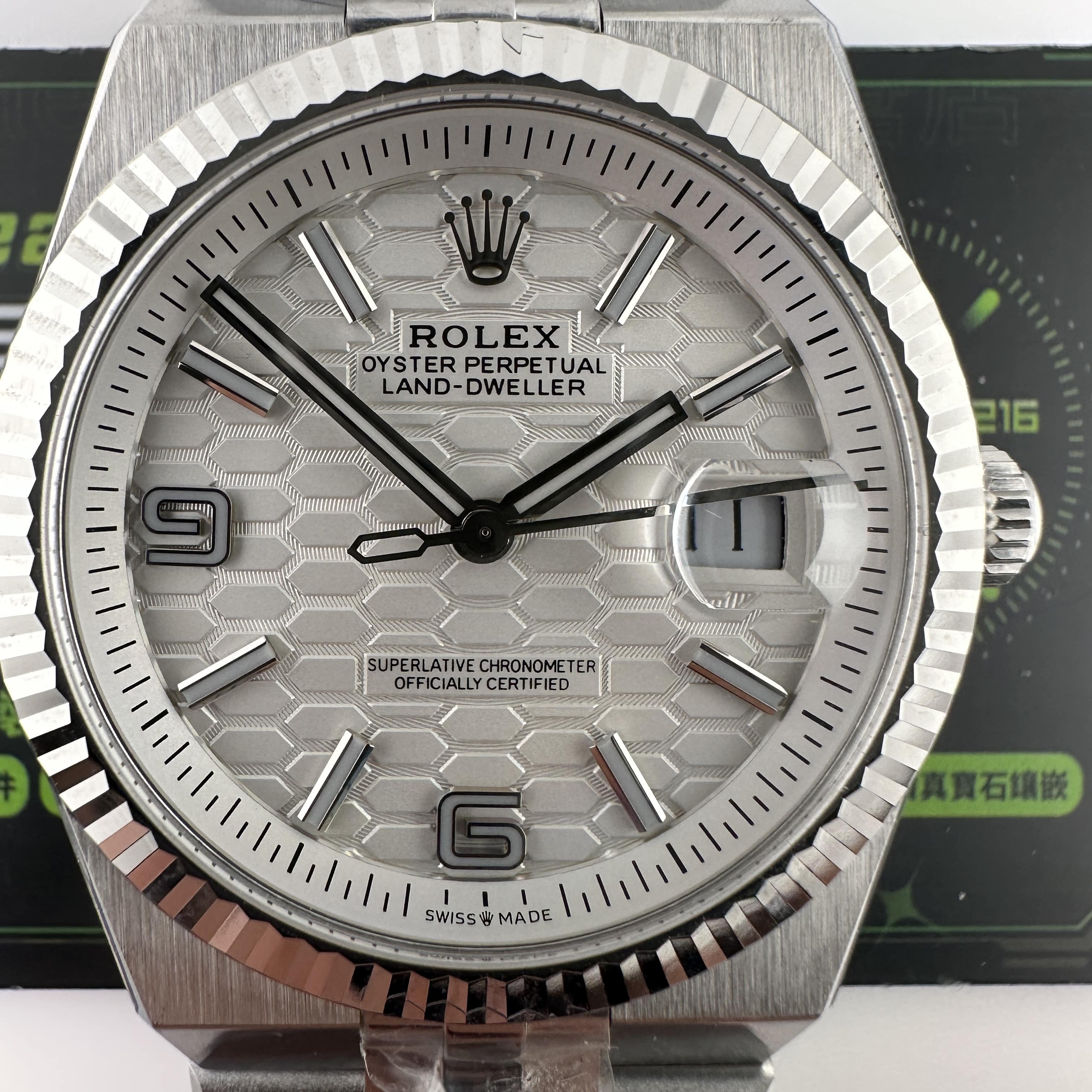 私人訂製廠高仿勞力士陸使型LAND-DWELLER系列m127334-0001,整錶尺寸40mm.該錶款式Rolex官方2025年4月份日內瓦鐘錶展中發佈的最新款腕錶,也是今年最重磅且熱門最高的錶款之一!40mm錶徑,這可能是勞力士新晉的鋼王之王.剛好私人訂製廠出了一批高仿勞力士陸使型腕錶,小編正好藉此機會拿到實物與拍攝相關細節與大家詳情解析到這隻高仿勞力士127334腕錶.目前腕錶圈的話題始終都離不開勞力士陸使型的價格走向以及未來十年中是否能夠成為勞力士下一代明星產品.