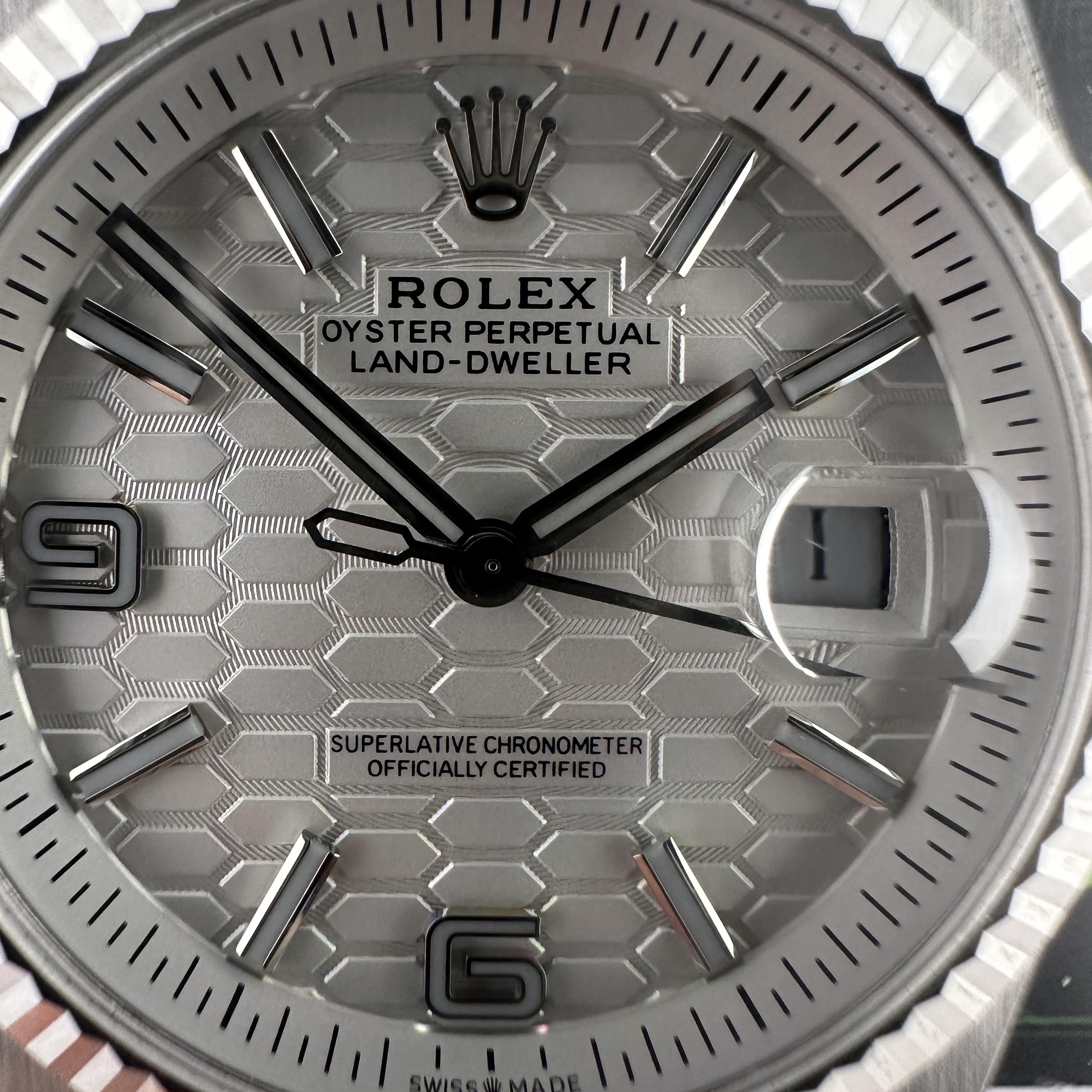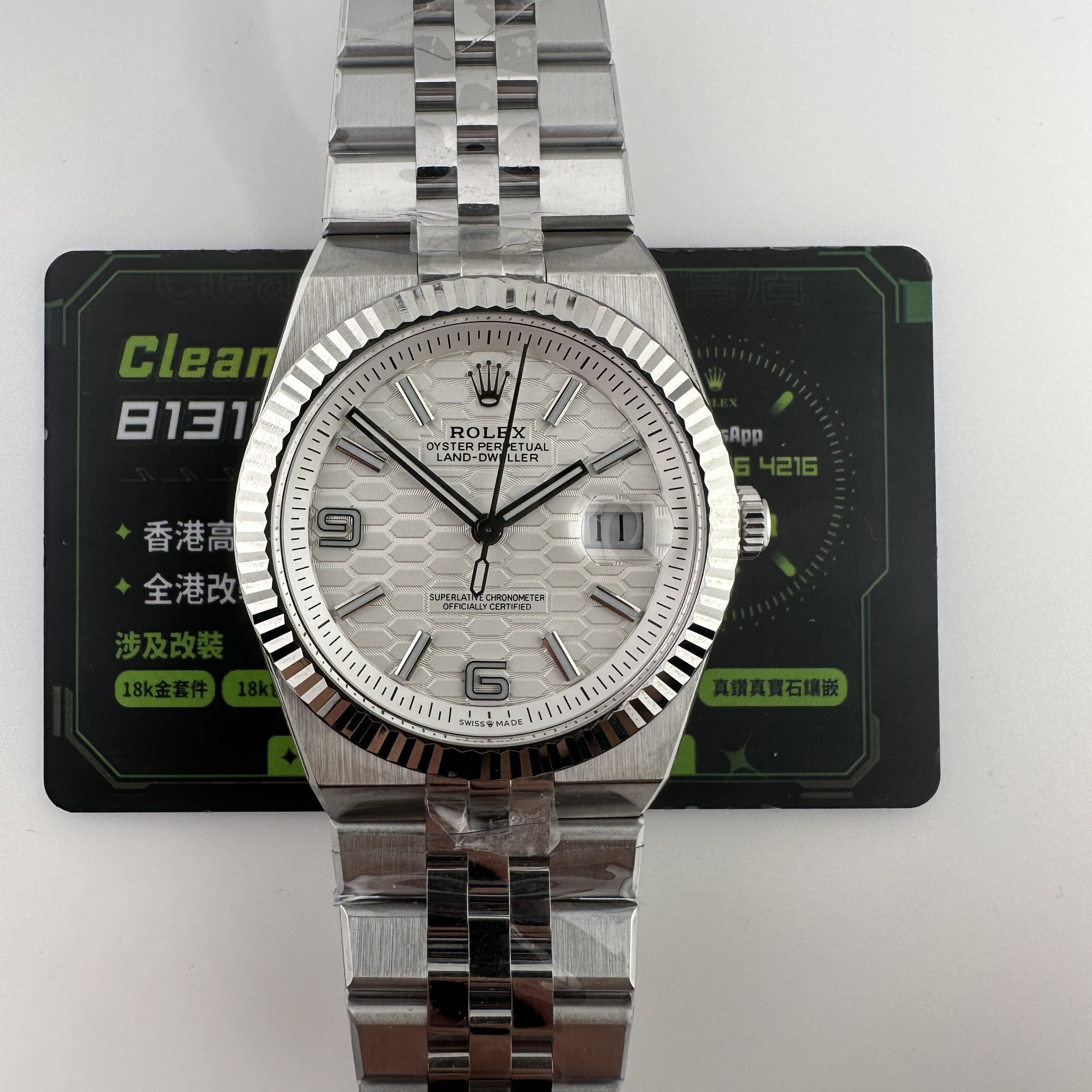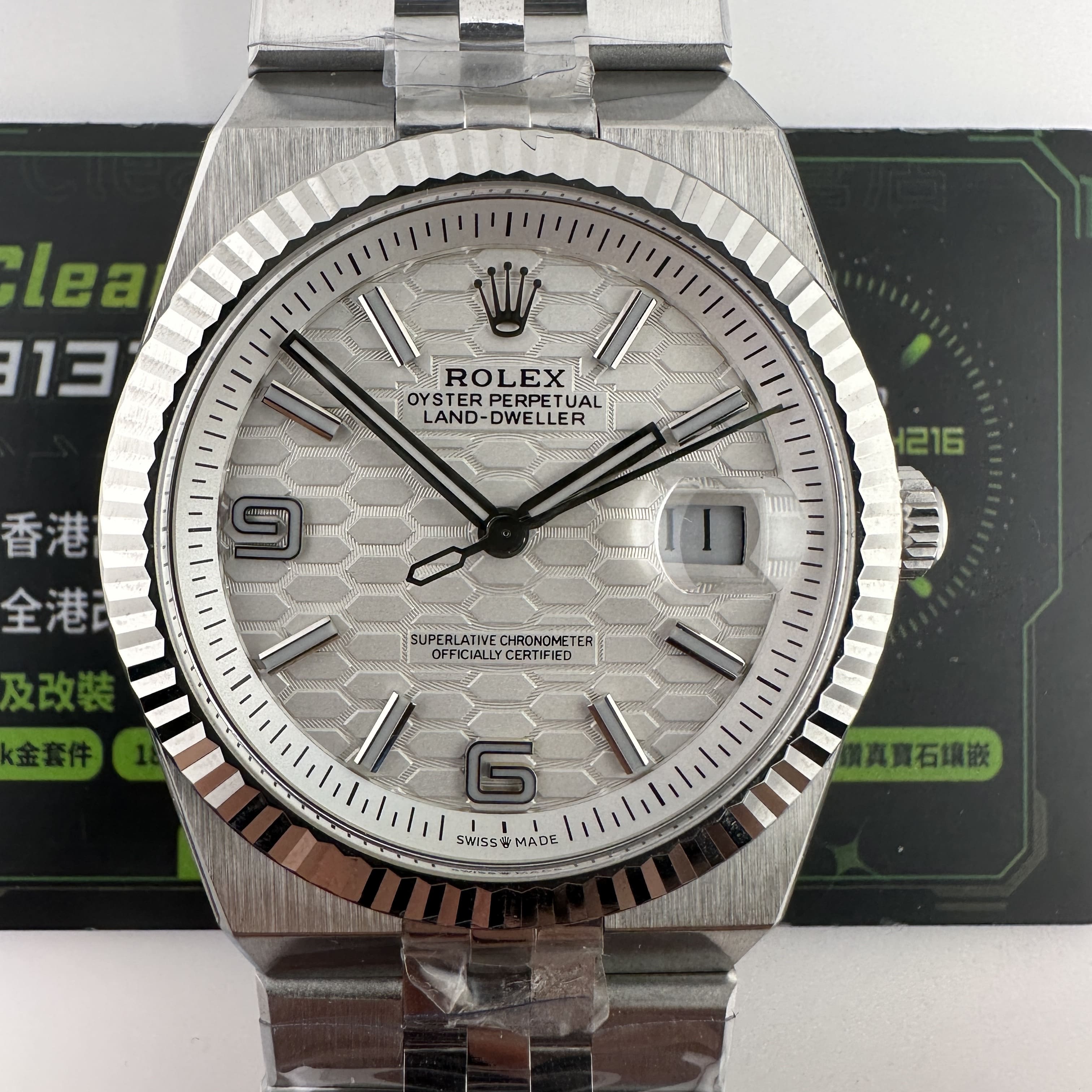 私人訂製廠高仿勞力士陸使型LAND-DWELLER系列m127334-0001,整錶尺寸40mm.該錶款式Rolex官方2025年4月份日內瓦鐘錶展中發佈的最新款腕錶,也是今年最重磅且熱門最高的錶款之一!40mm錶徑,這可能是勞力士新晉的鋼王之王.剛好私人訂製廠出了一批高仿勞力士陸使型腕錶,小編正好藉此機會拿到實物與拍攝相關細節與大家詳情解析到這隻高仿勞力士127334腕錶.目前腕錶圈的話題始終都離不開勞力士陸使型的價格走向以及未來十年中是否能夠成為勞力士下一代明星產品.