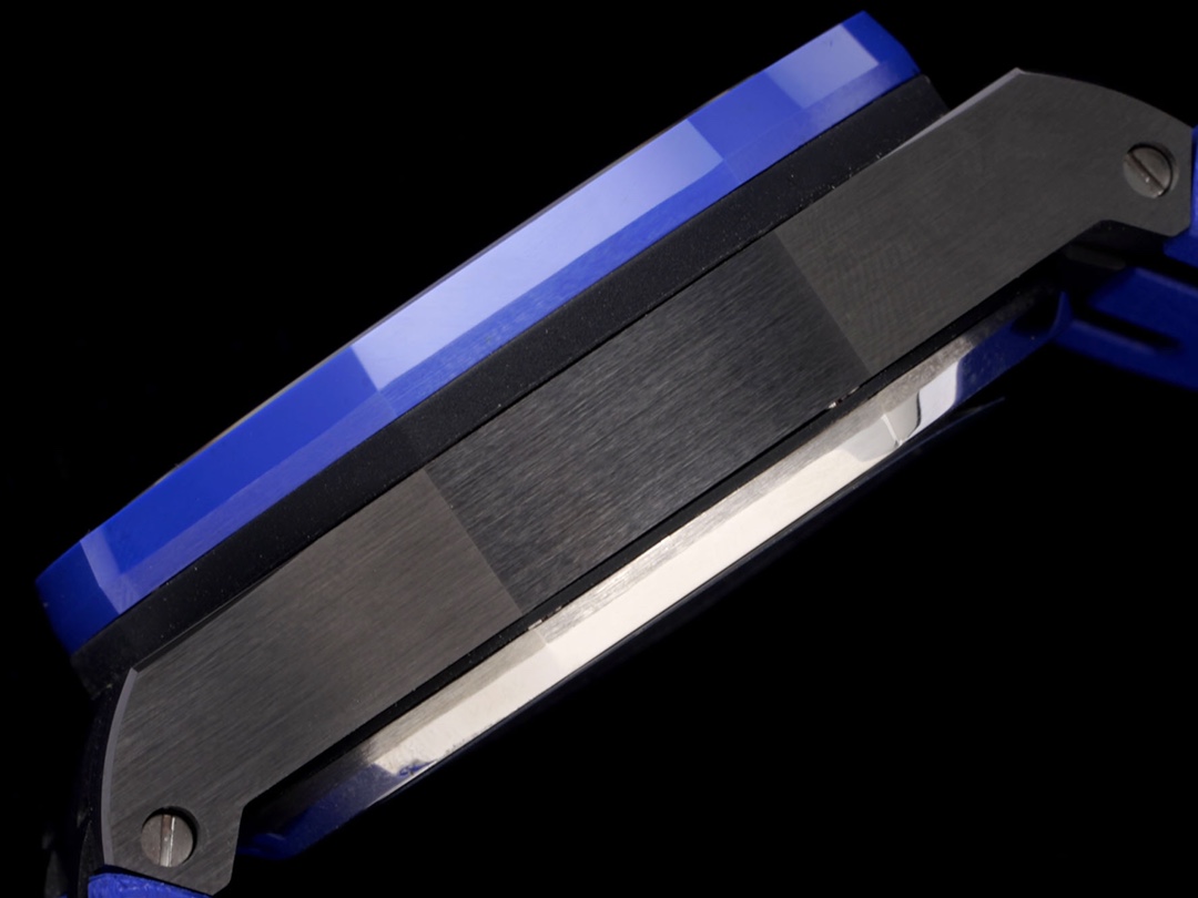 RS工廠引用全新的彩色陶瓷鍛造科技,錶殼與圈口的選料,不惜重本使用日本進口的氧化鋯,無需任何顏料,以超高的壓力與超高的溫度鍛造,形成超高密度的彩色陶瓷,再經過百裡挑一,確保每一個成品都與原版毫無色差,真正做到不懼任何口嗨者與鍵盤俠的雞蛋裡挑骨頭! CNC級別的打磨,將整一個錶殼的邊邊角角完美處理,即使陶瓷,也做到毫不割手。 圈口的拉絲,經過頂級的打磨科技,做到每一絲每一線都毫無斷續,每一顆六角螺絲都與錶框處在同一平面,拒絕一絲一毫的凸顯與凹陷,詮釋了何為頂級的複刻工藝! 錶盤以愛彼經典的大格紋為背景,一個個層次分明的方格排列,經過完美的打磨,將盡善盡美體現得淋漓盡致。 三個小錶盤凸顯於錶殼之上,六點比特跟九點比特的綠色和藍色錶針十分耀眼,十二點比特的小秒盤,每一個小圓圈都做到排列有序。 三點比特的行事曆錶盤,在藍寶石玻璃凹透鏡的作用下,TPE擴大效果與原版一般無二。 每一根大小錶針,無論從各個角度來看都沒有出現毛刺現象,這一點解决了大部分強迫症錶友一直存在的煩惱! 刻度與錶針中間部位都採用瑞士進口夜光粉,每一個個體都做到手工填充,均勻飽滿度是機器填充遠遠比擬不了的,亮度與發光顏色與原版幾乎一致! 機芯方面採用7750改3126的計時機芯,十二比特的小秒,六點比特和九點比特的12小時計時與30分鐘計時,完美的還原了原版的所有功能,經過RS團隊的精密打磨,大大提升了7750基礎機芯的穩定性,緩解了一直以來計時機芯款式空有其錶的尷尬現象! 做到無可挑剔,堪稱天花板級別,歡迎廣大錶友品鑒!