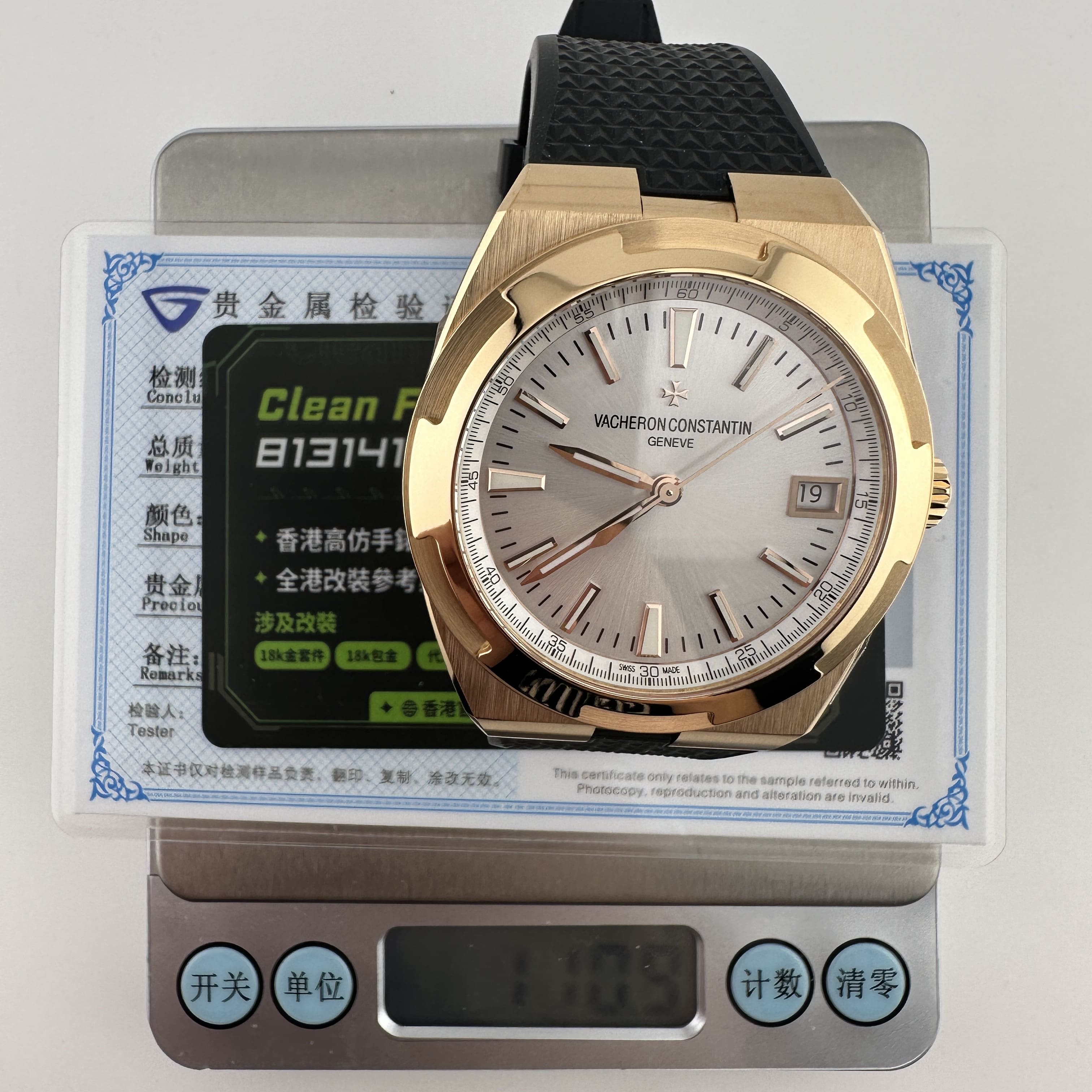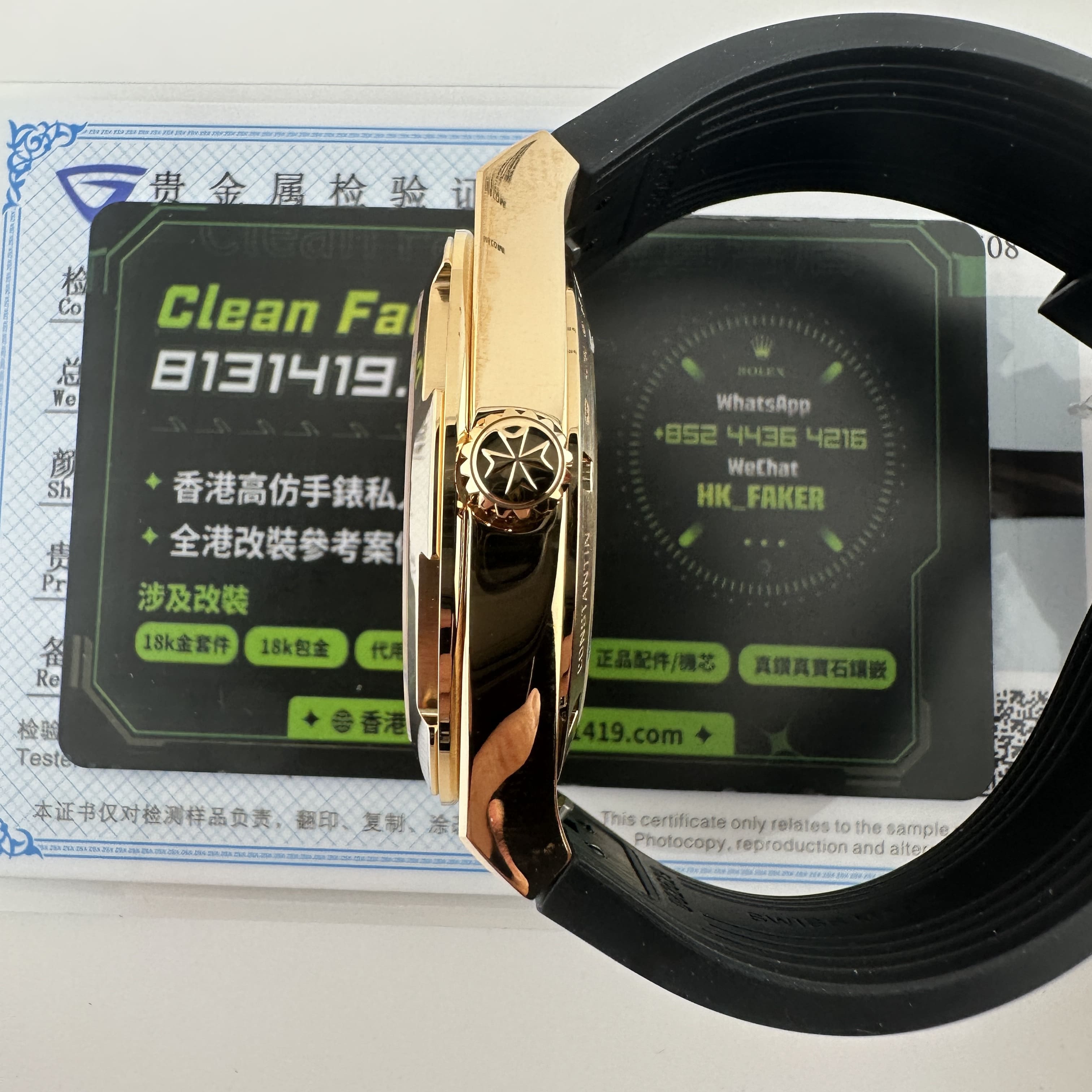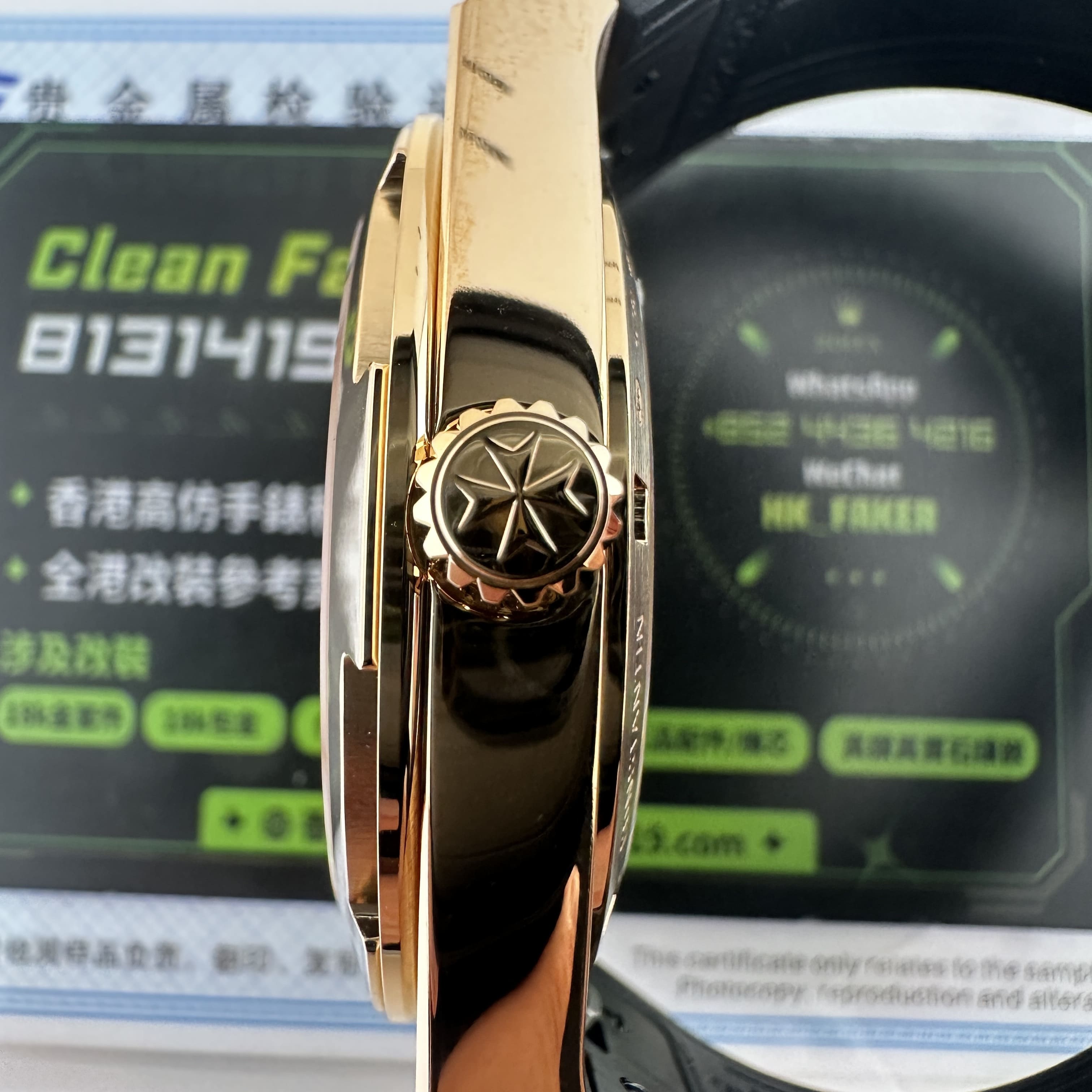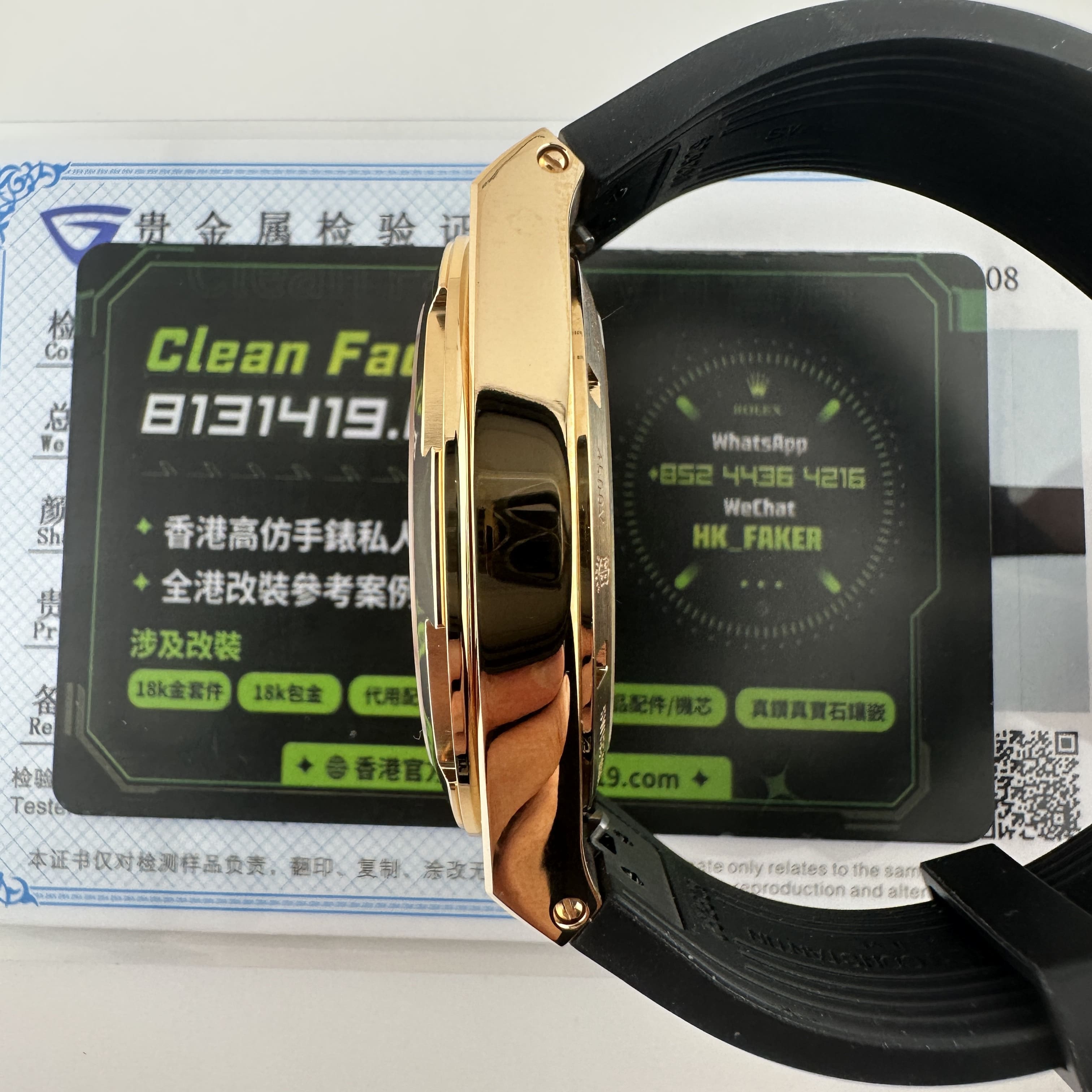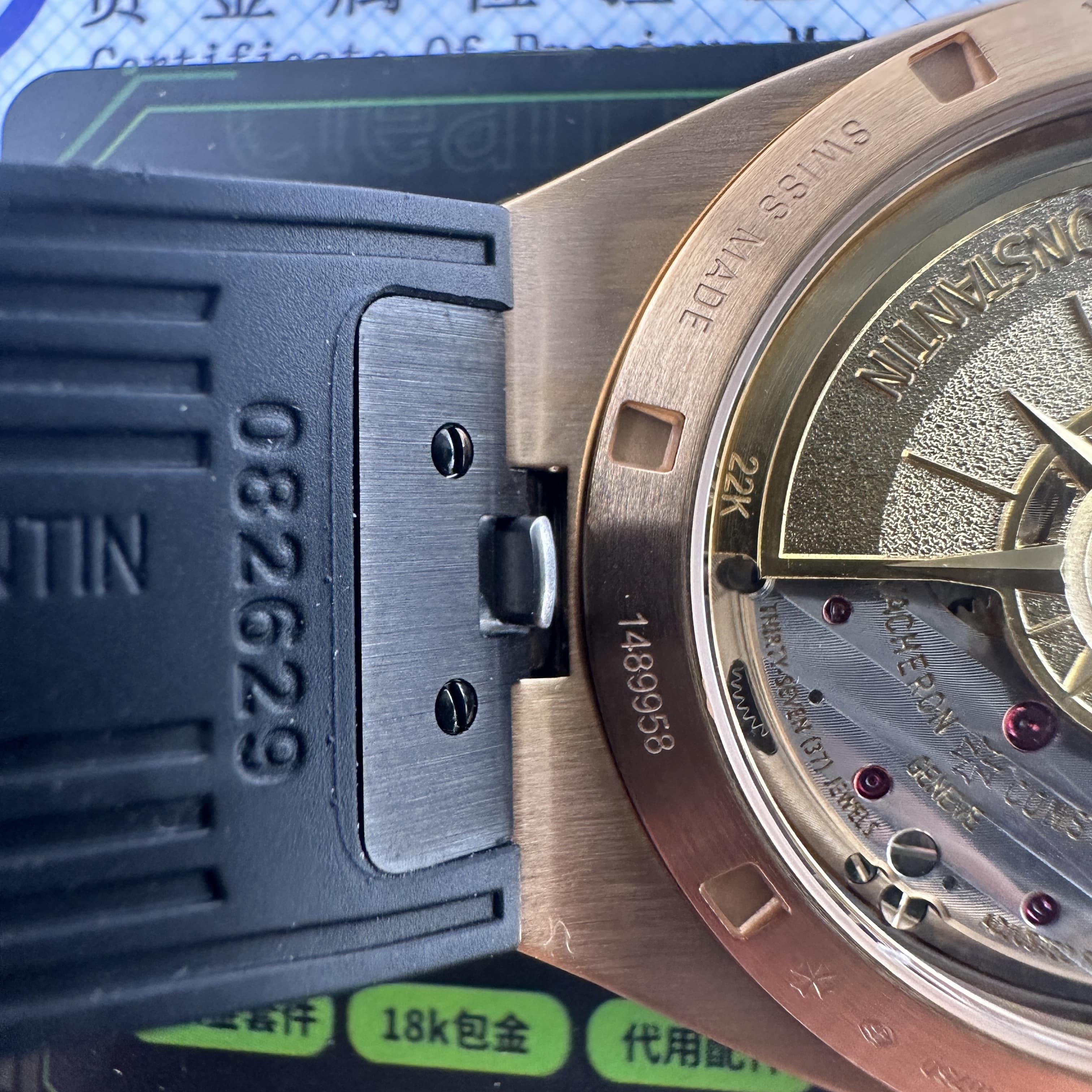 私人訂製MKS廠江詩丹頓縱橫四海系列4500V玫瑰金款升級18K包金案例.高仿市面上有很多K金復刻錶涉及到18K包金升級,這意味著傳統電鍍金工藝已經無法滿足錶友們針對高端腕錶的品質需求.整錶尺寸41mm,厚薄度11mm,同步原裝正品一致.外觀玫瑰金錶殼結構搭配膠帶,商務與運動膠帶的匹配.MKS廠此次推出高仿江詩丹頓縱橫四海4500V屬於是全新製作,這款私人訂製4500V包金款式取自原MKS廠進行改裝.