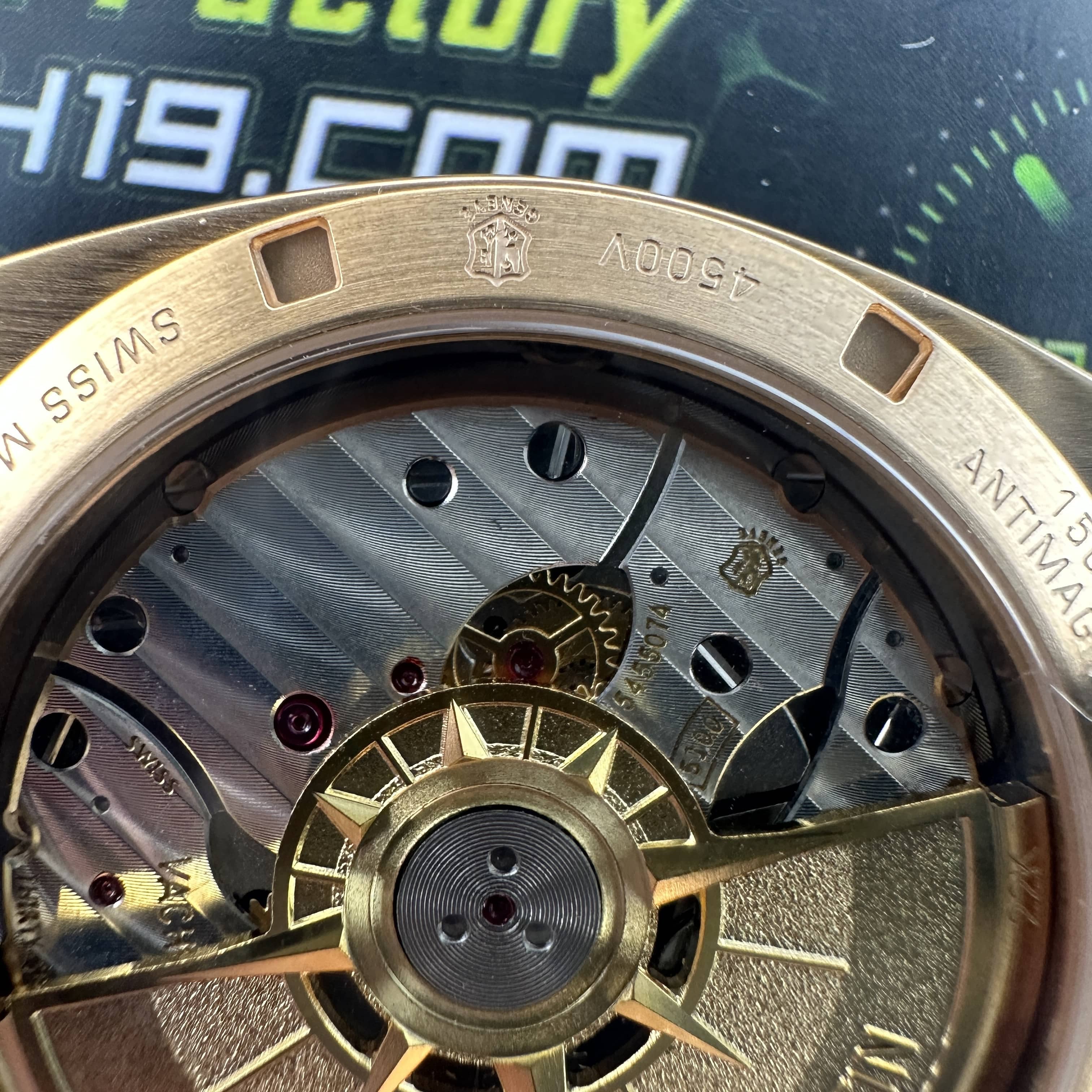 高仿江詩丹頓4500改裝升級18K包金最大的用途和效果就是針對傳統"電鍍金"對比原裝正品存在的色差以及沒有光澤度,這對於喜歡K金復刻錶的消費者而言是又愛又恨,畢竟電鍍金復刻程度達不到百分百,因此部分錶友會根據自己喜歡的錶款進行18K包金.主要的效果就是改裝色差,做到百分之99同步原裝正品一致的無色差.包括錶殼拉絲部分更加明顯,MKS廠4500圈口拋光角度更加亮眼,結合諸多優點,18K包金升級宣誓了當前復刻工藝的良好品質,但明確與大家解析的是18K包金不增加重量!