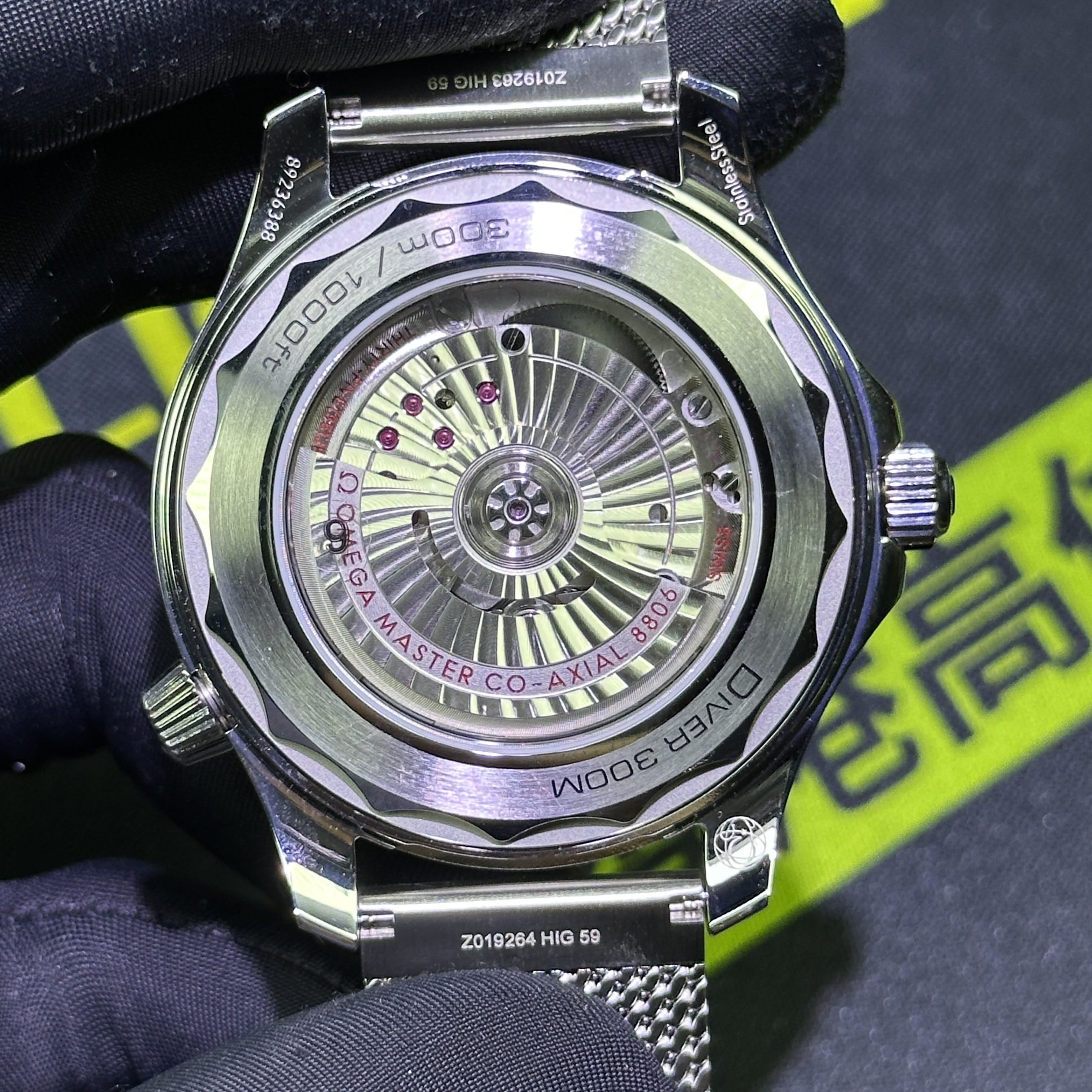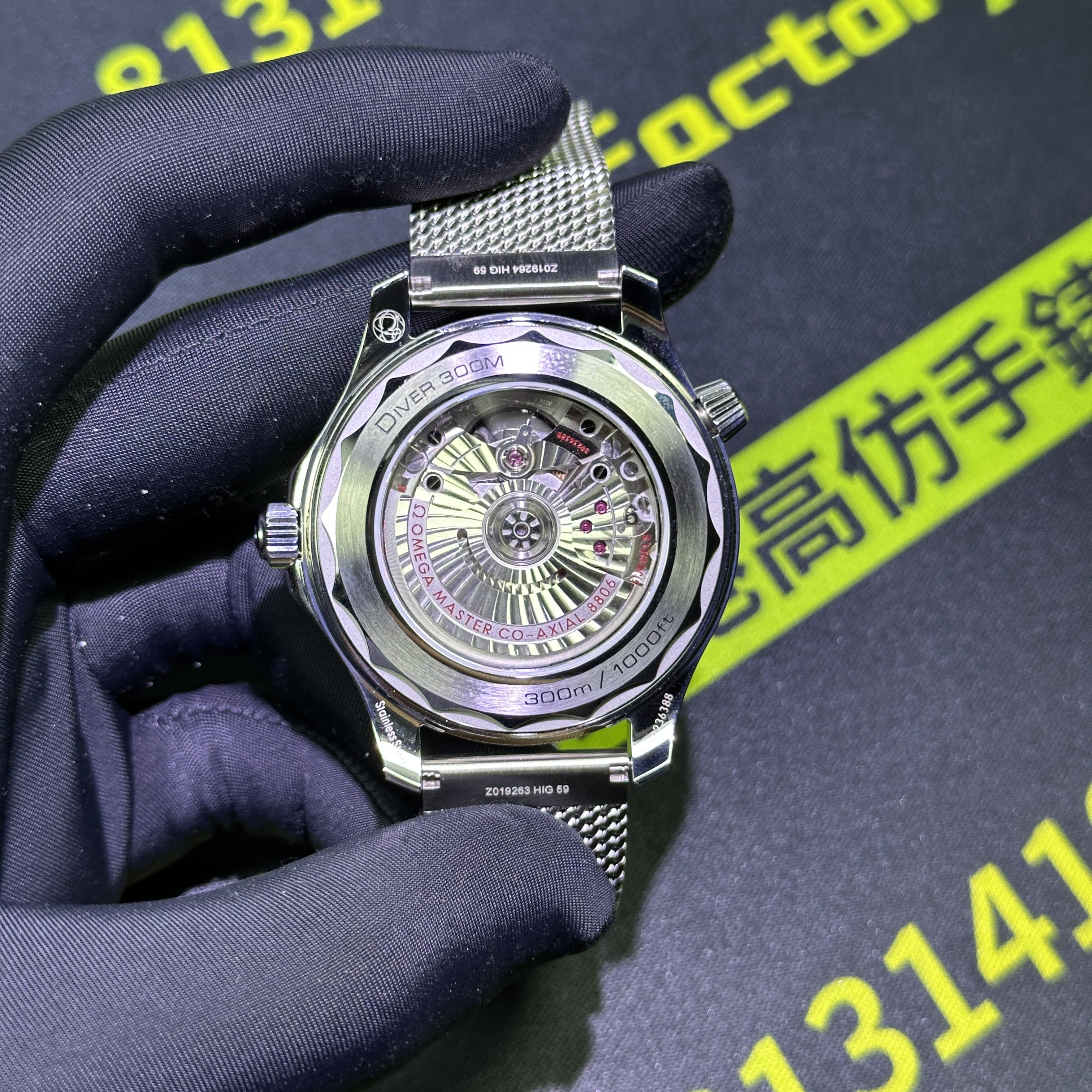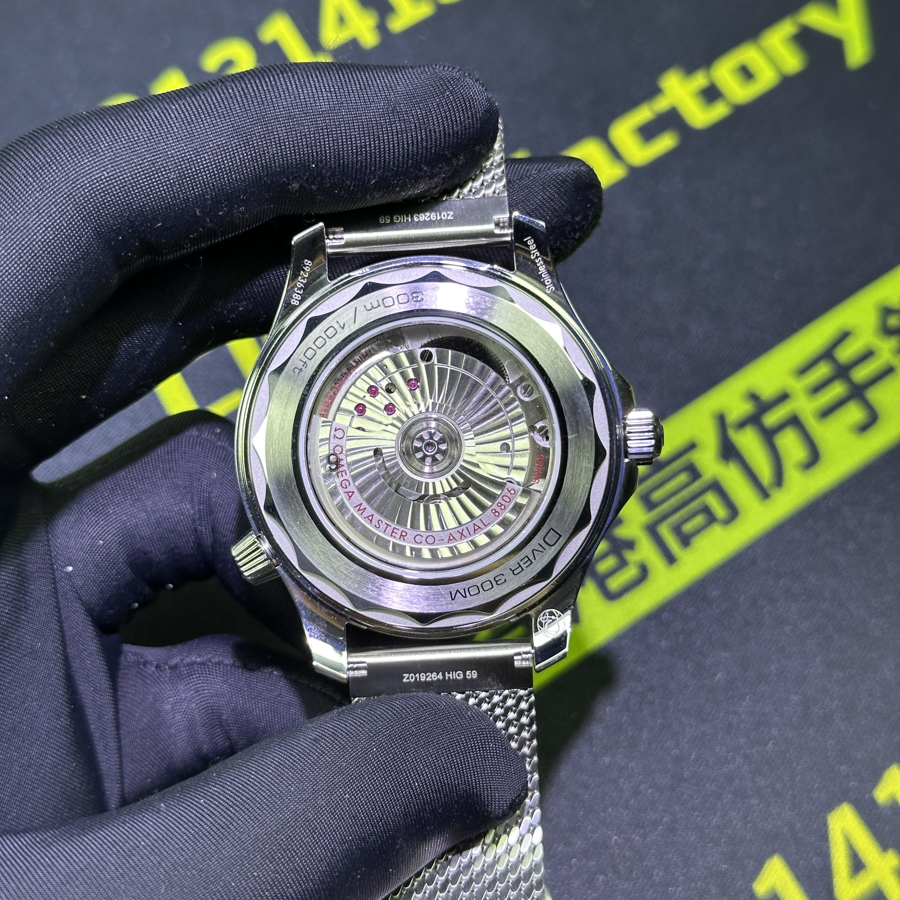 整錶尺寸42mm,VS廠針對Omega007系列錶款的研發也是當前高仿市面上數一數二的頂級廠家!主要原因是機芯配置部分,VS廠搭載了同步專櫃版本1:1復刻8806機芯,背透角度所呈現的陀片打磨以及拉絲非常具有質感,包括刻度的甲板字體清晰度高,沒有瑕疵.而盤面以及圈口部分高仿手錶Omega42mm尺寸版本符合原版正品的品質需求,無色差的陶瓷圈口和黑色盤面