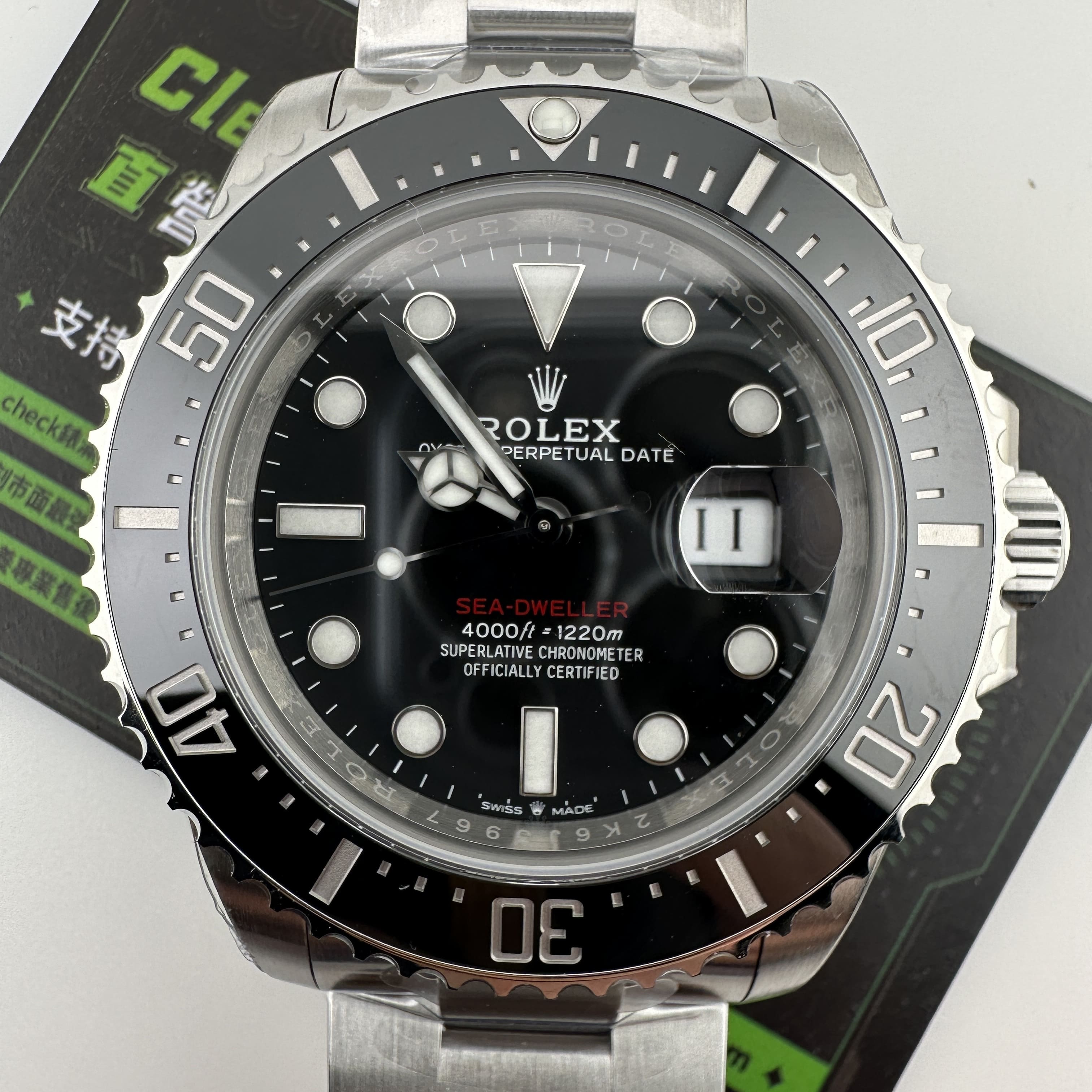 VS廠這一隻Sea-Dweller使用了904L精鋼為主要材質打造還原基礎殼型,大尺寸和厚度相加的情況下,VS廠勞力士更是以頂級工藝做到基本的拋光和拉絲做工.陶瓷圈口圓潤鍍膜逆時針旋轉不卡頓無生澀的瑕疵,圈口邊緣狗牙尺紋圓角打磨不割手,夜明珠部分以中間居心呈現透亮色澤.黑面錶盤正常刻度了圓點與倒三角,金屬包邊和夜光填充的效果.VS廠單紅鬼王印刷了相關Rolex和Sea-Dweller等等字面,清晰的角度查看到無毛邊毛刺的工藝呈現.指針與中軸打磨細膩感突出,鏤空凸起的狀態無瑕疵.VS廠香港直營店專屬頂級品質,高端服務與你同在.