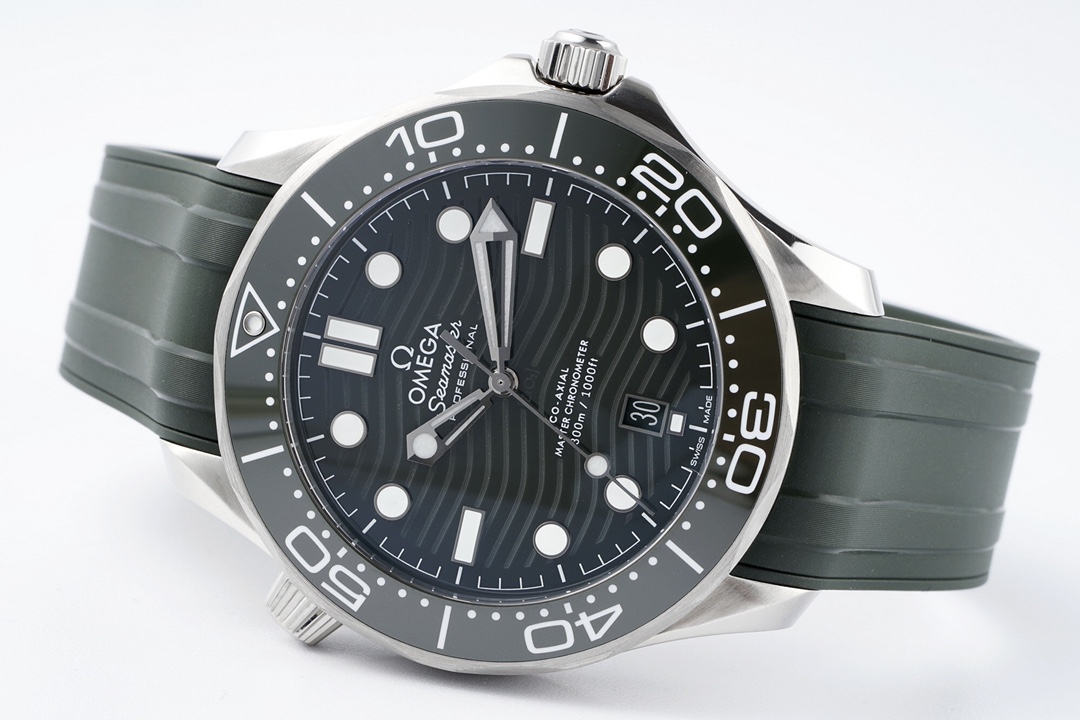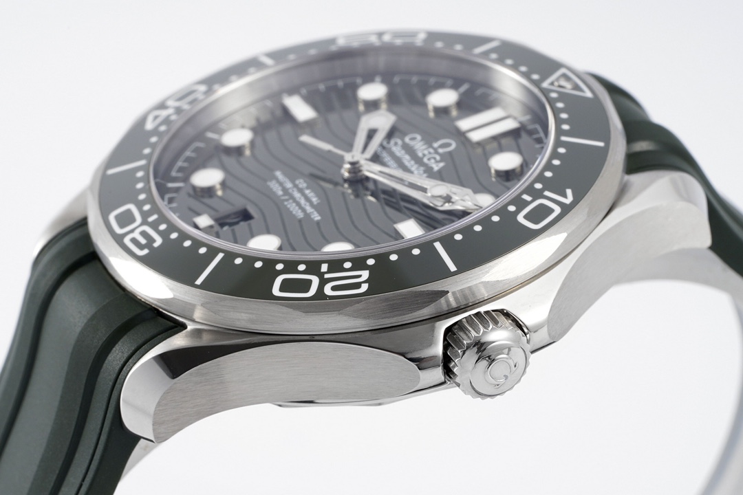 ZF 2022新作! 以全新OMEGA 8800一體機芯再造經典! 歐美茄海馬300米。 錶徑42MM,弧拱形雙面防反光藍寶石玻璃錶鏡,錶盤採用拋光陶瓷製成,並用雷射攜刻了波紋圖案,鏤空指針與浮雕刻度經過鍍銠處理,並且覆有SUPER-LumiNova夜光塗層。 錶圈同樣採用陶瓷材質,飾以珐琅潜水刻度。 搭載ZF獨家研發的8800同軸機芯,整體機芯經過日內瓦波紋的打磨裝潢,陶瓷滾珠軸承,雙向自動上鏈的系統,矽遊絲無卡度遊絲擺輪帶來15000高斯防磁。 動力儲存60個小時。 最重要的是ZF獨家配寘了第三代八爪魚同軸擒縱,(通過肉眼可看,黑色擺輪與正品一致為“旋渦型”.不同於市面其他版本)。 ZF出品,當之無愧封頂。