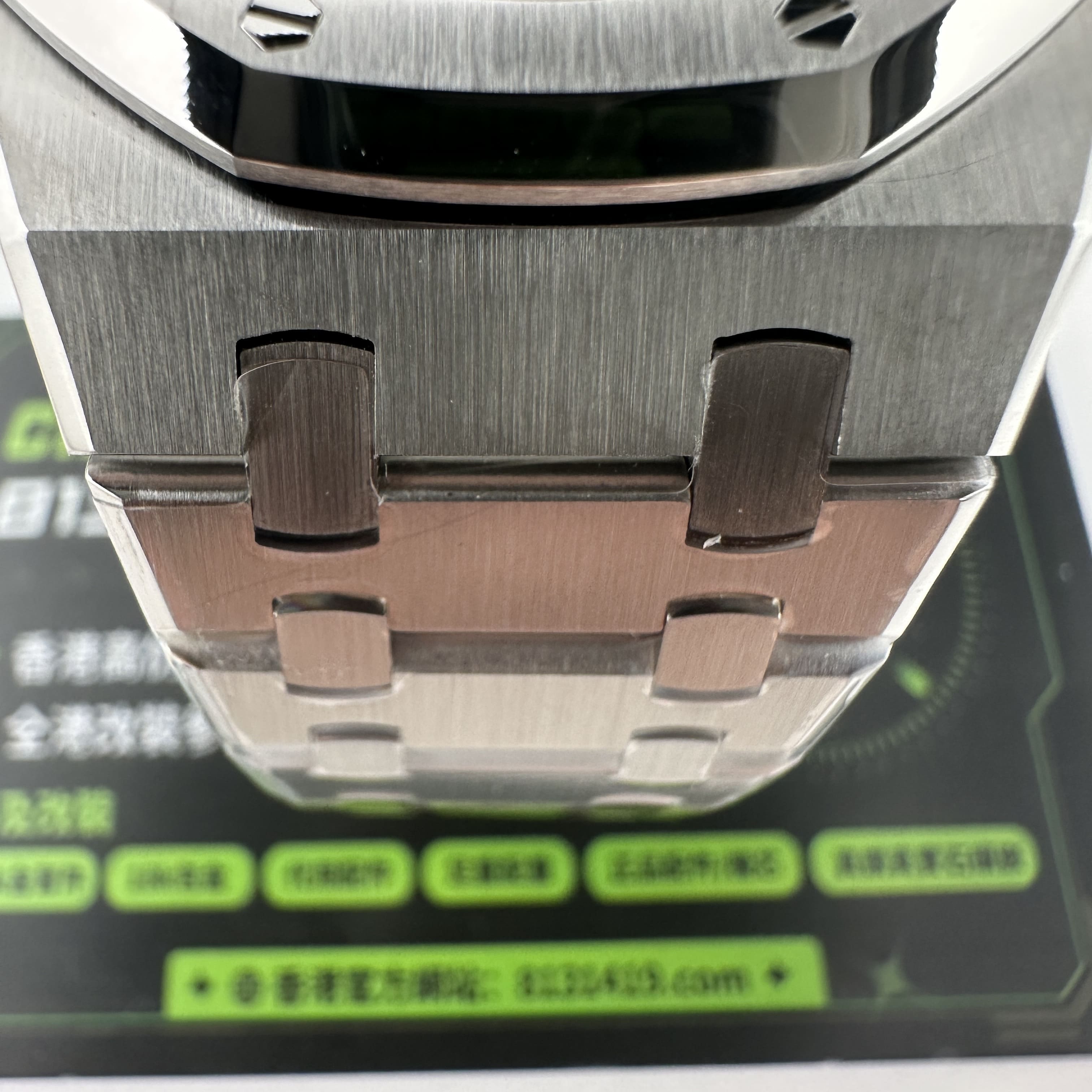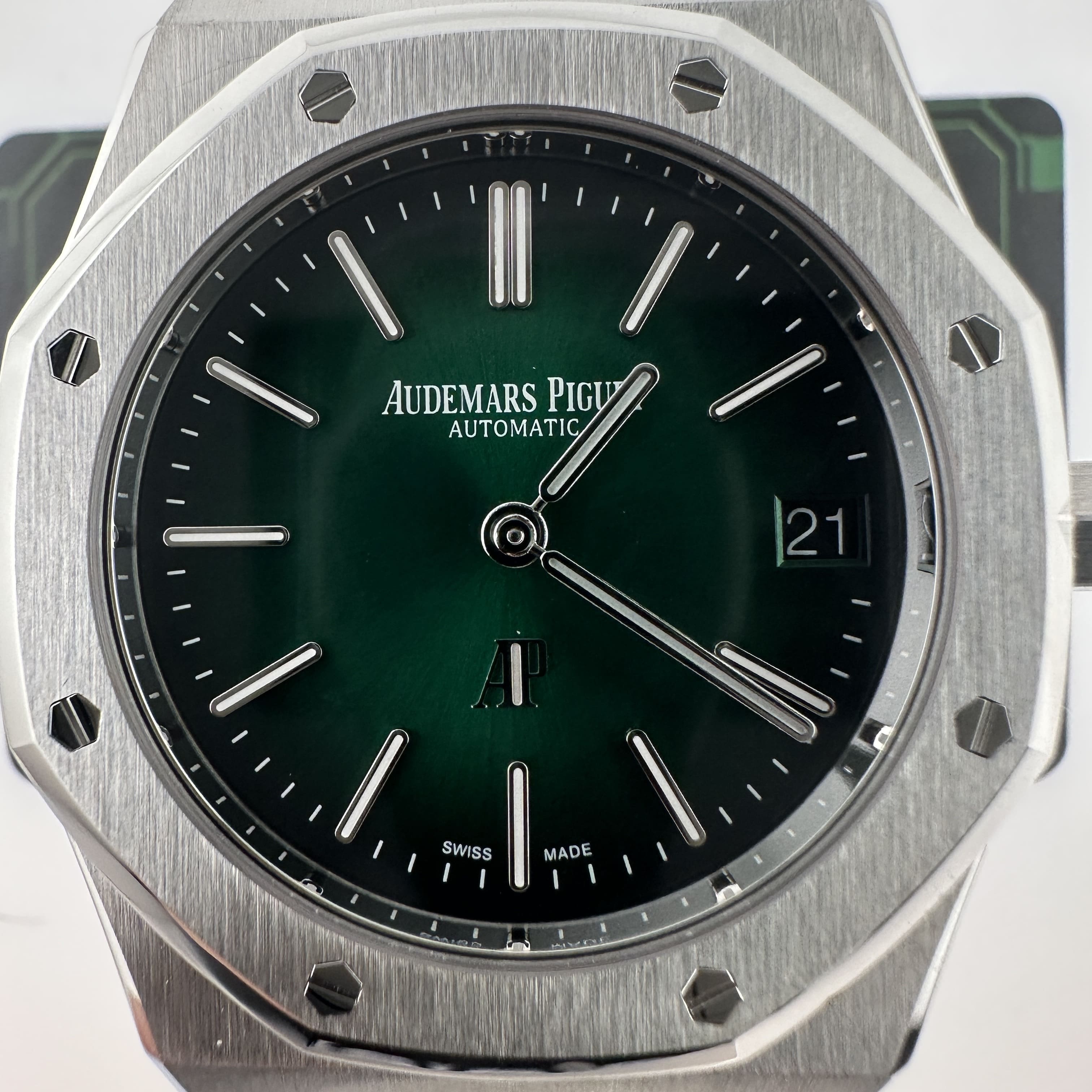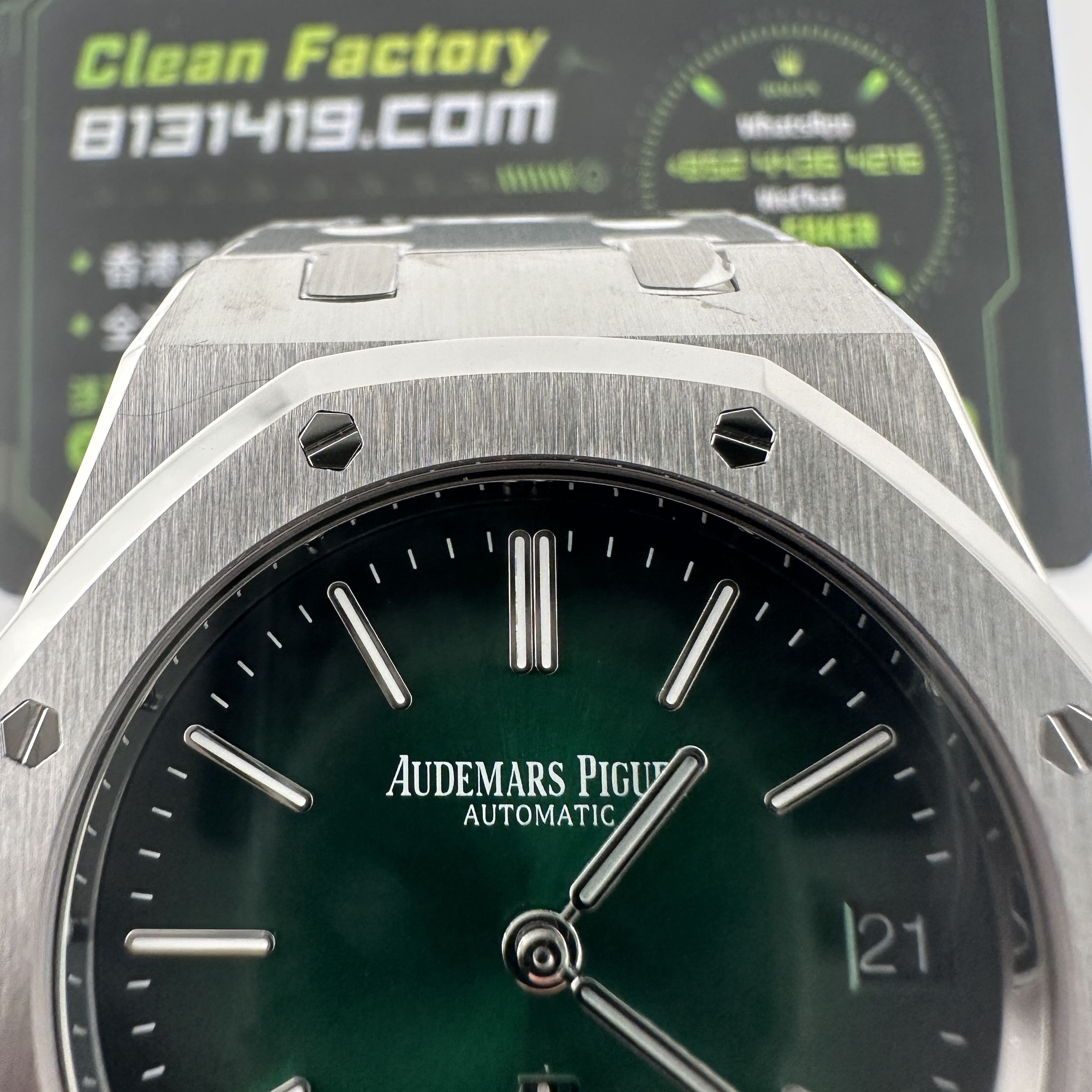 大家可以通過實物實拍過程中了解到ZF廠出品的16202極光綠錶盤其實整體的色差不大,但對比正版肯定存在細微的色差,就以綠色錶盤為例,ZF廠愛彼16202沒有正版的閃度以及放射紋稍微沒有做到那麼足.不過ZF廠又是高仿市面上目前能夠做到最接近原版盤面的廠家.再者是細節處理中,ZF廠已經做到極致還原狀態,錶盤的印刷字面,以及時間刻度條丁部分都是做到接近原版品質.由於這款高仿手錶AP並未涉及到太多太複雜的功能和設計,因此也算是合格的復刻錶之一