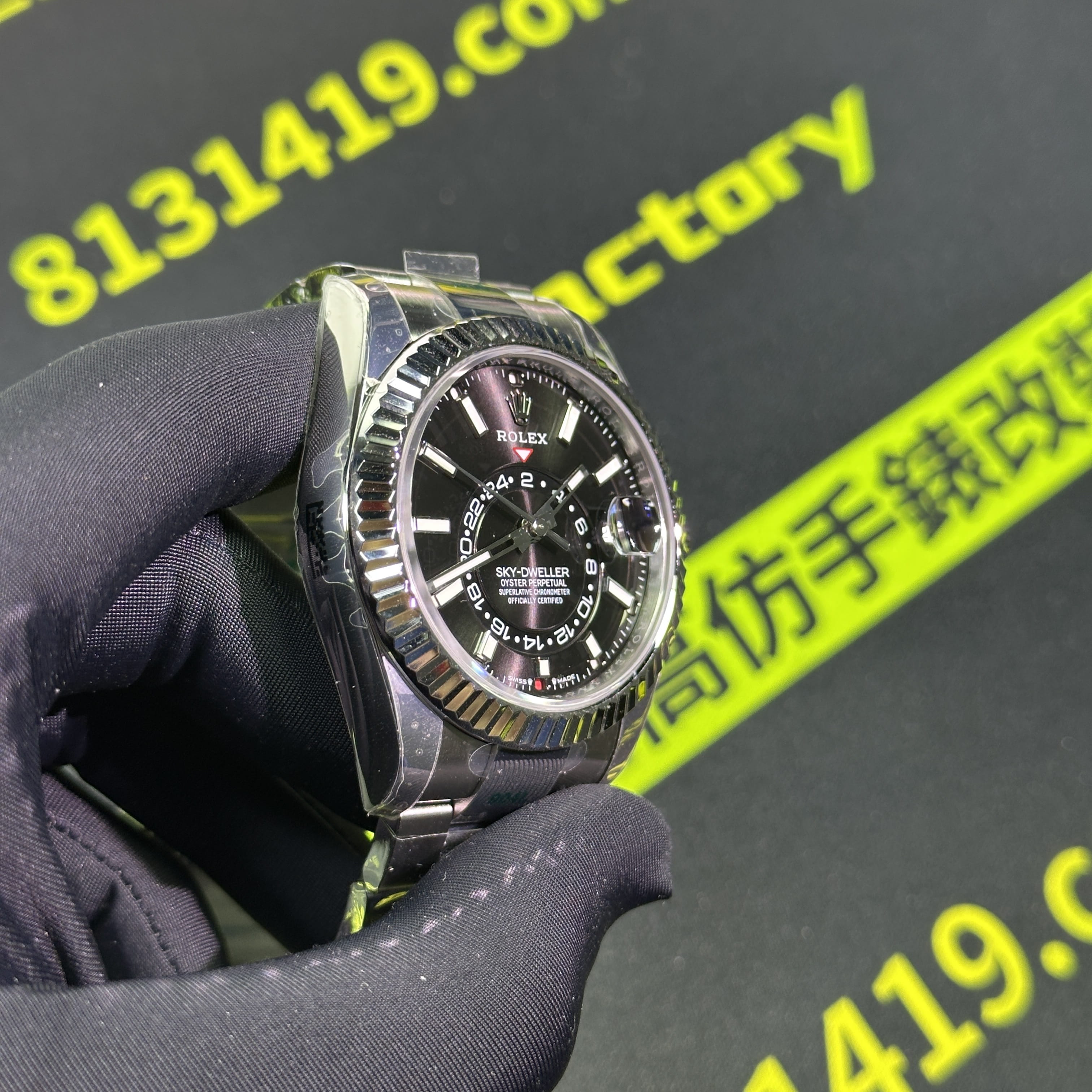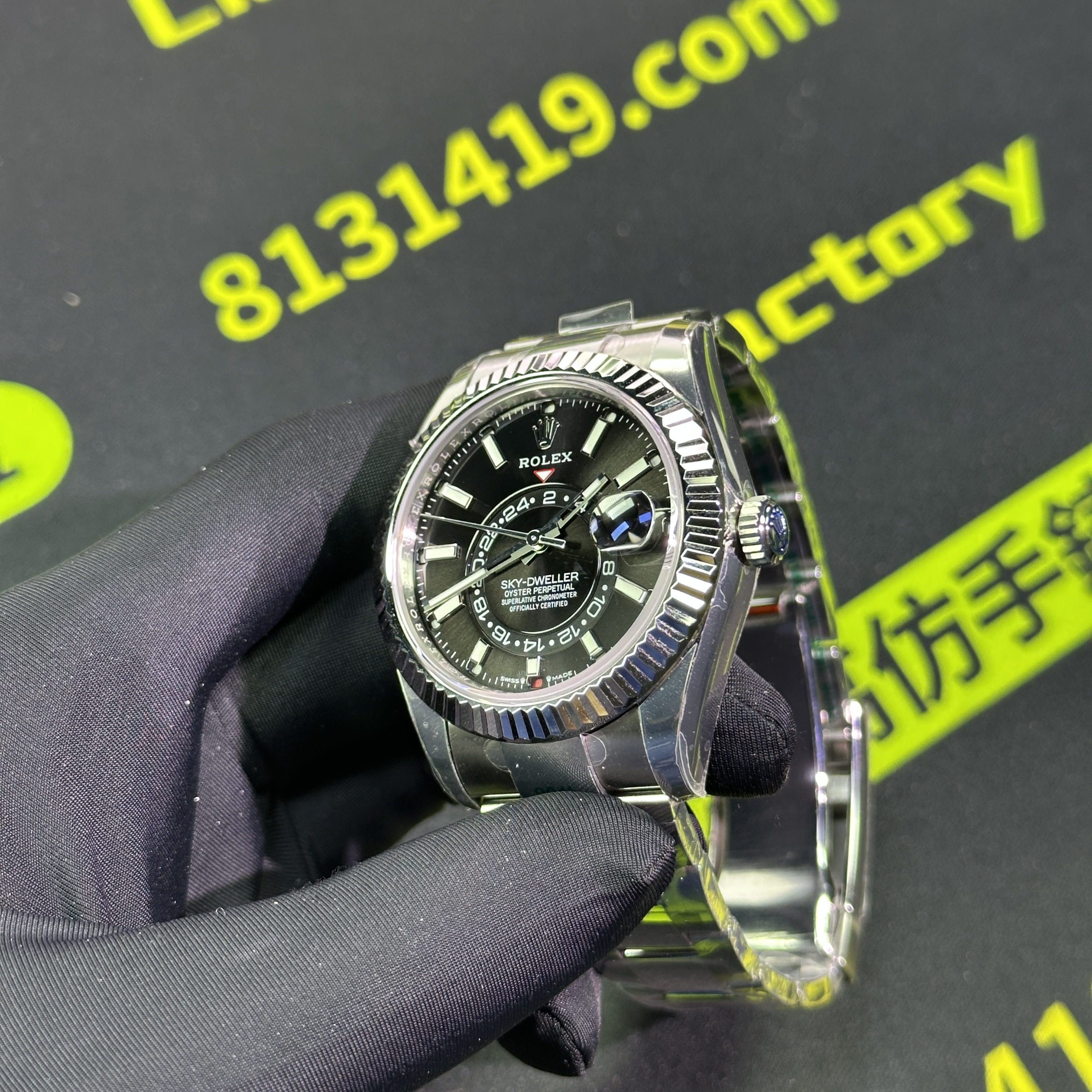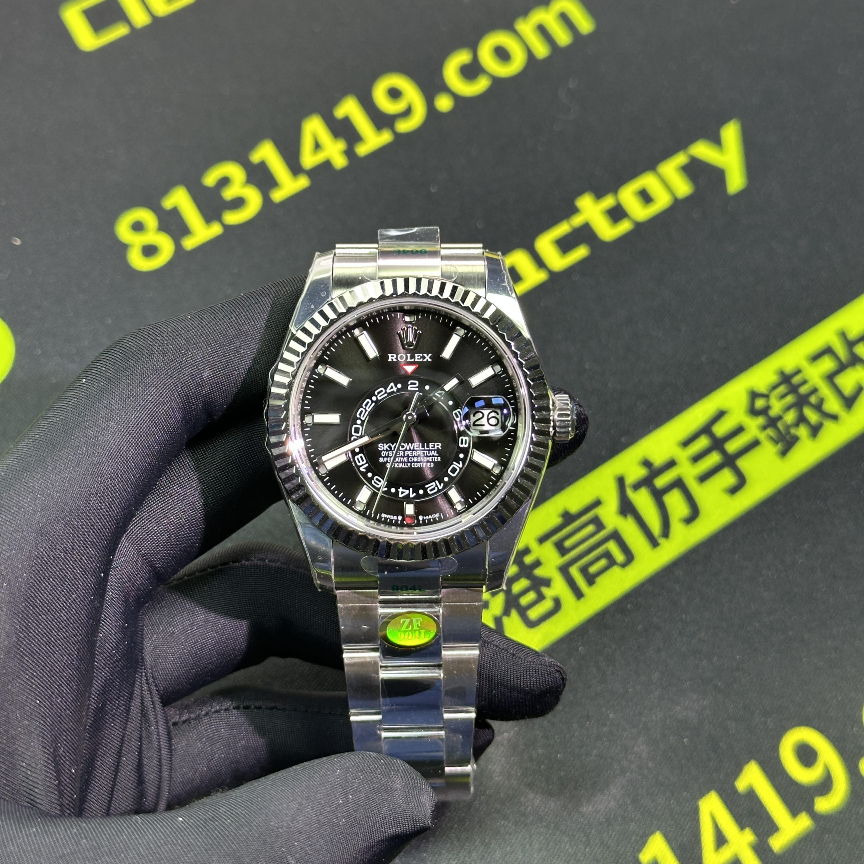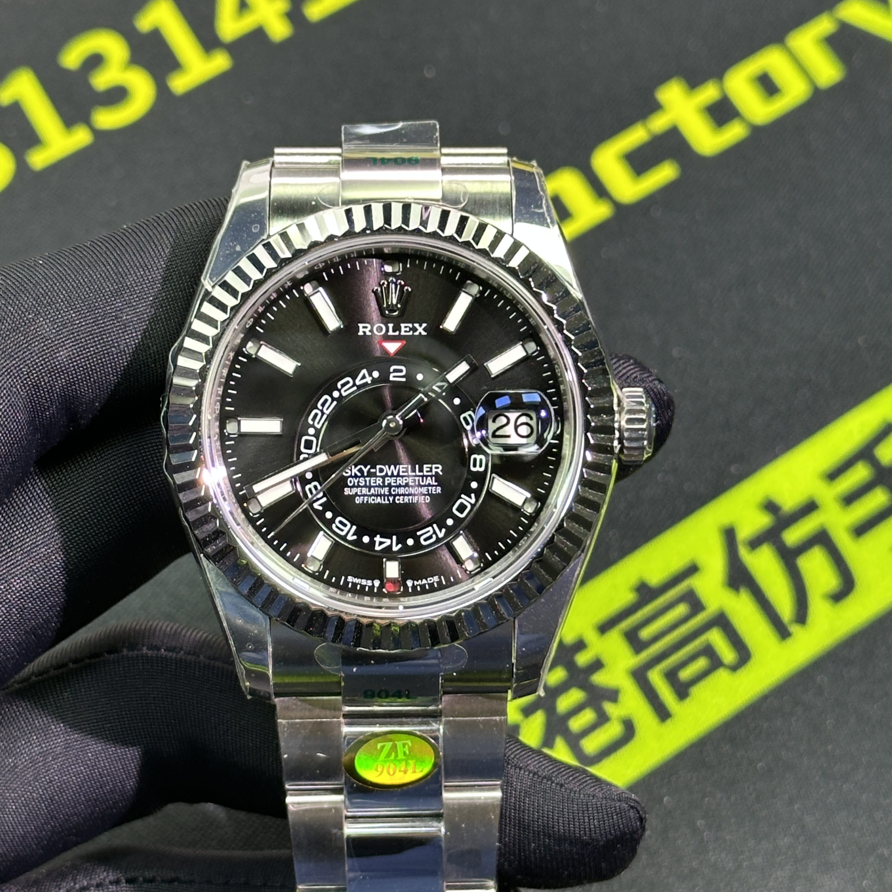ZF廠官網推出的高仿勞力士Sky-Walker系列m336934-0007天行者黑盤,高仿勞力士天行者系列錶款整體尺寸規格是同步原裝正品一致,42mm腕錶直徑,經典的勞力士狗牙圈口搭配蠔式錶殼套件.為什麼建議大家選擇ZF廠Rolex Sky-Walker的主要原因是ZF廠在版本迭戈換代的過程中進一步提升該系列錶款的缺陷,做到此前不對版的細節處理進行修復.其次是ZF廠Sky-Walker錶款還推出了V2版本,包括一些K金版本的天行者也有配重版本,無論是金帶版本還是膠帶版本,ZF廠都有做相關的配重升級方案!包括機芯方面也是.