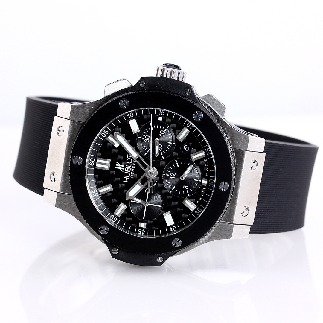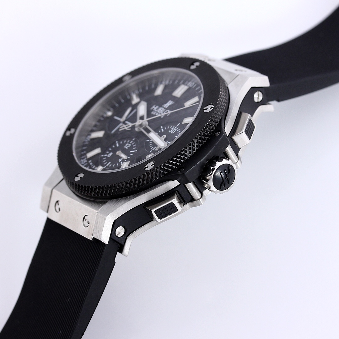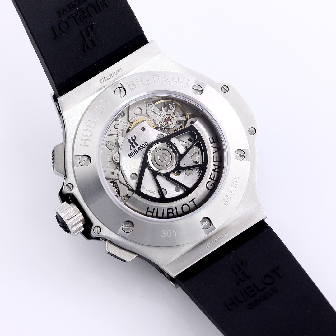 宇舶HUBLOT全新陞級恒寶BIG BANG 4100原裝機芯301.PX.130.RX雙蔔藍寶石玻璃,44mm原版開模最强副版,原裝4100多功能計時機芯,機芯動力儲備:42小時擺幅振頻28800,原裝折疊錶扣,進口橡膠錶帶,100米深度防水。 方鑽圈,圓鑽圈,陶瓷圏,滿鑽殼隨君挑選。 簡約幹練,低調奢華,雅致而不張揚,清新而耐看。 佩戴舒適,與腕表錶殼相互映對,給人唯美的享受。