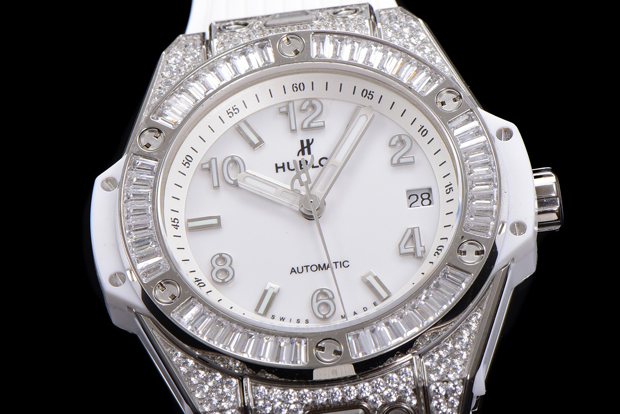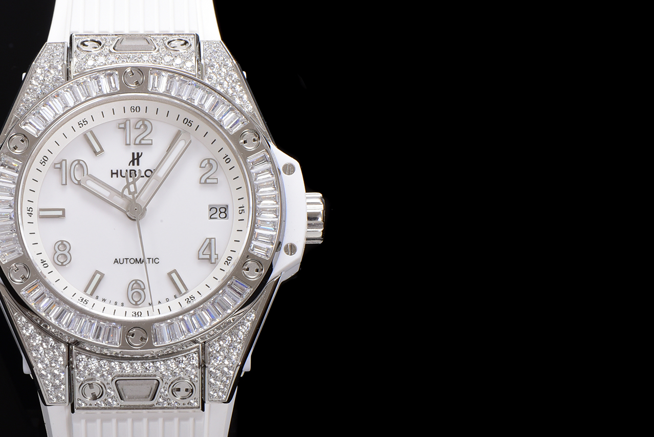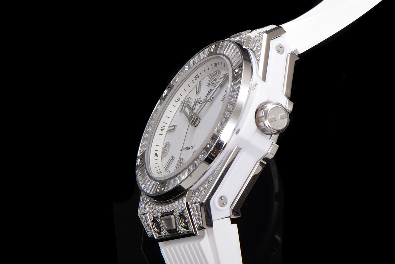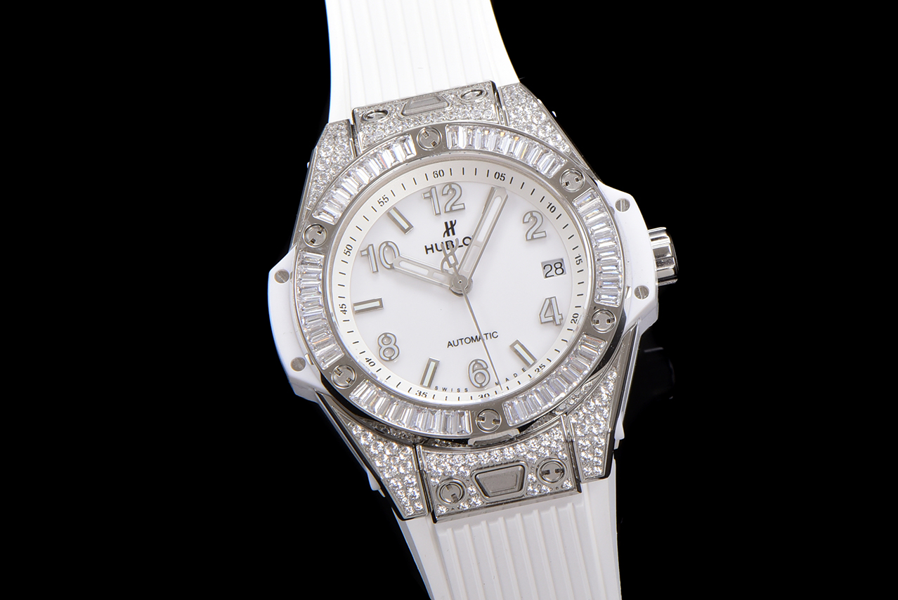 HUBLOT宇舶錶擅長打破傳統疆界,將不同材質和諧融合於一體,Big Bang“一鍵式”腕表將時計與珠寶的精髓相融合,以腕表點亮時尚造型的自由感。 Big Bang“一鍵式”39毫米精鋼白色密鑲腕表沿襲了宇舶錶標誌性Big Bang腕表的鮮明個性,綻放敢於打破常規的矚目風采。 腕表採用固定錶圈,鑲嵌160顆璀璨美鑽,搭載HUB1710自動上鏈機芯,於腕間奏響時間韻律。 純粹本真–表達無畏敢愛的真我!!! 男士腕表