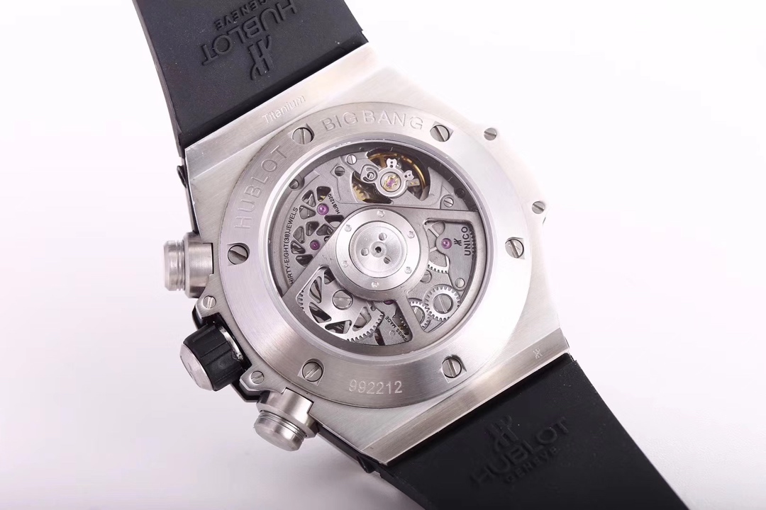 宇舶HUBLOT——英勇無畏,拳拳出擊,簡稱“HUB”“恒寶”, BigBang大爆炸元素資料計時碼表v2版❶錶殼採用進口鈦金屬材料設計感爆炸❷搭載7750改“HUB1242” 自動機芯計時瞬啟與一鍵飛返完美還原原裝功能二次增重自動擺坨達到更穩定的走時和超低返修率❸錶帶採用天然橡樹橡膠錶帶超强防水柔軟舒適❹錶鏡採用天然藍寶石玻璃耐磨耐刮通透零瑕疵作為一個年輕的品牌宇舶以張揚的個性和獨特的設計在高端製造下重抹一筆青春活力將與大家 一同感受年輕的自由!!!