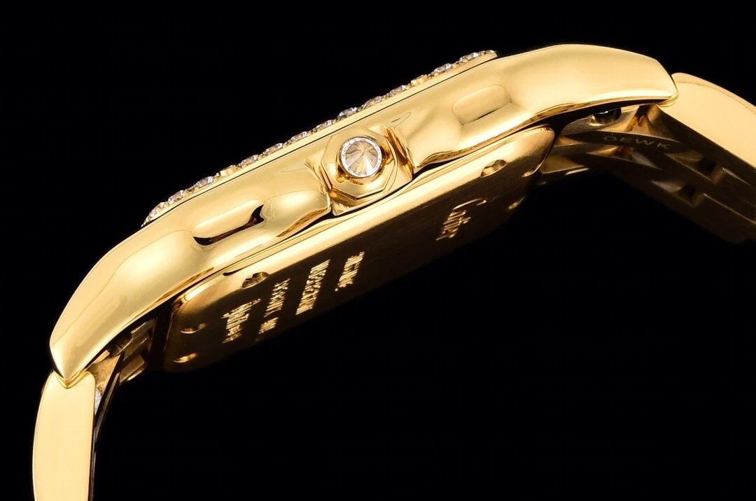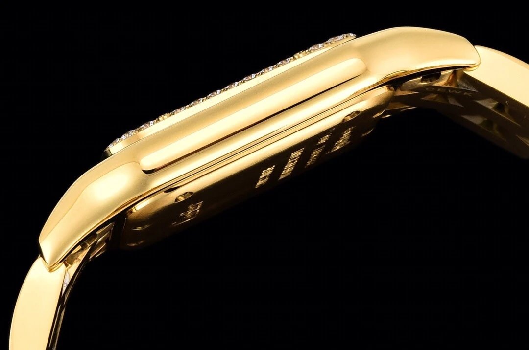 GF工廠以精湛技藝,原裝開模,打造出與正品無異的精美流線表耳,與表殼一體成型。搭載瑞士朗達石英機芯,316L精鋼殼套,尺寸:27 x 37毫米,厚度:6毫米,表冠鑲嵌一顆合成藍色尖晶石,鍍銀錶盤,劍形藍鋼指針,100%三度防水。搭配專櫃旅行包裝物料。