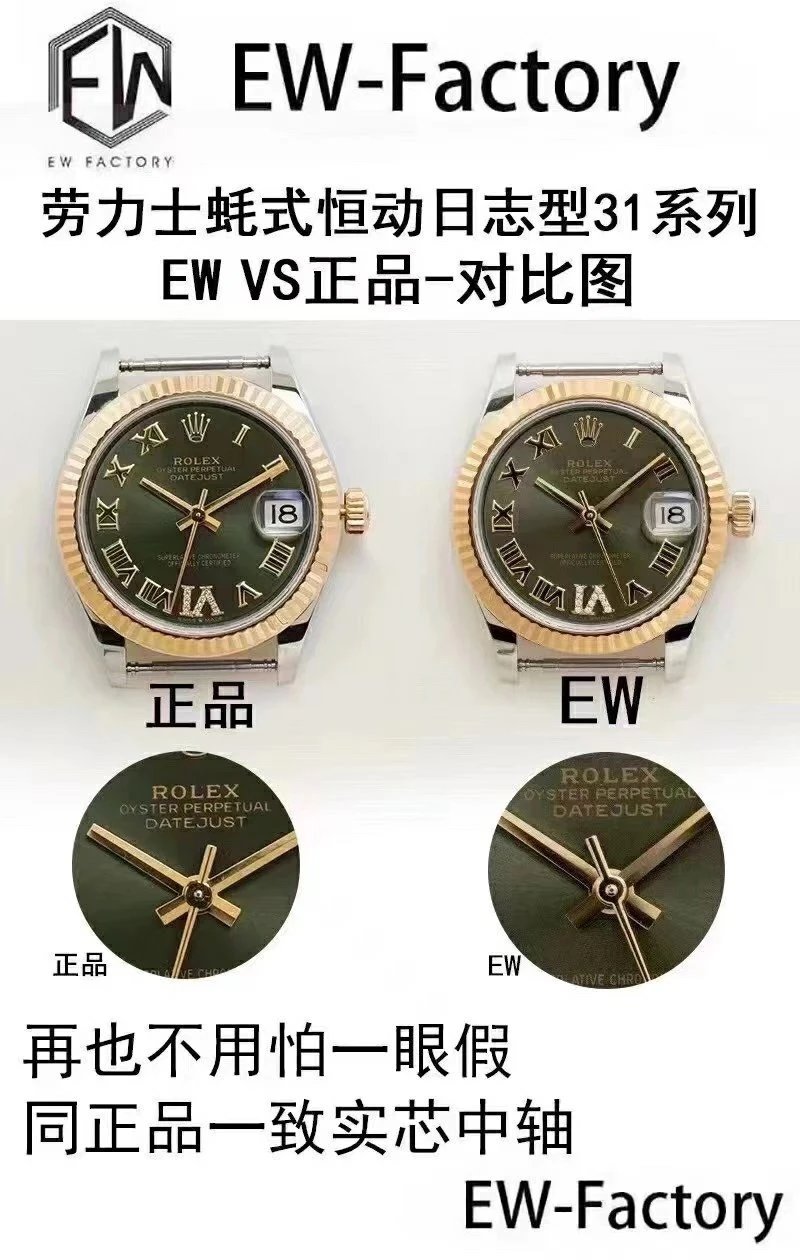EW複刻 勞力士蠔式恒動 日誌31mm頂級版本實心中軸 原裝正品開模定制所有細節高度還原 支持專櫃對比 女神機械表 藍寶石玻璃 全自動機械機芯 超高性價比 904鋼材質原裝相同材質