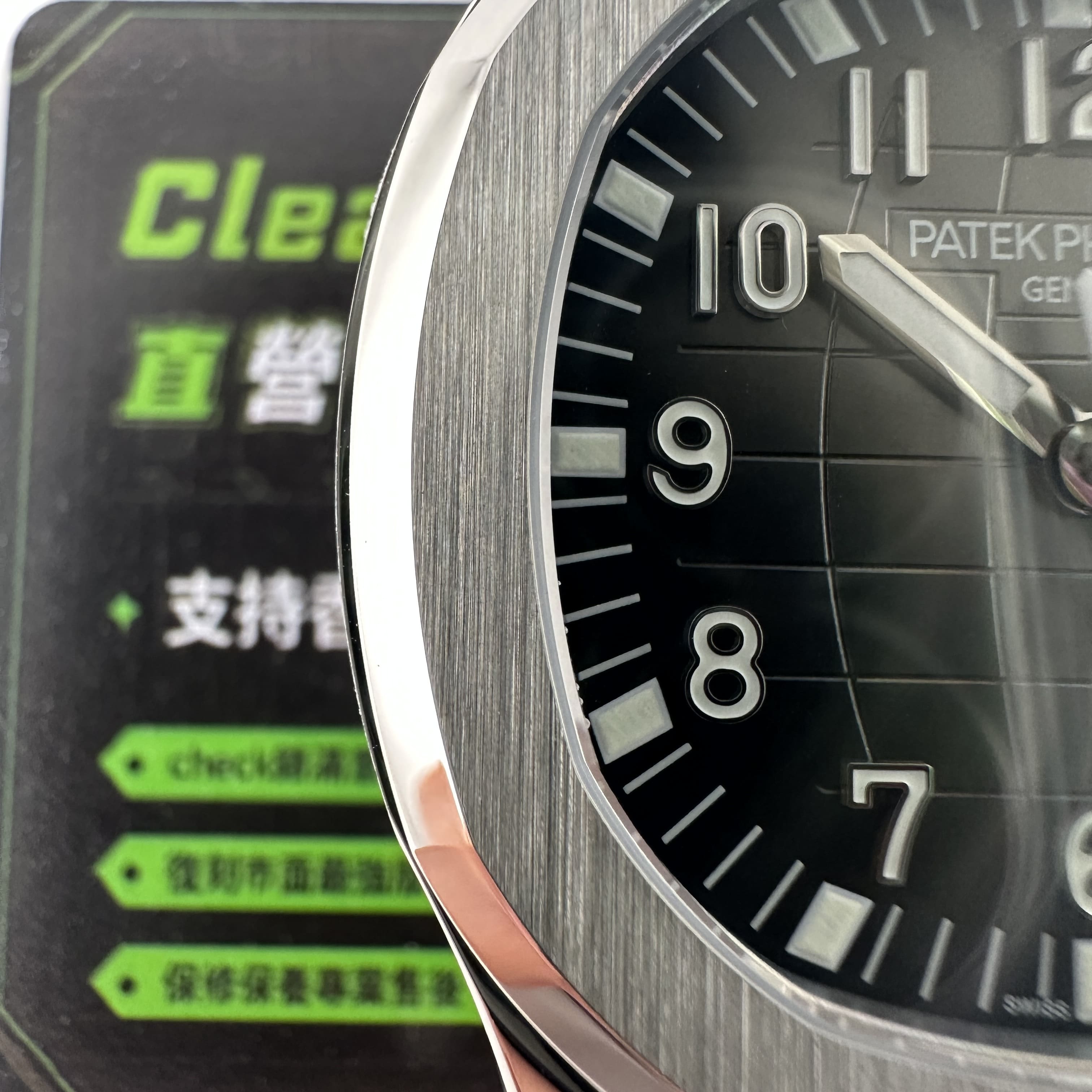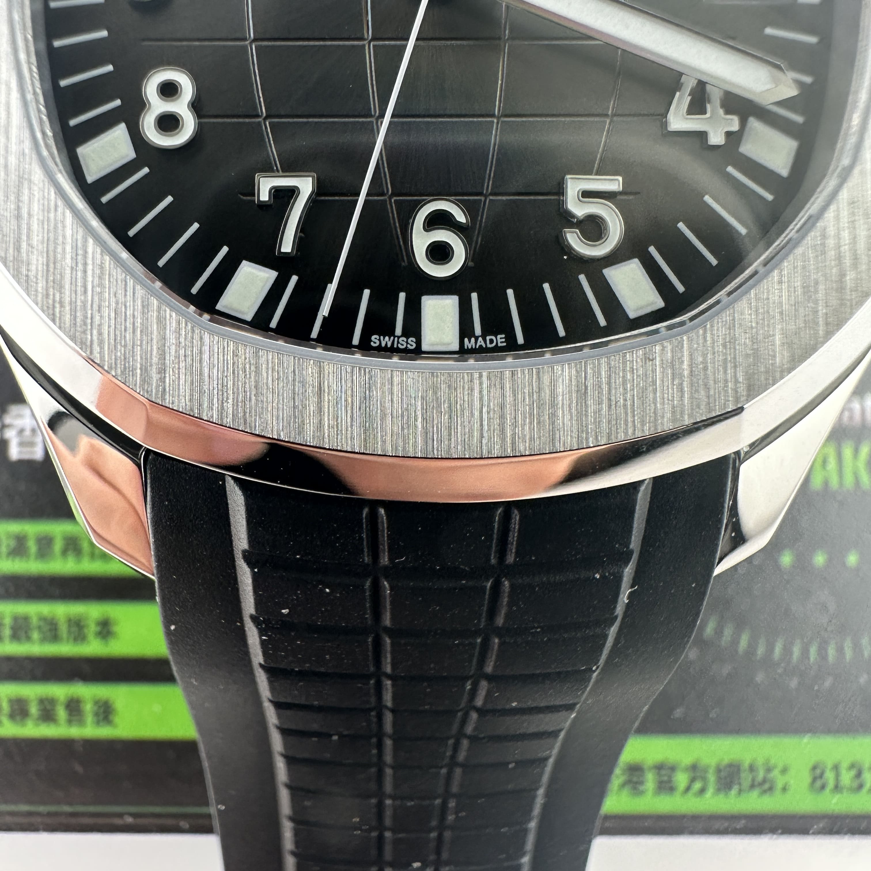 圈口部分是以圓弧形的切割面形狀打造,向下的弧度是拋光,而正面部分則是拉絲工藝.此次3K廠5167手雷是標配了藍水晶高透玻璃鏡片,錶盤內部是最經典的軍用手雷外觀設計,多弧度的紋理紋路類似半個圓球的模樣,3K廠的錶盤是目前最正規並且可比對原版的效果.時間顯示刻度部分是以阿拉伯數字和夜光塗層作為設計,大面積的夜光效果,在晚間的性能是比較完善的.日曆字面對版無毛邊毛刺.實心中軸圓潤角度打磨,指針細膩有感.進口橡膠錶帶3K廠百達翡麗搭配了最新款的利劍護橋式錶扣,更加新穎.