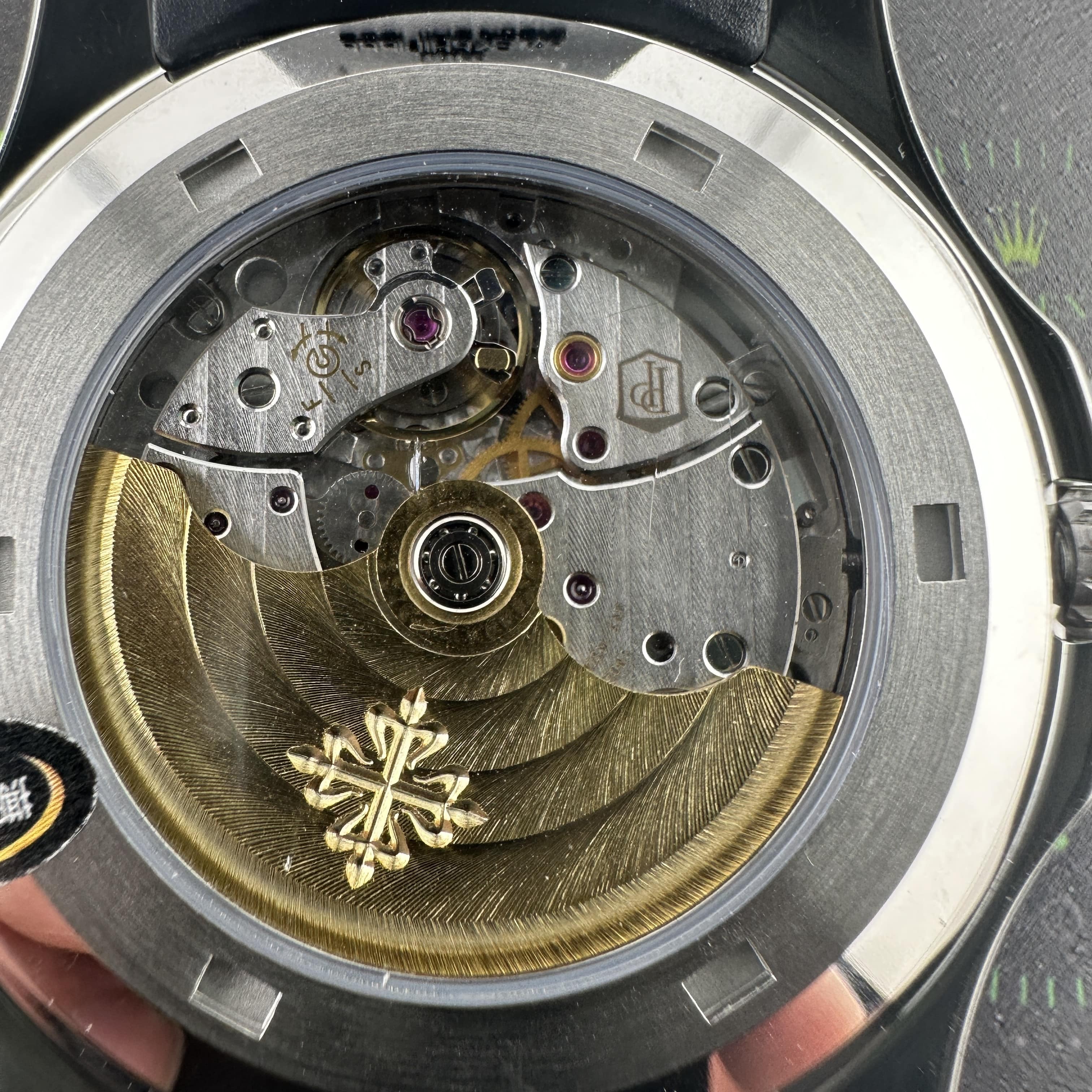 3K廠香港官網以百達翡麗PP5167A黑手雷款式全面升級為對版對標正品級別.首先最大的更新是機芯方面,對於3K廠官網此次升級少不了一體26-330機芯的配置加持,這枚機芯是通過原裝正品對於新款手雷作出重大改革,此次都是搭載了324一體機芯.對比老款機芯的結構和新機芯之間差別的差異還是比較明顯的.背透是刻度字面清晰工整,擺輪位置同步進行在6點鐘位置.金色陀片打磨細膩有感.而整錶尺寸40mm,3K廠PP手雷原版1:1開模打造,針對錶殼的復原專屬打造,精度拋光打磨無任何缺陷.