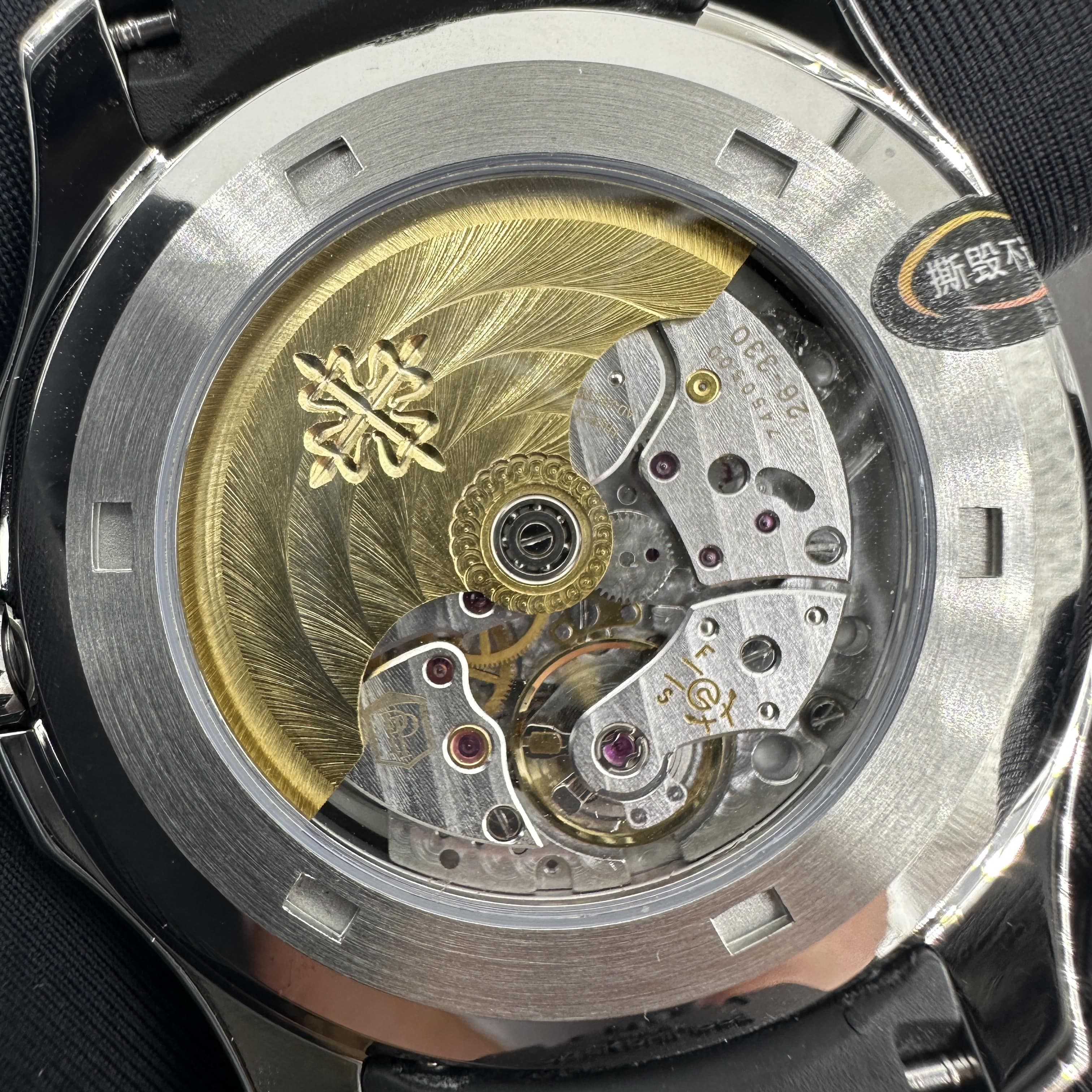 來自3K廠百達翡麗手雷5167A-001高仿手錶,3K廠手雷是一个黑盘。通过Clean Factory直營店實拍圖片我们来聊一下这款腕表,给我感觉是非常运动化。整表尺寸上40MM,厚度是8.3MM,尺寸跟厚度都是同步正品的,3K廠高仿手錶主要可以做的非常的薄。這是3K廠高仿手錶的優勢之一! 做这个高仿PP手雷還有其他廠家,有PPF廠、ZF廠还有3K廠等等的厂家都有在做,但是復刻手錶市面上目前做的最好的手雷就是3K,3K廠的第二個優勢是所搭載的機芯都非常穩定,也就是在機芯方面下的功夫還是非常足的,這一隻PP手雷5167A-001搭載的是一體機芯SC330自動機械機芯,目前这个是3K廠PP高仿的话,一直以来做这个机芯还原度是非常高的,没有一个厂家能够比3K廠有機芯的優勢。