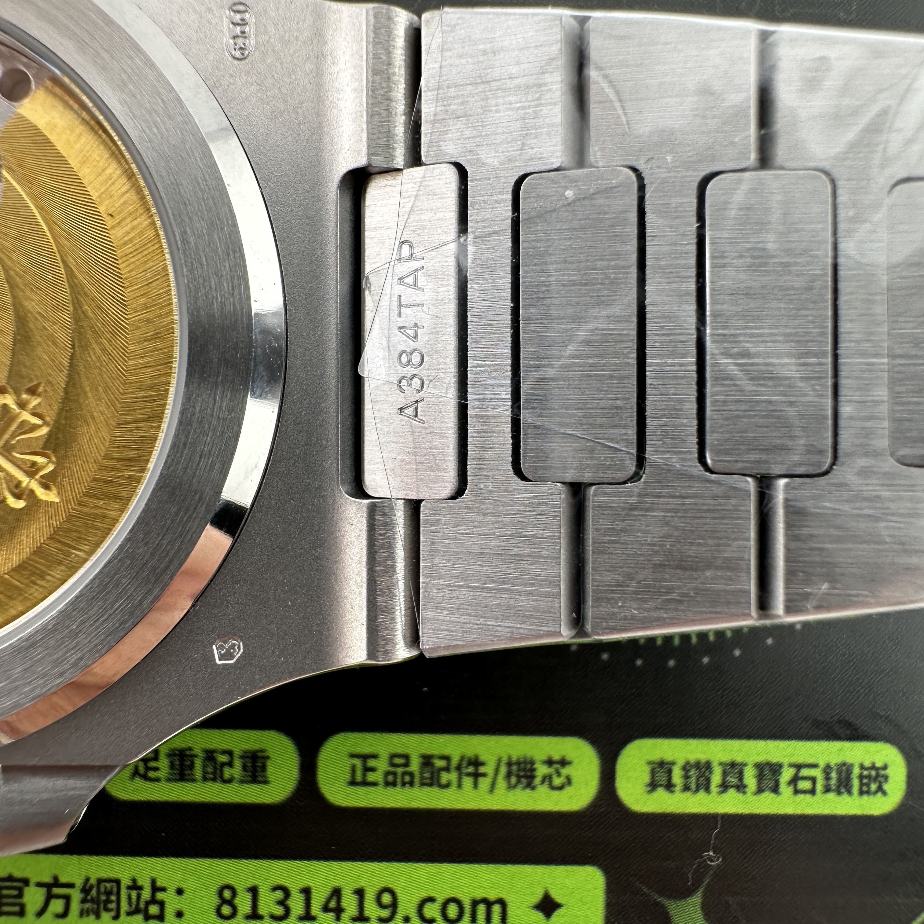 整錶尺寸41mm,對比5711在規格上還要大出1mm,3K廠百達翡麗5811以及PPF廠出品5811對比專櫃版本錶盤存在色差.指針中軸不夠圓潤,其次是日曆字面大小不夠工整,再者則是PVD電鍍金不夠閃度.這些都是建立在3K廠5711基礎上,才會有後續的5711滿配改裝案例.我們圍繞改裝升級部分著重說明了這一款高仿PP5811唯一的優點就是機芯配置同步正版,但相關刻度字面不夠清晰,也是需要重新購買機芯進行刻度甲板,做到深刻度同步正版一致效果.