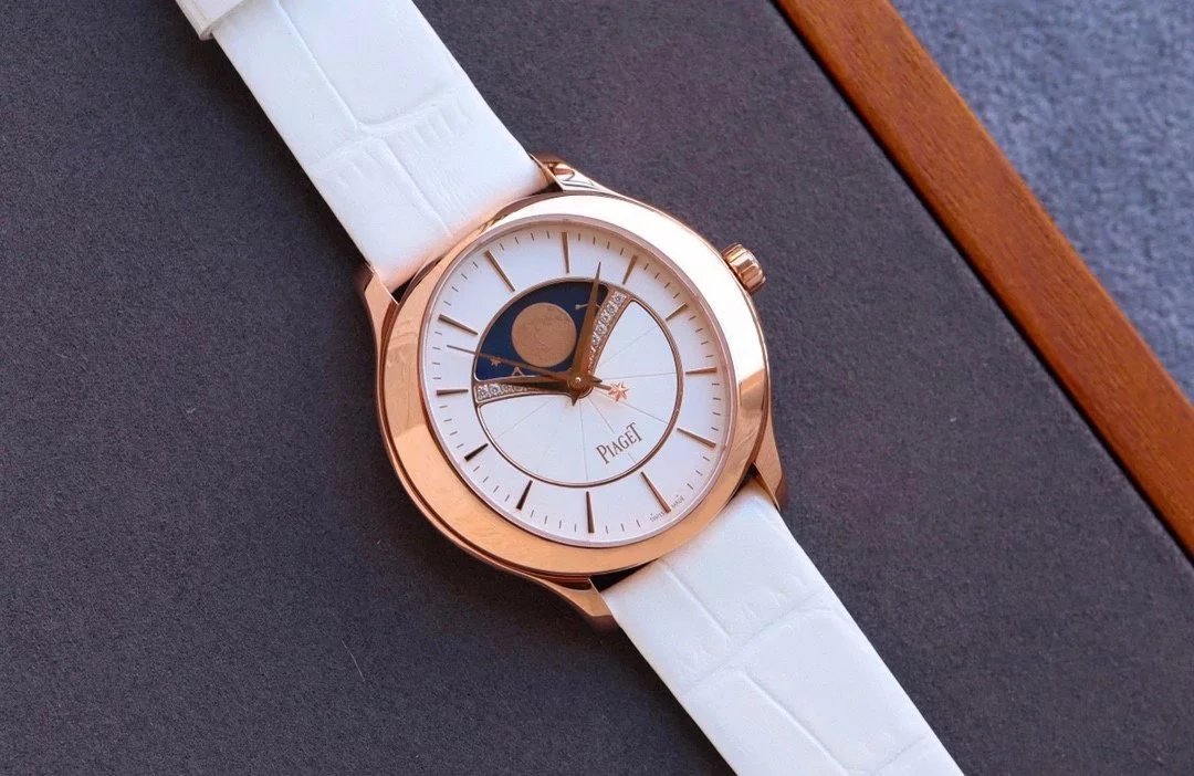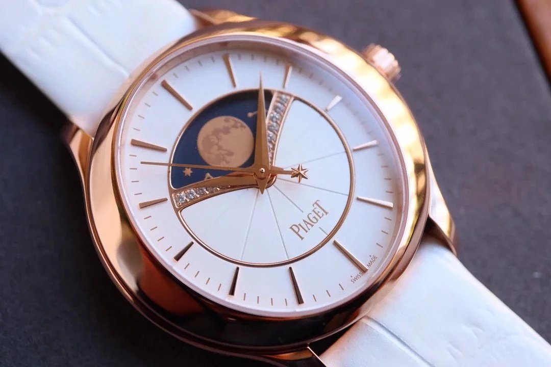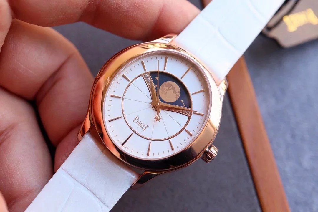 • CC新品伯爵Limelight Stella系列月相女士自動機械手表 玫瑰金白盤