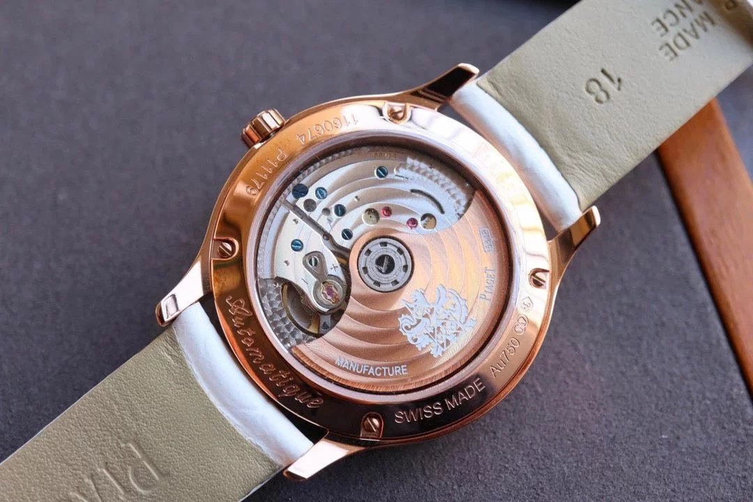 【機芯】配備42小時動力儲存 CITIZEN9015改Calibre 580P機芯,環狀緞面磨砂與日內瓦波狀飾紋,以及擺鉈上的Piaget伯爵徽章纖毫畢現,細膩動人。