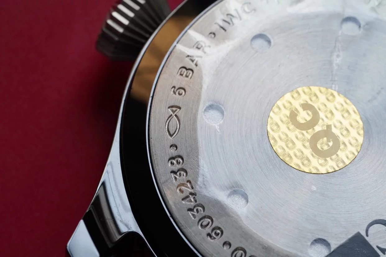 底蓋這裏為密底的設計,相對來說不會出現一眼假的情況。底蓋的刻字也是清晰有力,不含糊,包括底蓋也是雕刻得很深,整個底蓋來說的話很贊。關於機芯的話搭載的是自產Cal.機芯,性能跟葡7的機芯差不多,此機芯是自動上鏈機芯,走時精准十分穩定。