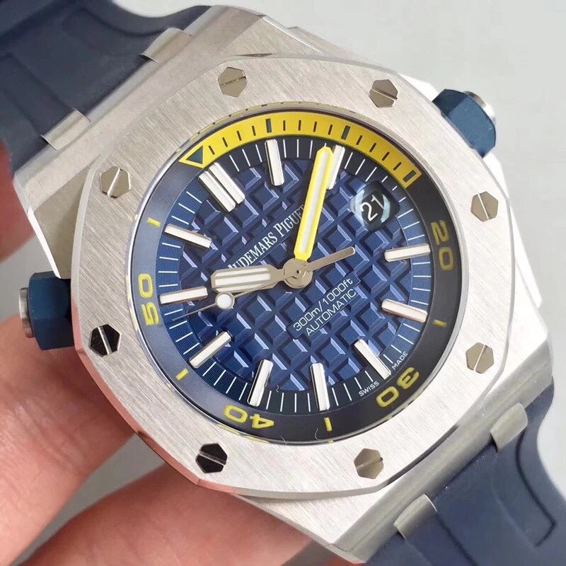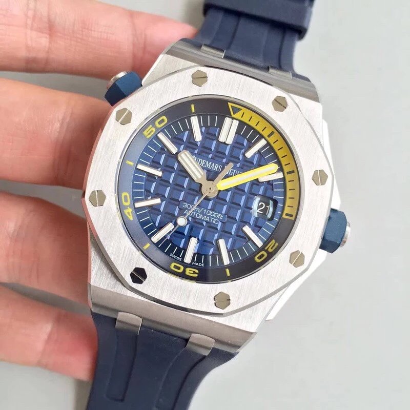 JF精品 AP 愛彼 15710彩色系列 皇家橡樹離岸型系列機械男表V8版本,背透3120機芯是革命性的升級,雙面藍寶石鏡面,橡膠包覆層螺絲鎖入式表冠,防磁裝置,42mm*13.8mm。性價比超高的愛彼神器!完美。