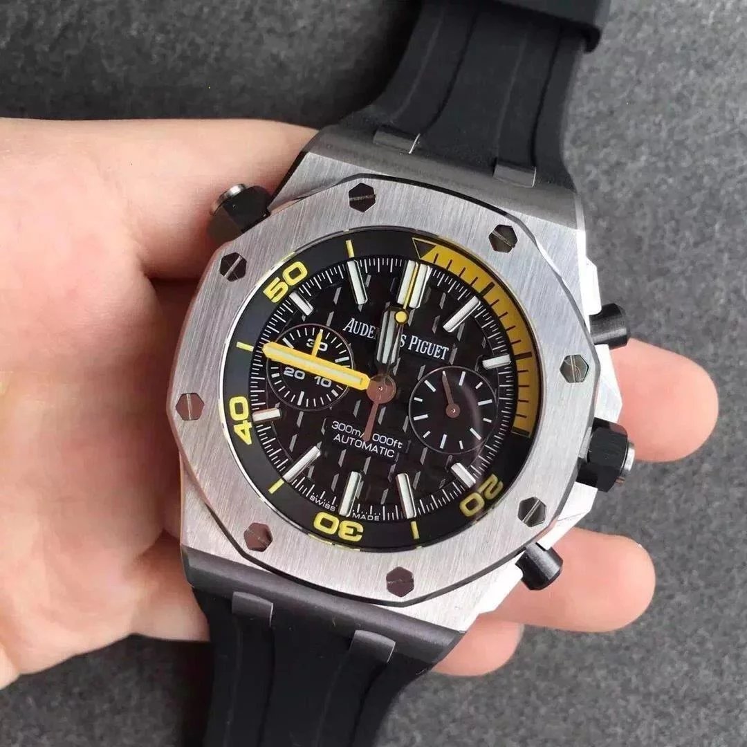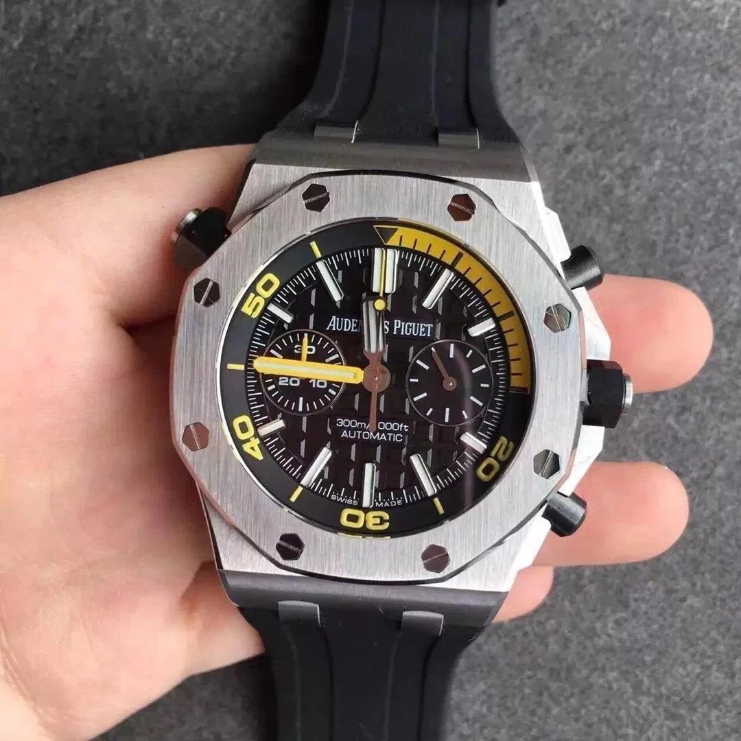 愛彼皇家橡樹離岸26703計時黑盤膠帶男士機械手表