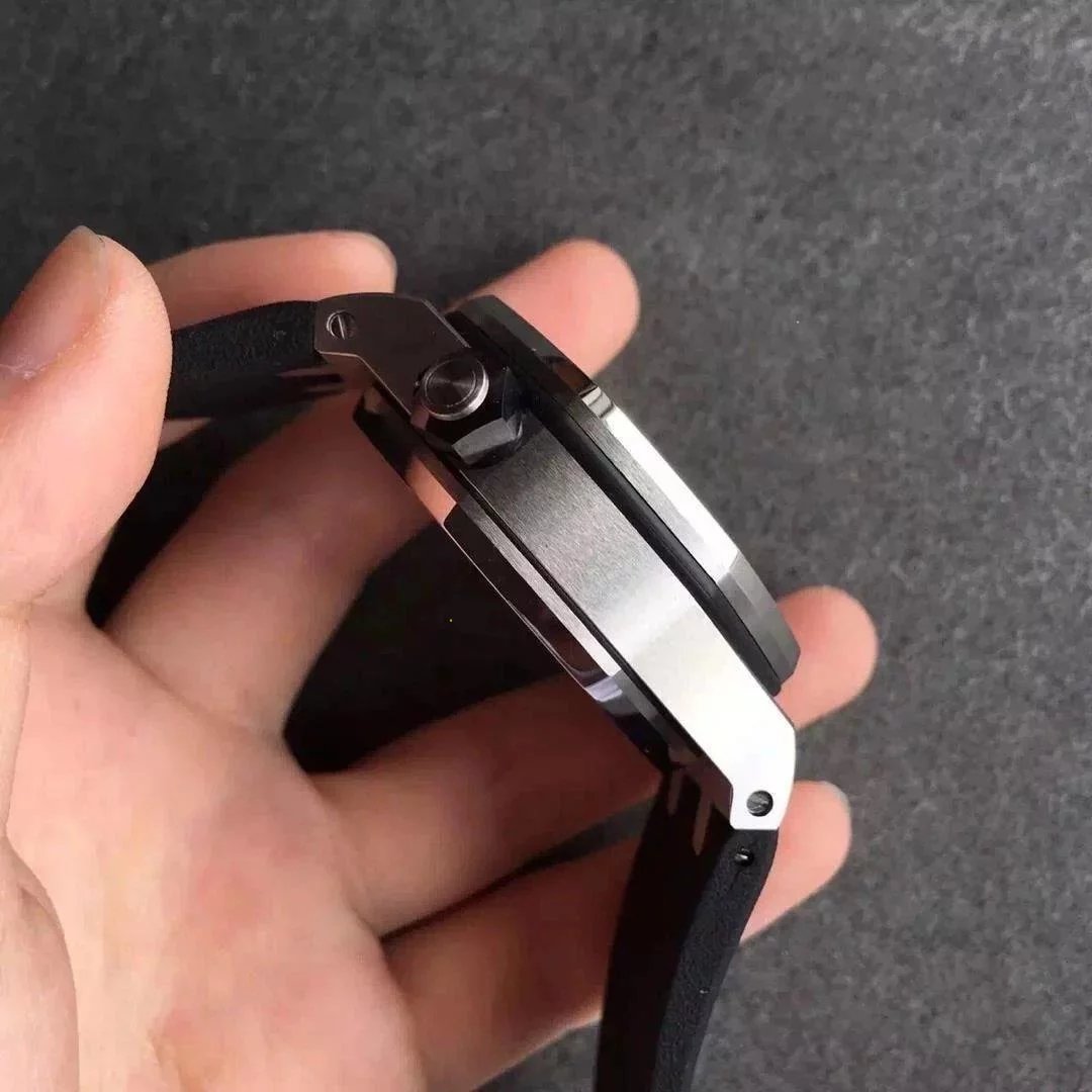 夏日炫酷款,AP 愛彼 皇家橡樹離岸26703黑面, JF廠 出品,42X14mm,7750改3124自動機械機芯,316精鋼表殼,藍寶石鏡面,夜光指針和刻度,膠帶,針扣,防水50米
