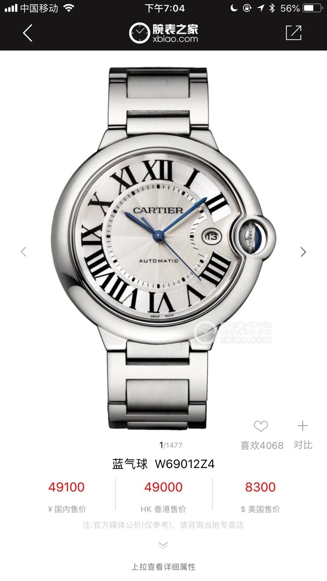 v8版本卡地亞藍氣球42mm 最高版本W69012Z4大號自動機械男表