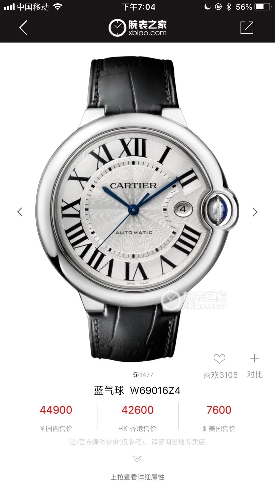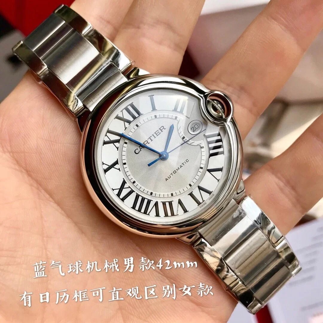 v6版 卡地亞 Cartier 藍氣球 Ballon Bleu W69012Z4情侶表 大號自動機械 - 頂級版本,具體參數見評論!V6藍氣球大號42mm最新版本v8版出貨!!表鏡處月牙弧度進行了修正,表把處殼套弧度更加圓潤,連貫成一體,不再像一個突出的圈口!尺寸:42mm× 13 mm機芯:2824可升級瑞機進口2824機功能:時,分,秒及日期顯示表殼:316L不銹鋼表殼水晶:防劃藍寶石水晶(如真正的相同)錶盤:銀色錶盤錶帶:不銹鋼手鏈表扣:折疊式表扣耐水性:生活防水