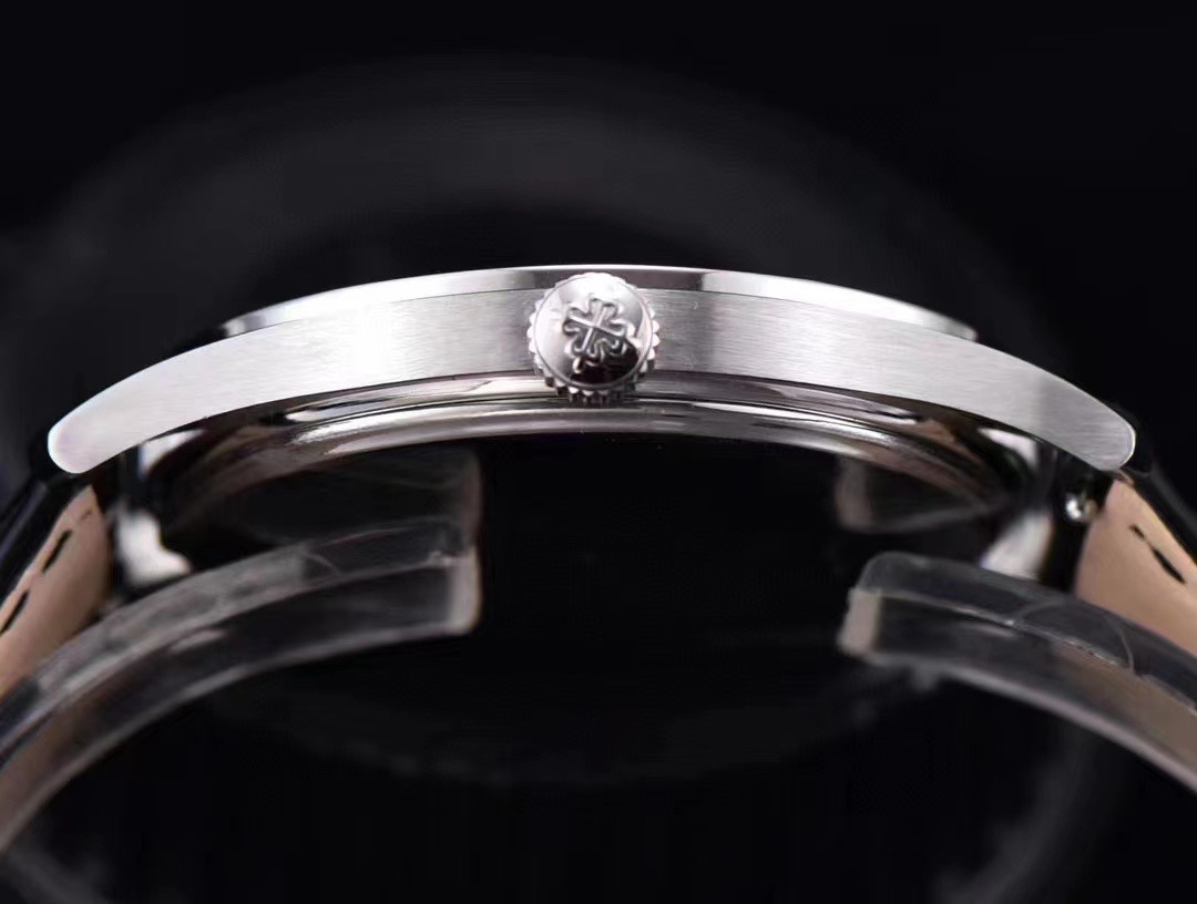 古典魅力,經典重現,AI新品——百達翡。 麗古典錶系列5196G正裝錶王震撼登場。 完美還原錶中王者的獨特質感和簡約格調。 【精彩細節】1.腕表尺寸37X7.7毫米,尺寸數據完美吻合正品,佩戴輕便,還原正品體驗。 2.採用與原裝一致的鍋蓋型穹頂玻璃,特鍍有雙層抗眩暈增透鍍膜。 3.錶盤標識和指針的邊沿全部採用手工潤飾倒角(一套工藝下來非常不易),之後再採用鍍銠工藝處理,確保光澤度和質感不亞於原裝。 【機芯】採用貭素堅挺,口碑一致的海鷗手動機芯,動力儲存長達42小時。 【錶帶扣】手工縫線小牛皮錶帶,做工精緻,包邊細膩,盡顯大牌風範,搭配Patek。 Philippe原廠級針扣。