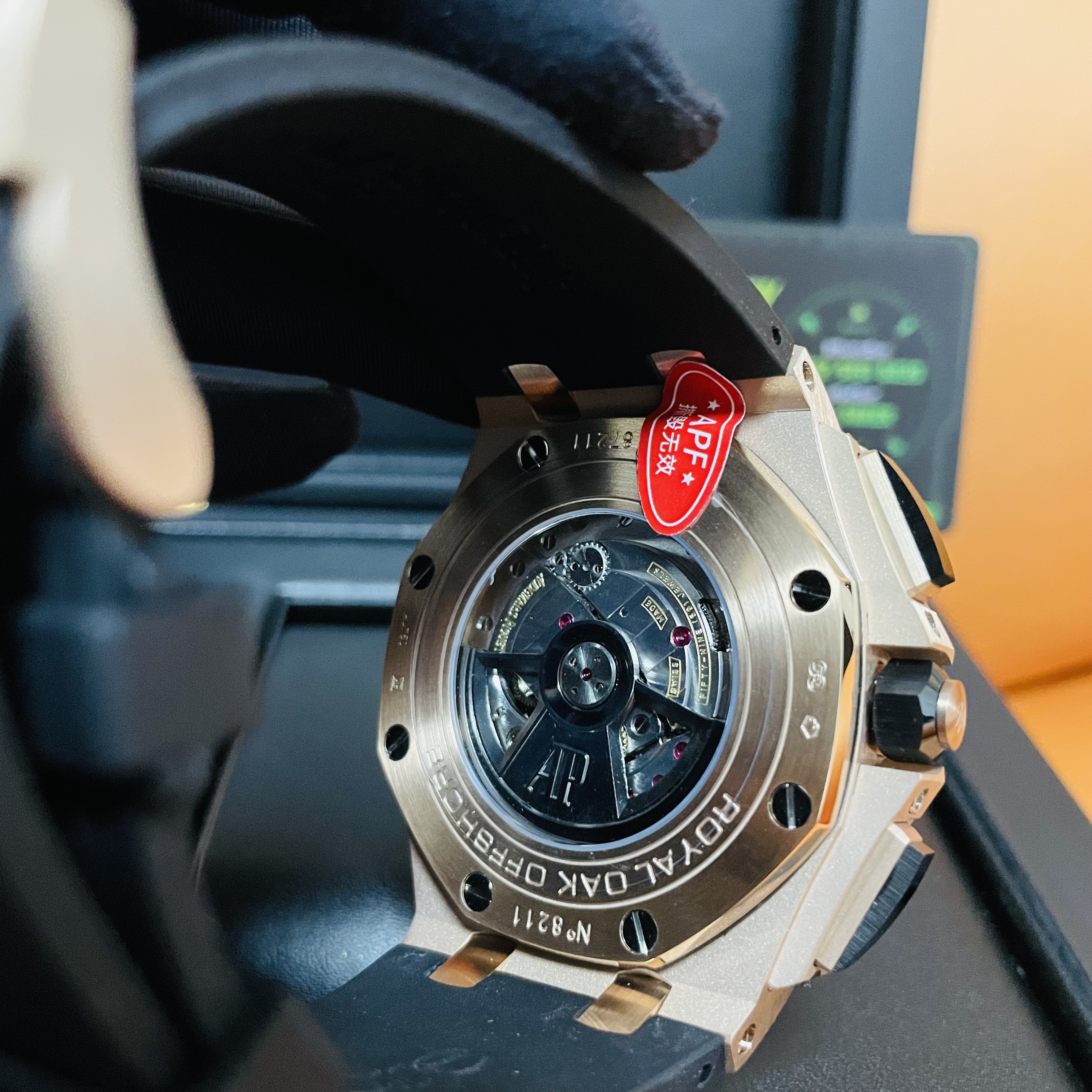 作為一隻高仿ap該有的頂級工藝,如果鏡面凸出來,會影響整隻錶的厚度.錶殼銜接表達處,頭粒部分的組成,沒有漏鋼的嫌疑,很好的把控住與錶帶之間的舒適度.採用天然進口橡膠錶帶.錶扣上的刻度AP字樣,非常工整,打磨效果極致如生.機芯採用原裝計時機芯3126,計時功能完全同步原裝正品.由於實拍圖片是在燈光下攝影,會影響整隻錶的色值不同,但作為實拍,只為拍攝單獨細節而考慮.CleanFactory直營店復刻錶香港地區也開通了面交交易,各位錶友可現場Check錶,滿意後再付款.