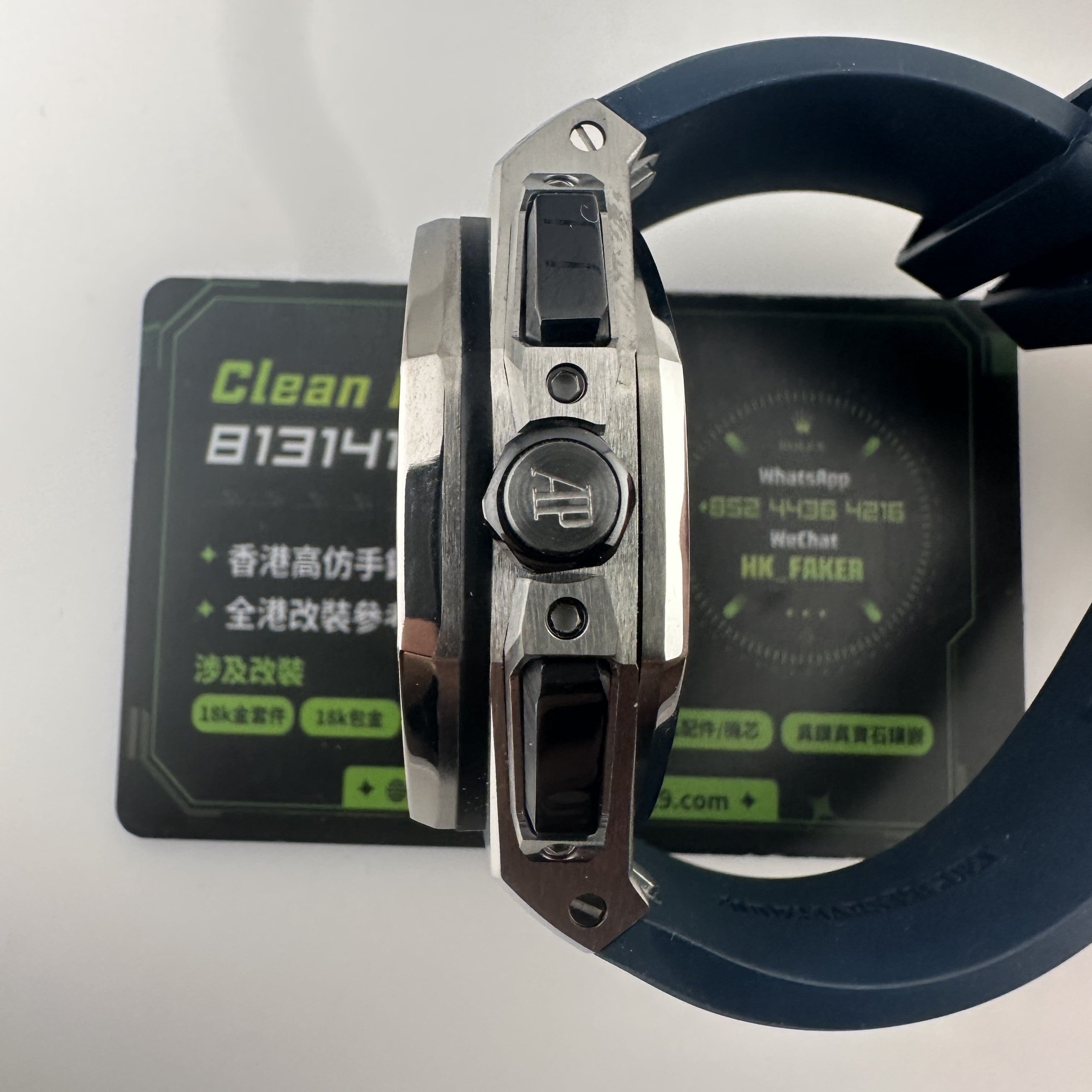APP廠官網全新推出AP愛彼皇家橡樹系列26420TI藍盤腕錶,整錶尺寸43mm,APP廠AP根據原版開模復刻而成.針對材質構造應用,原版採用鈦金屬材質打造錶殼,而APP廠也是通過鈦金屬材質1:1復原了錶殼弧度,構造,版型.採用全新設計,更符合人體工學的錶殼架構,精細的殼面拉絲處理,具有明顯的拋光倒角工藝,經過精心修飾後,以能夠容納更大的機芯裝置.機芯搭載了訂製版本的4401機芯,穩定性極佳,走時標準.