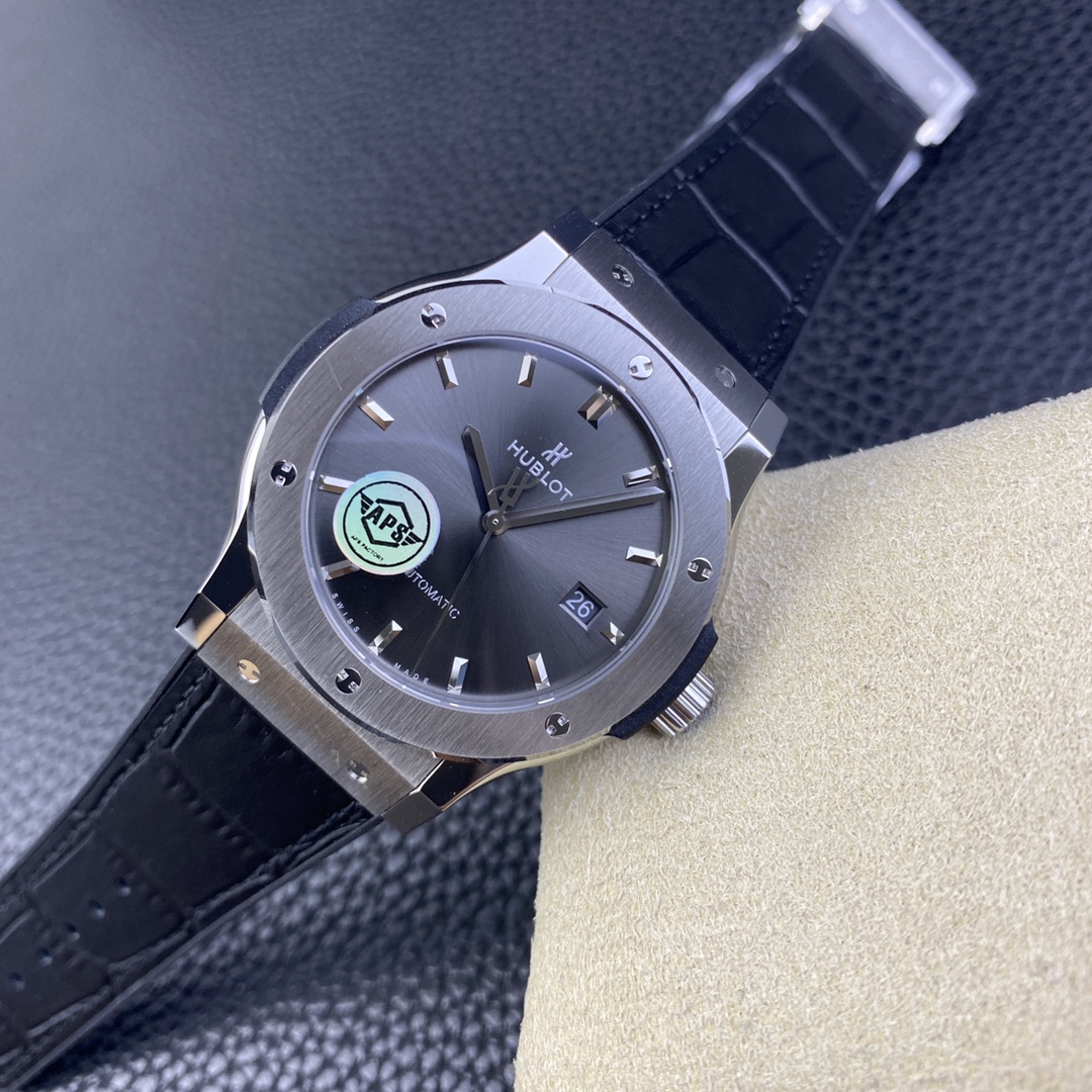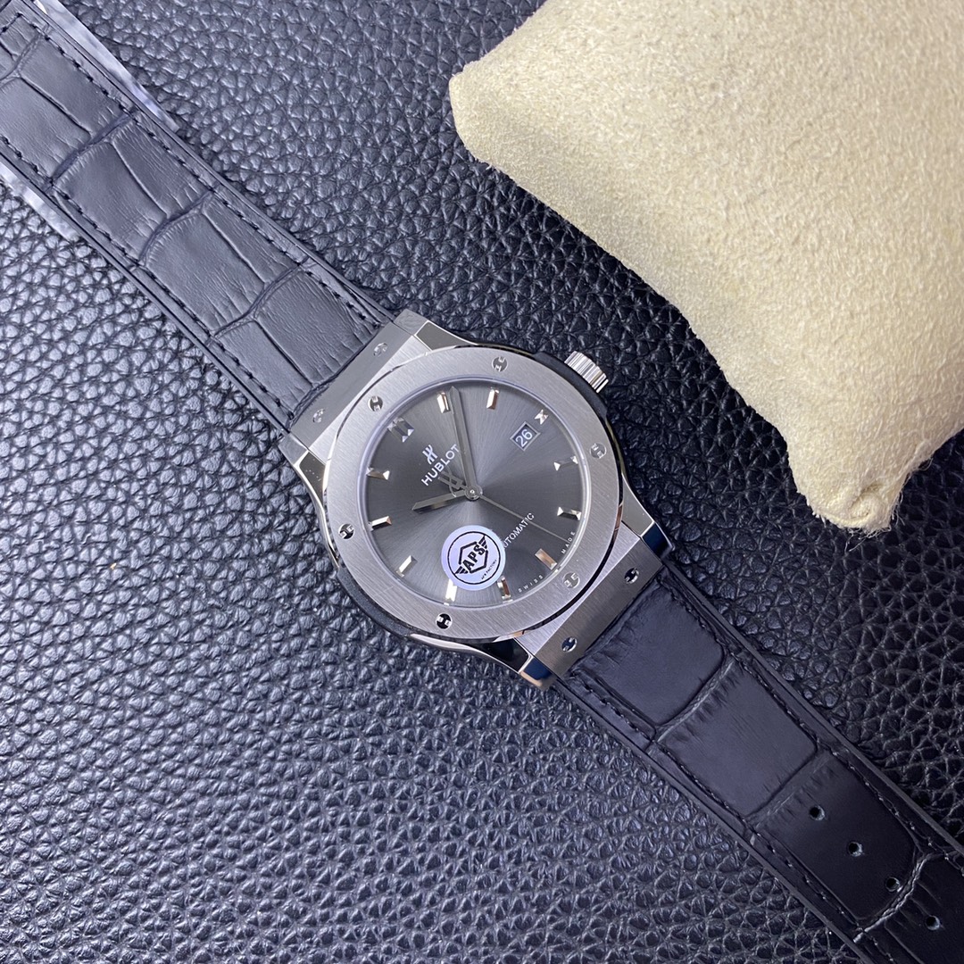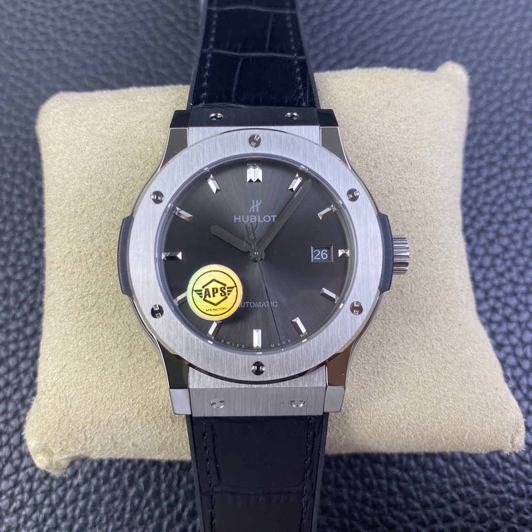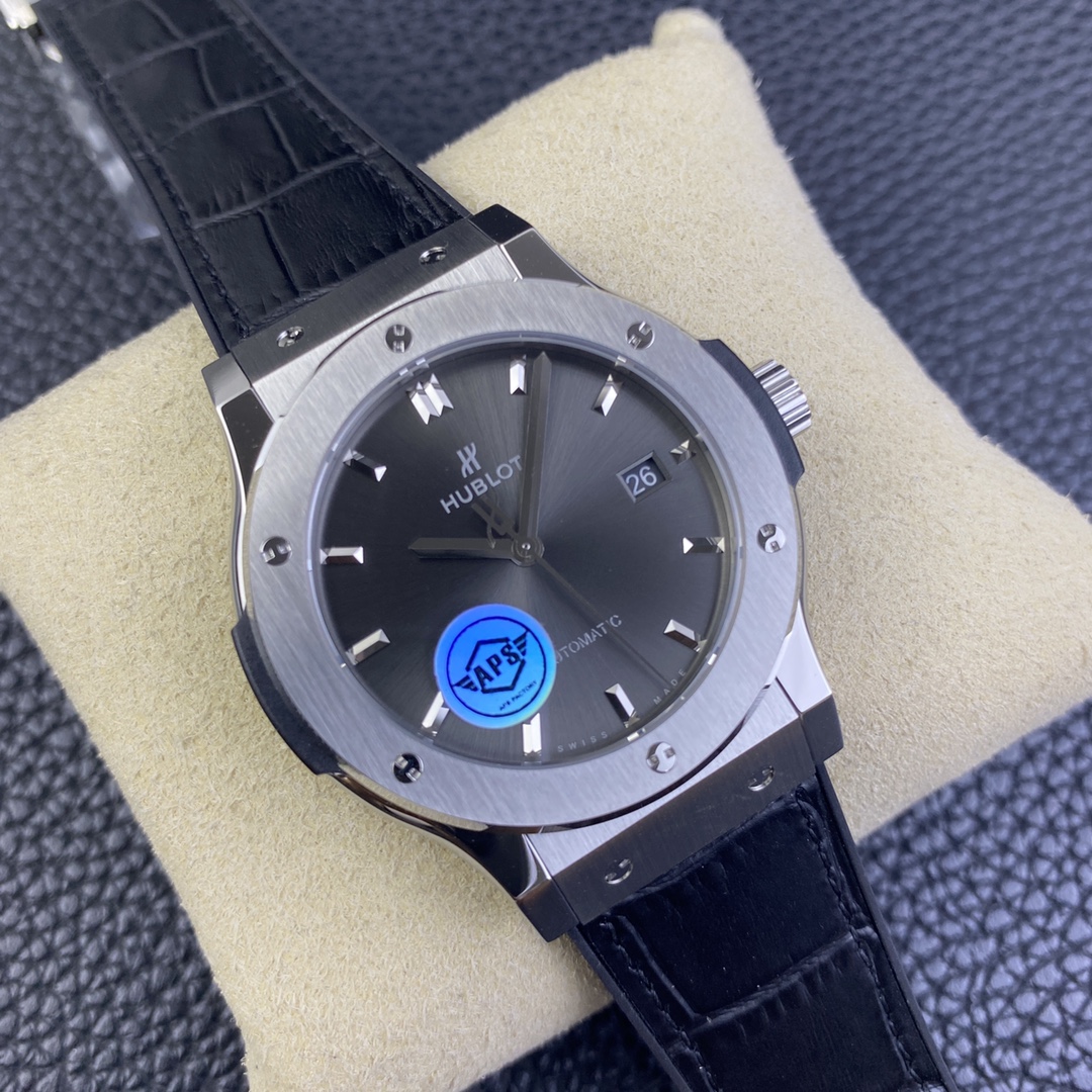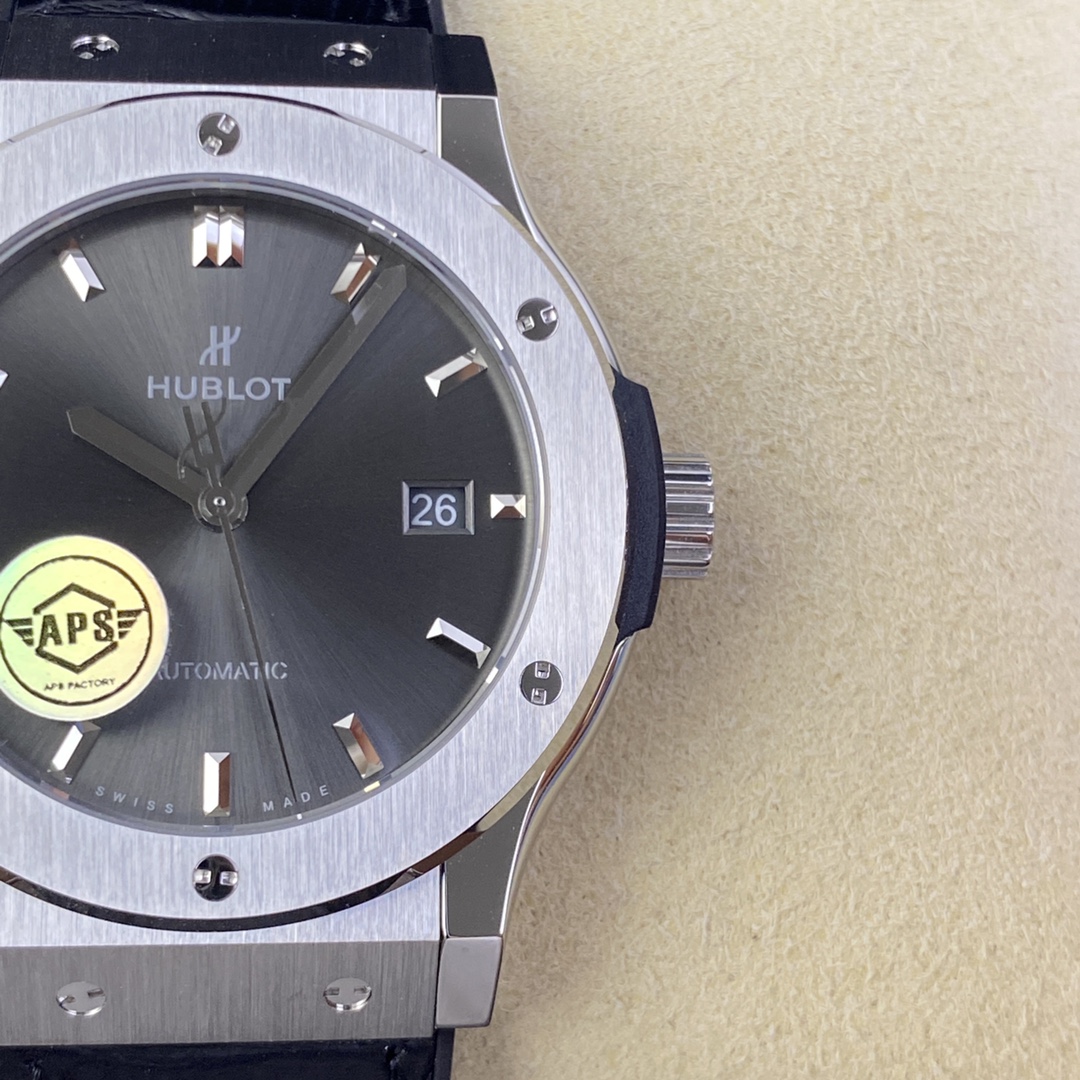 APS恒寶宇舶經典融合42mm,原版開模,複刻新高度1 ⃣, 錶殼APS採用原裝一致的正面拉絲工藝,側面拋光打磨,使整錶體現正品完美的質感,雙面防反光藍寶石水晶鏡面2 ⃣, 錶帶採用正面鱷魚紋背面天然橡膠帶,使佩戴者既有防汗的效果又有鱷魚皮的美觀3 ⃣, 字面顏色在經過十幾次反復調試,最終確認與原版相似度98%,最難攻克的藍色實現0色差,字面印刷採用立體3D印刷,與原裝工藝一致,完美複製GEN4 ⃣, 機芯採用海鷗2892三級打磨,精磨日內瓦紋,與原裝HB1110機芯完美互換,視覺上與原裝一摸一樣,外觀相似度高達99%APS歷經一年多時間反復修改,反復調試最終確認樣品,從而達到所有零件均可與原裝互換