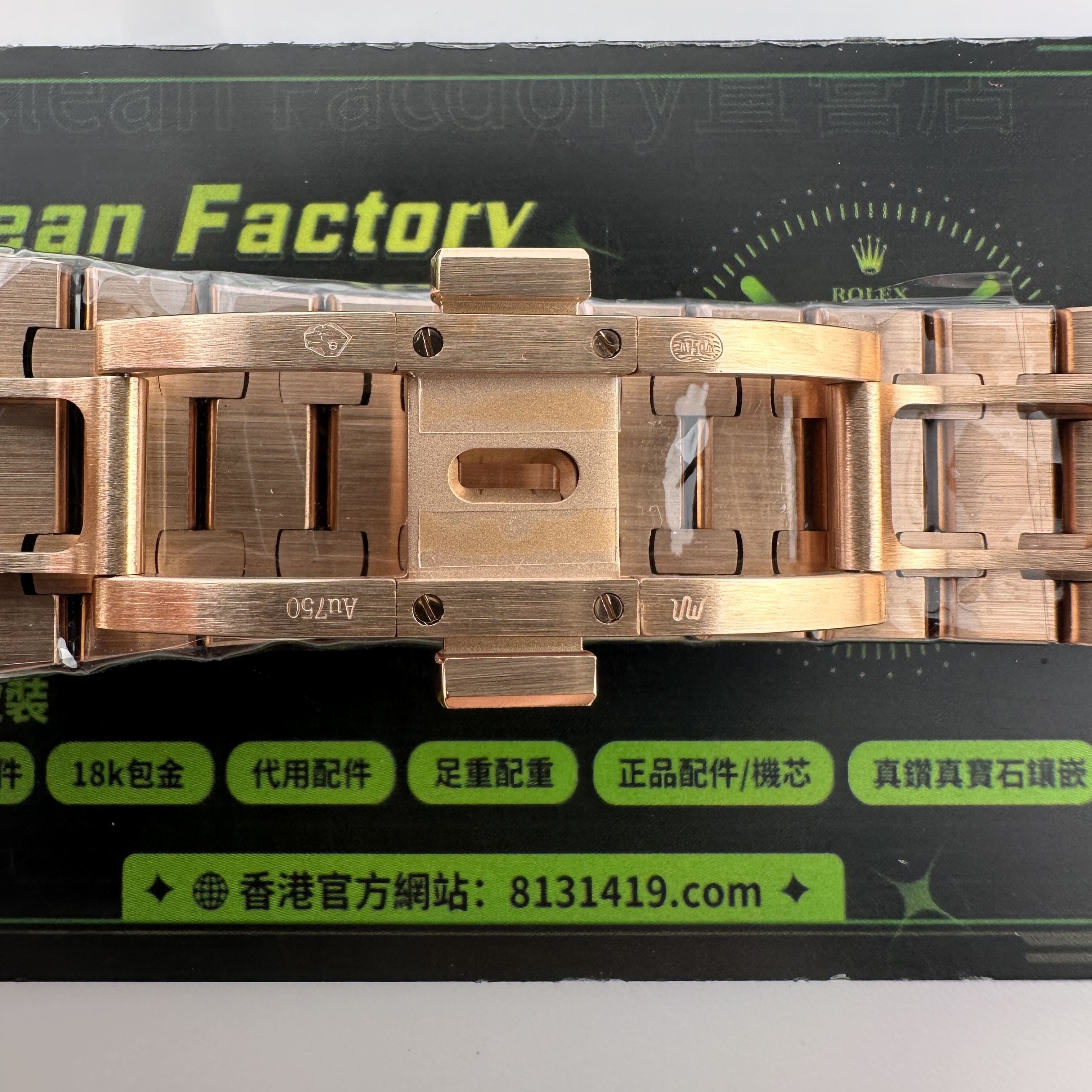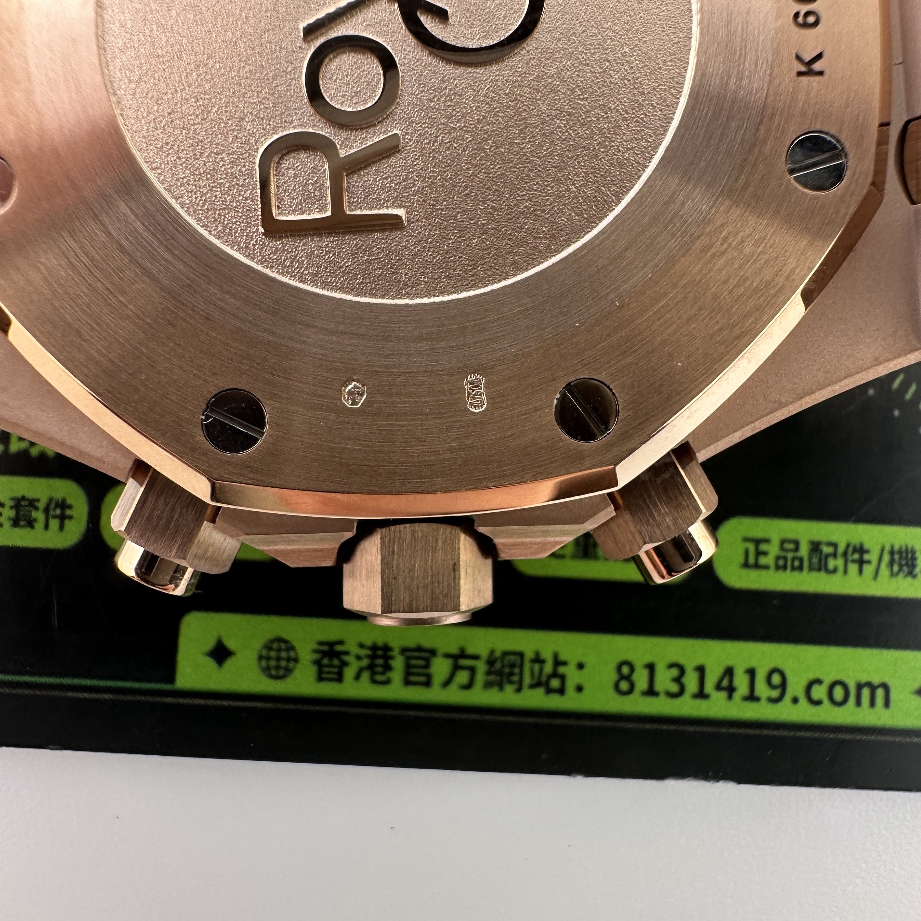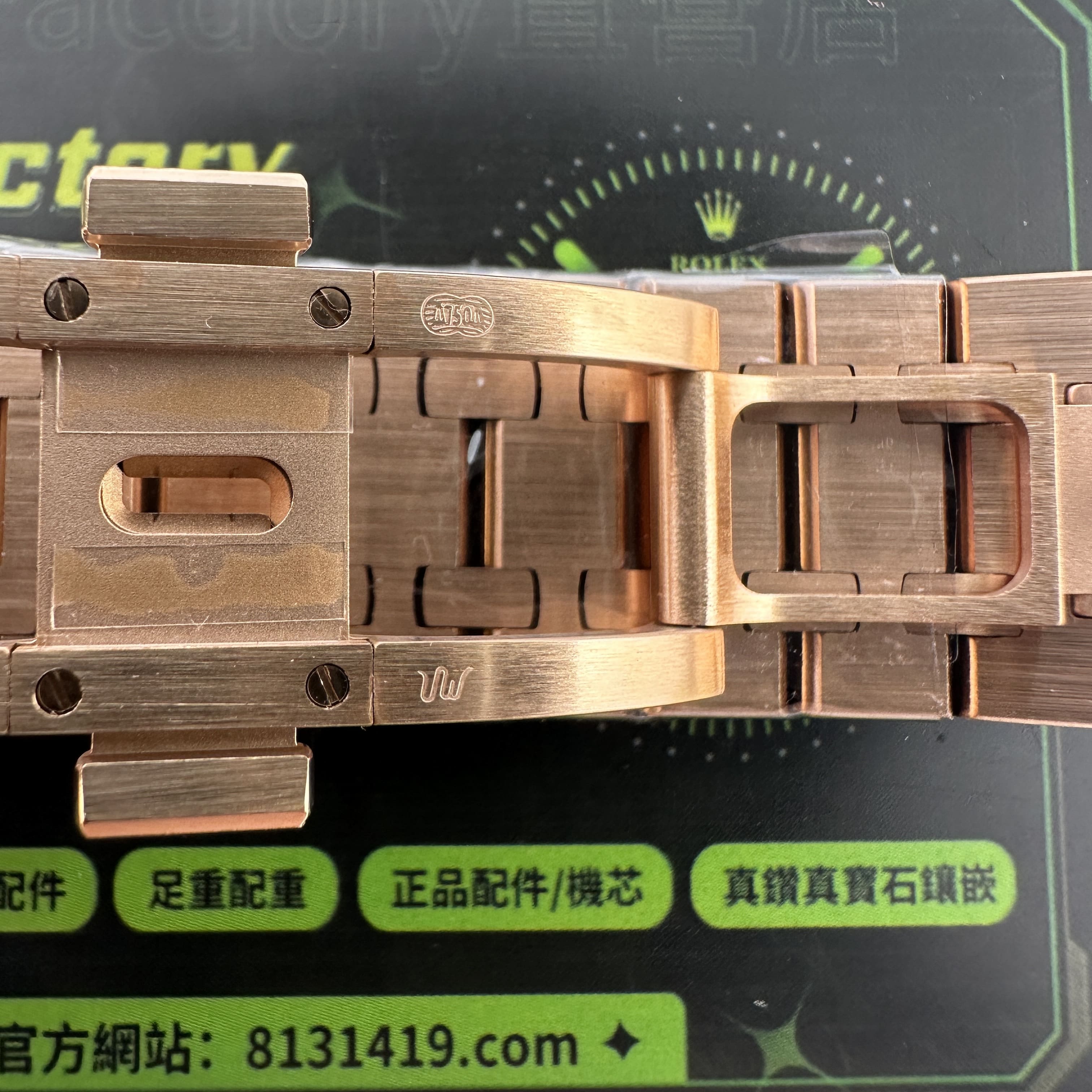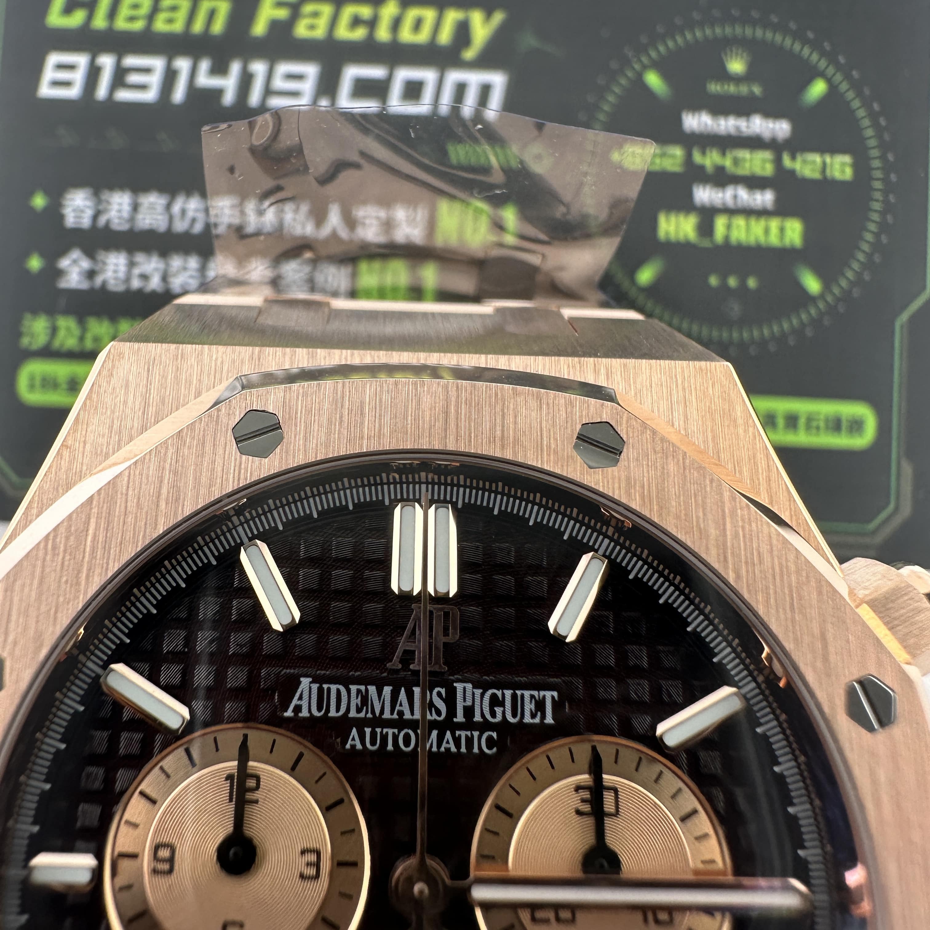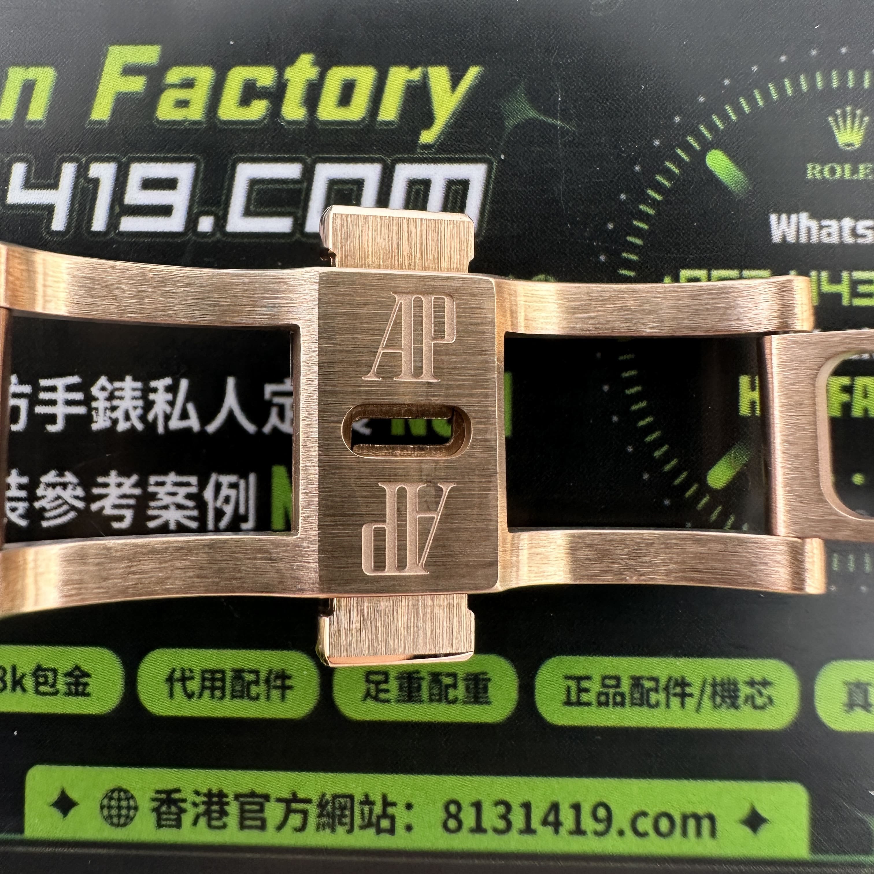這隻棕色錶盤由於在拍攝環境中呈現不出"棕色"特征,但實物APW廠26331出品的棕色對比原版的色差降至百分之3到5,非專業人士無法辨別出是否存在色差!其次是APW廠AP26331的日曆窗口與原版對比也是做到同一個位置距離.這說明了該錶配置的機芯是一體機芯架構.如果使用7750以及其他機芯增加甲板做"假機芯"其日曆窗口則是偏向錶盤邊緣.專櫃版本26331是搭載了Cal.2385機芯,高仿一體機芯則是1:1復刻機芯版本.