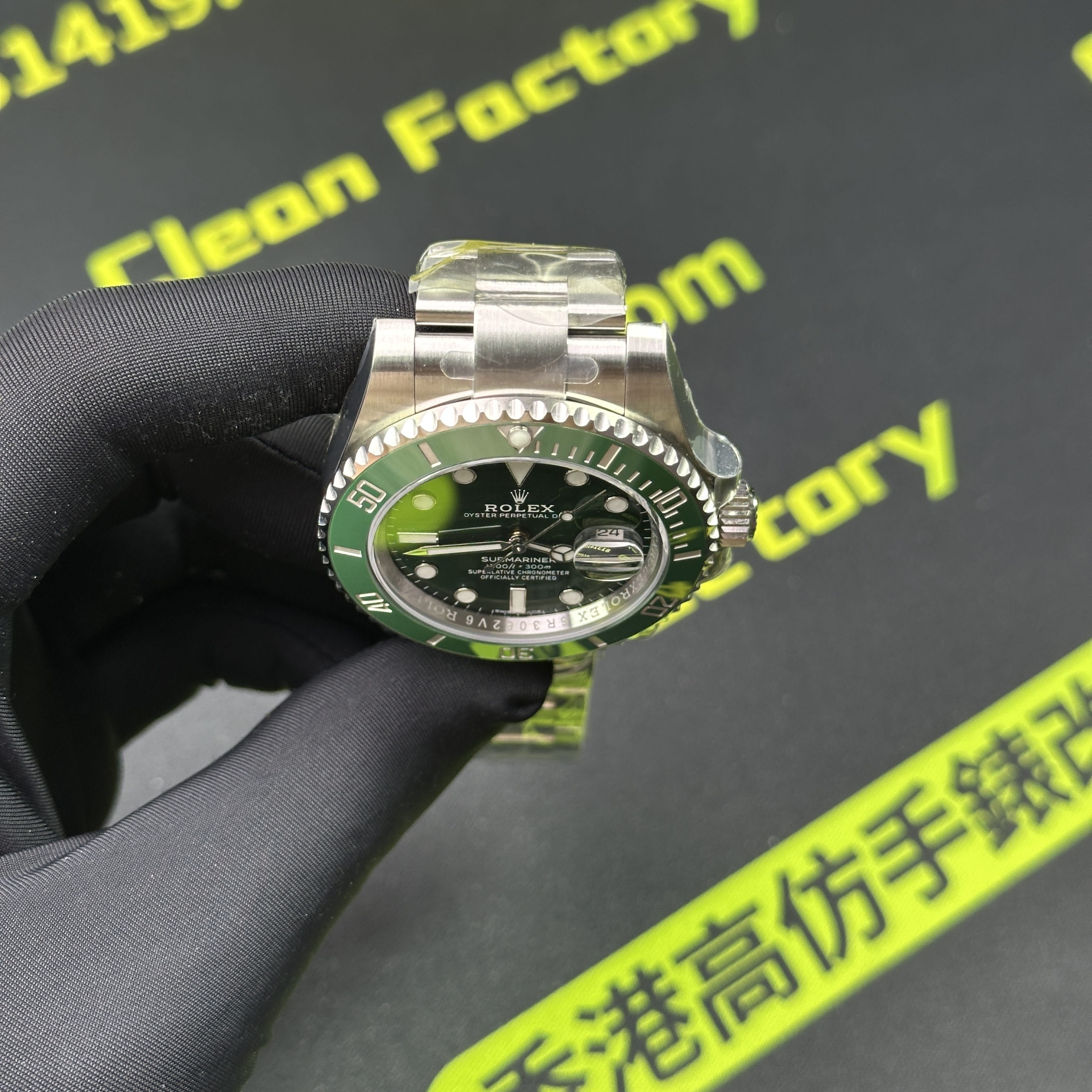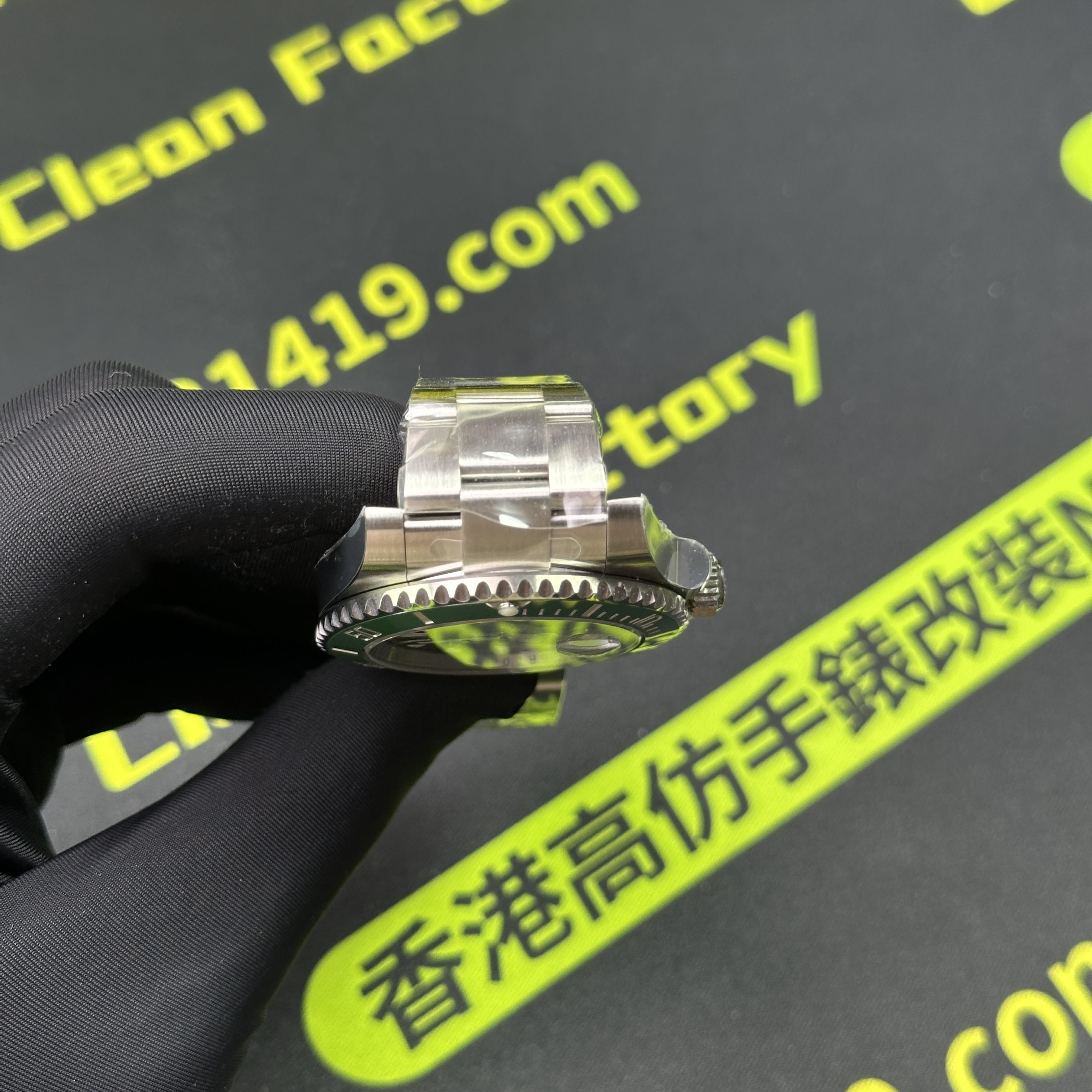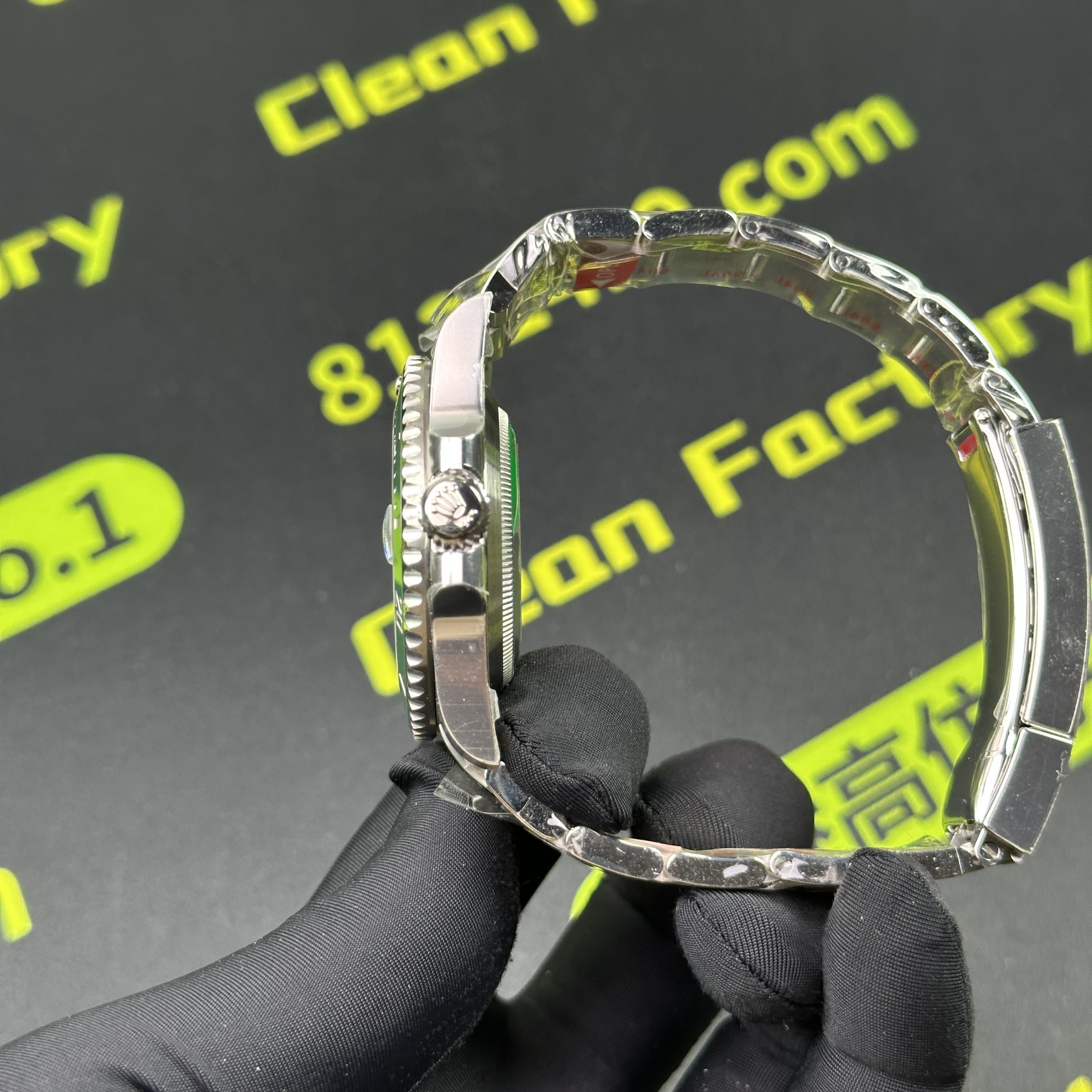ARF廠官網推出的高仿勞力士綠水鬼116610lv-0002二代版本,整錶尺寸40mm,綠水鬼非常經典的是錶盤與圈口呈現的翠綠色,通過產品實拍可以了解到ARF廠綠水鬼二代版本的翠綠色非常鮮艷,並非暗綠色,圈口的反光色澤也是相對完善.可單向旋轉的圈口,聲音清脆,沒有卡頓的缺陷,夜明珠12點標準位置構造.錶盤內部依舊是三大指針結構,搭配放大日曆窗口,印刷白色立體字面,整體的視覺感以及做工完整度非常高.