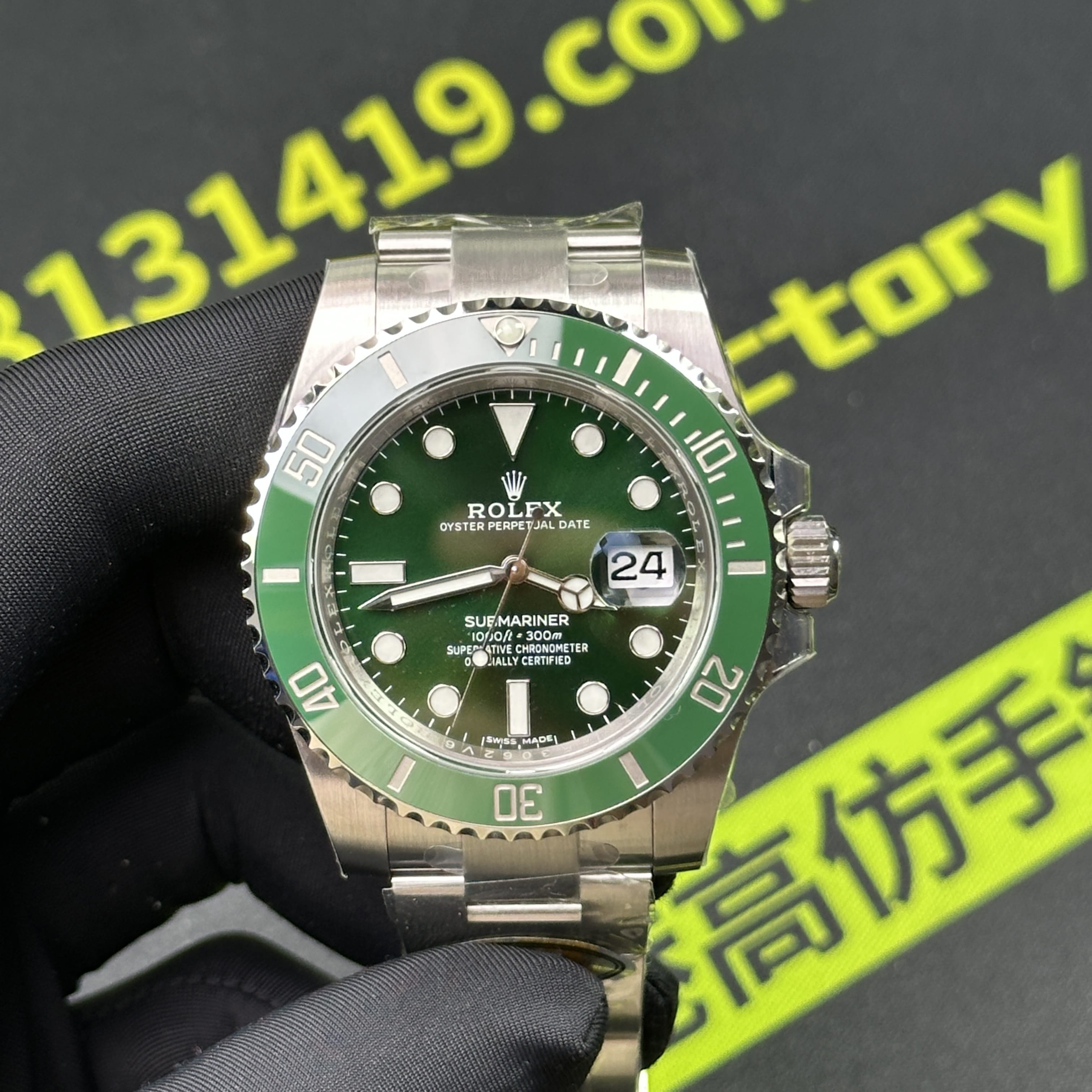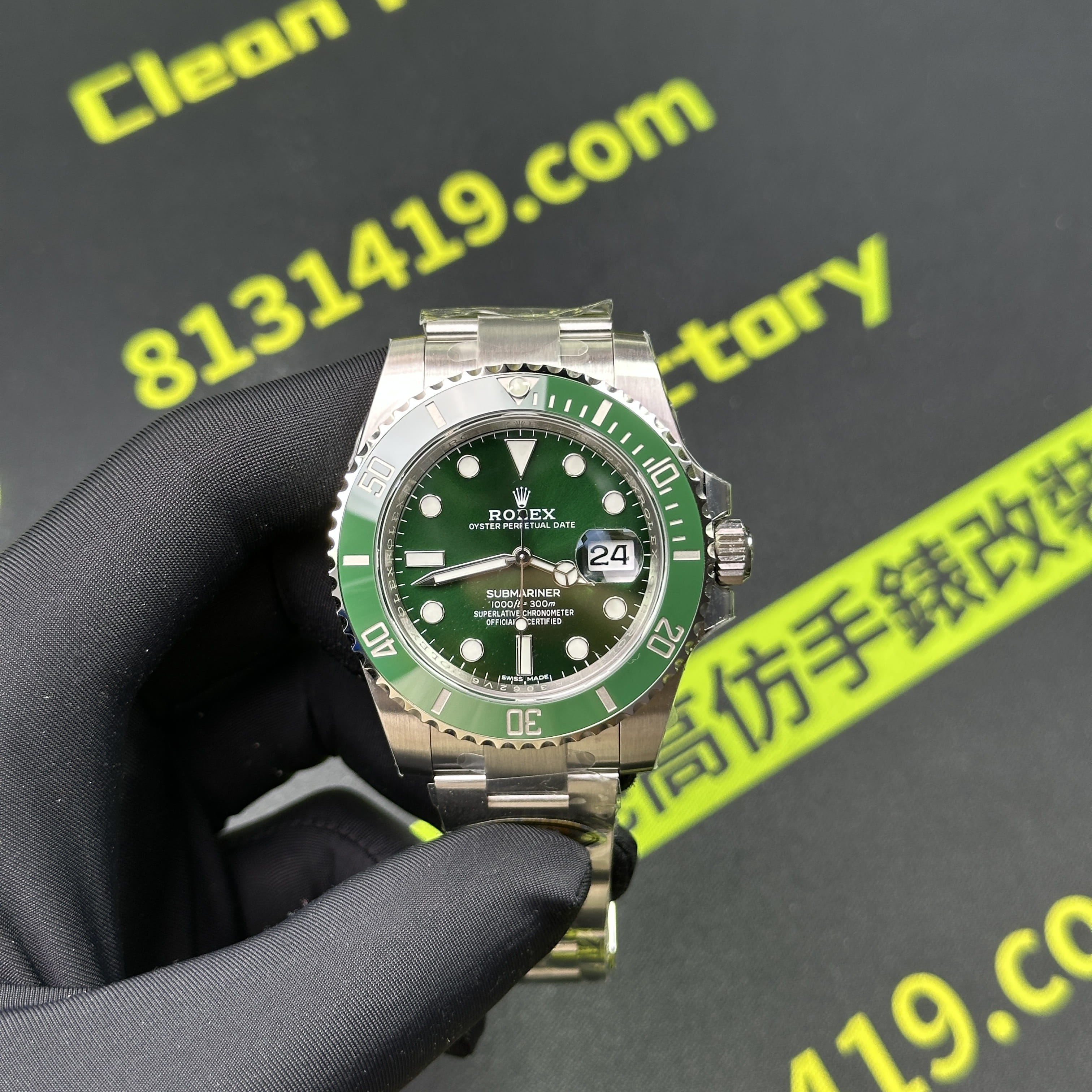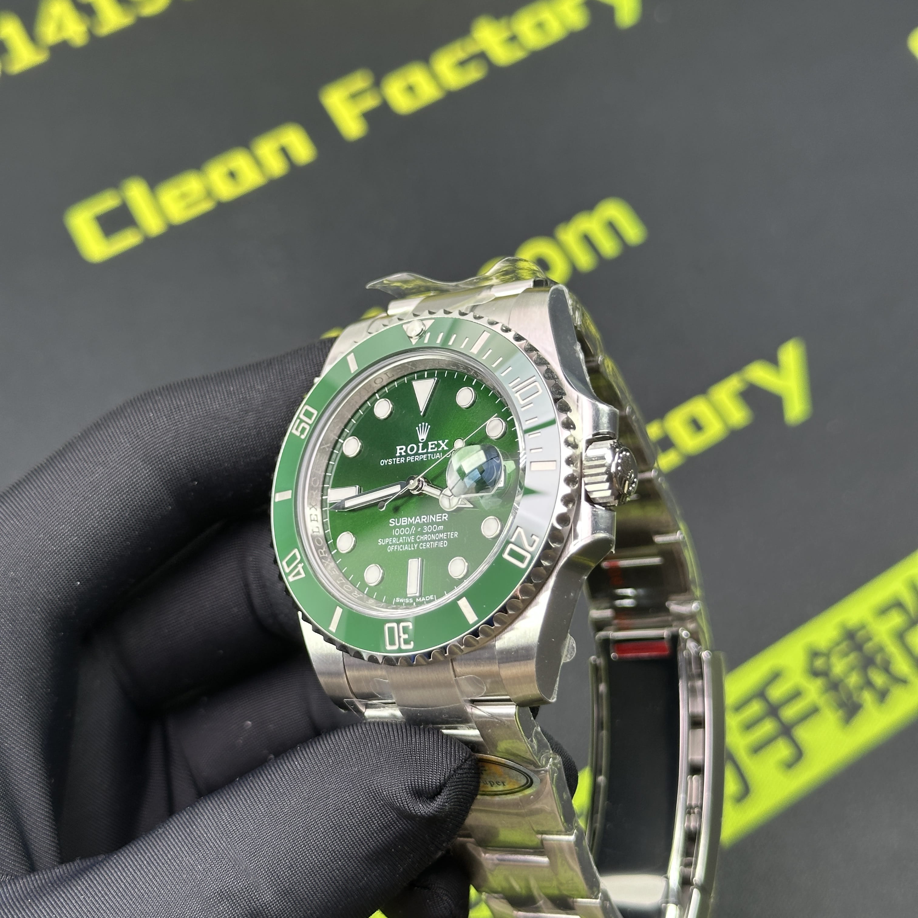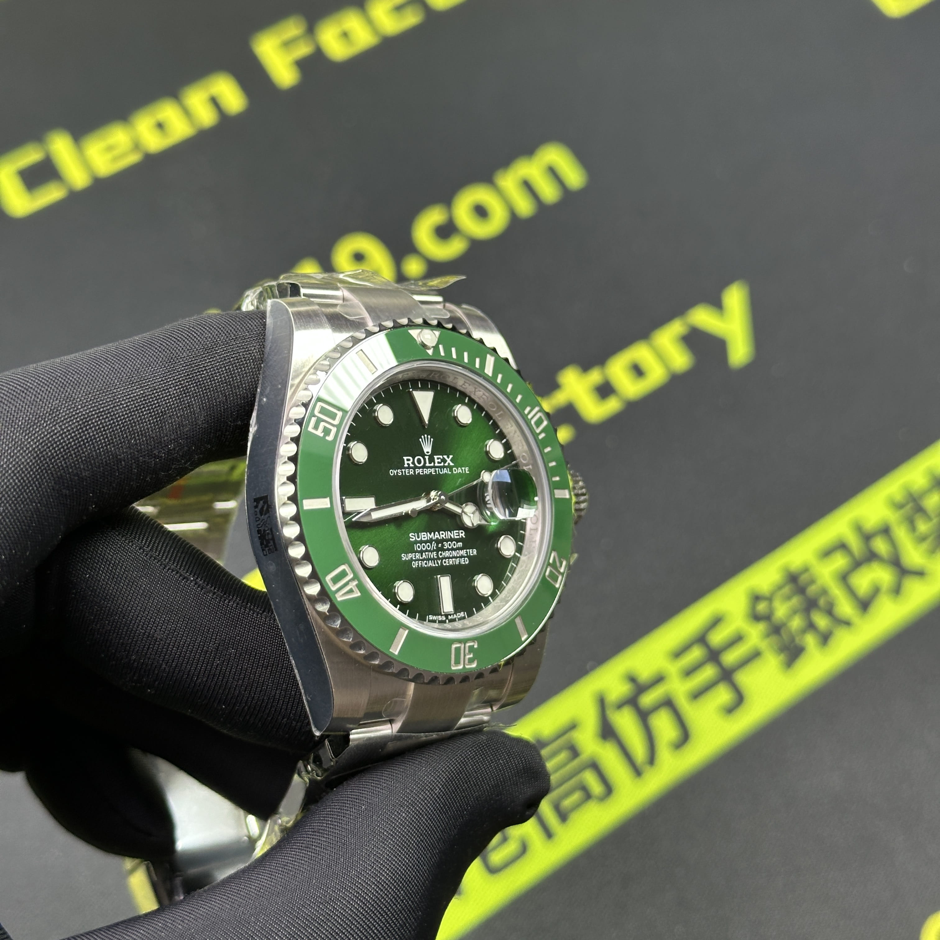 ARF廠官網推出的高仿勞力士綠水鬼116610lv-0002二代版本,整錶尺寸40mm,綠水鬼非常經典的是錶盤與圈口呈現的翠綠色,通過產品實拍可以了解到ARF廠綠水鬼二代版本的翠綠色非常鮮艷,並非暗綠色,圈口的反光色澤也是相對完善.可單向旋轉的圈口,聲音清脆,沒有卡頓的缺陷,夜明珠12點標準位置構造.錶盤內部依舊是三大指針結構,搭配放大日曆窗口,印刷白色立體字面,整體的視覺感以及做工完整度非常高.